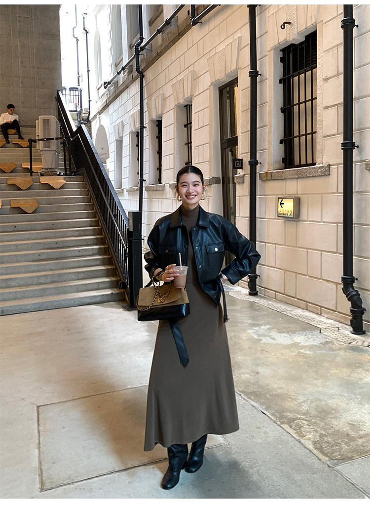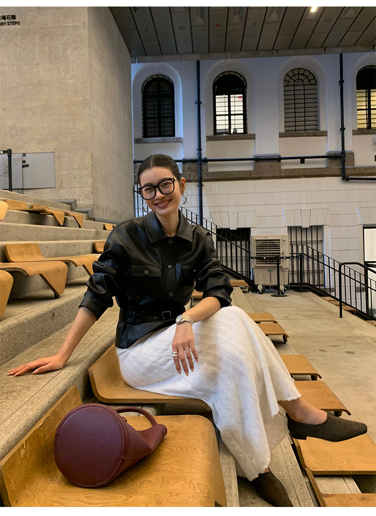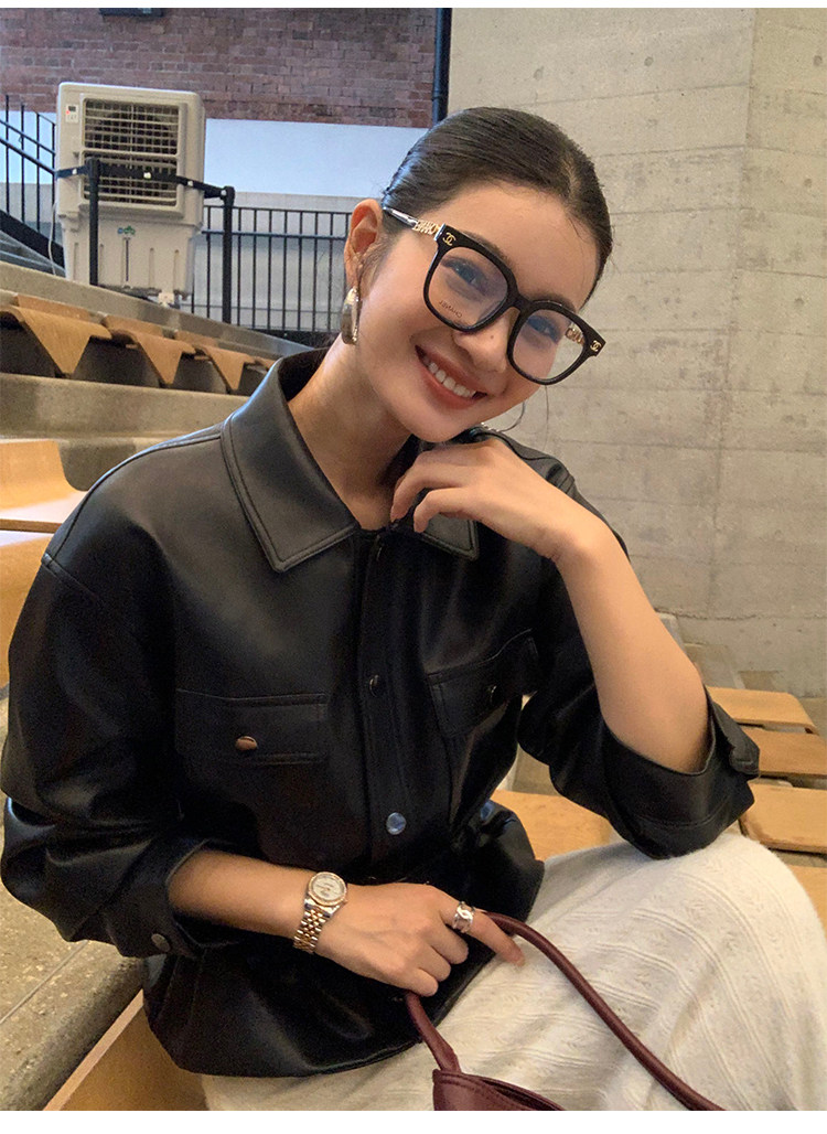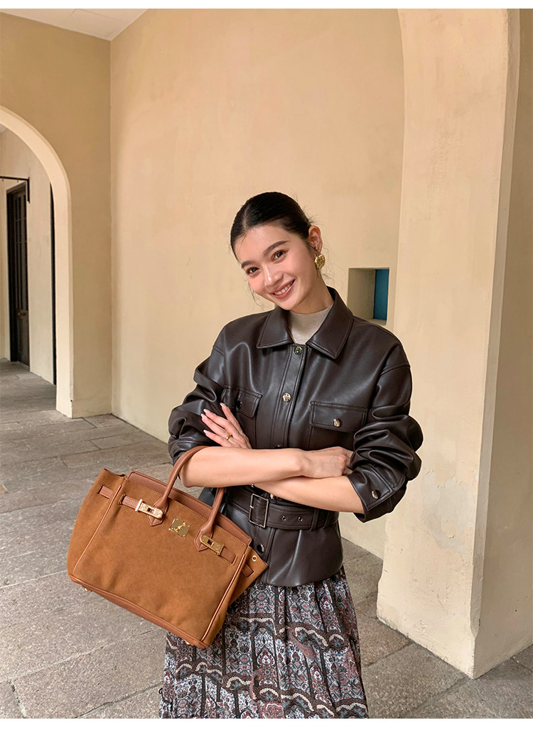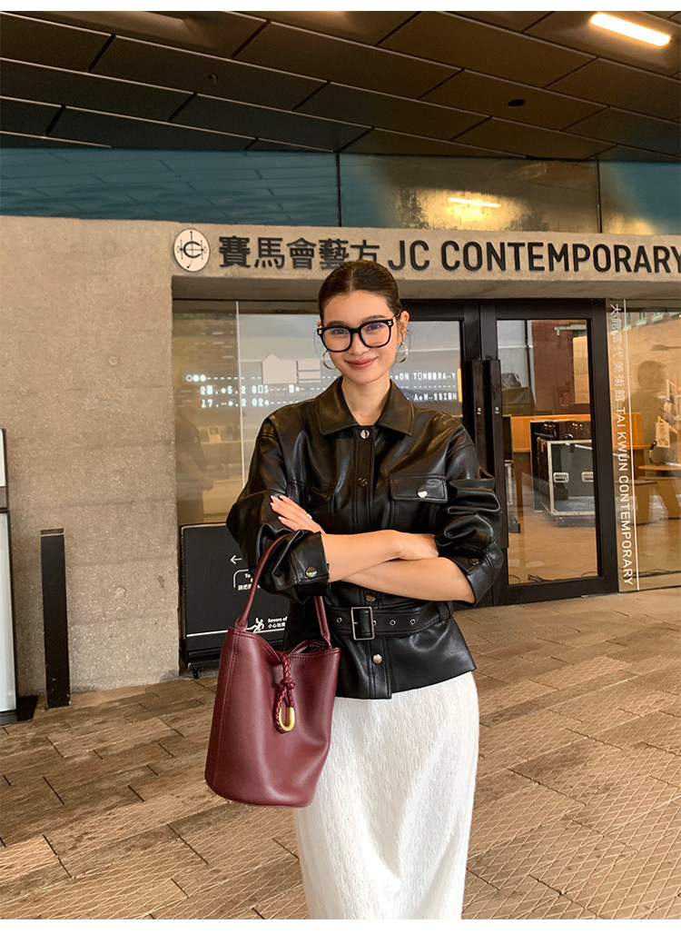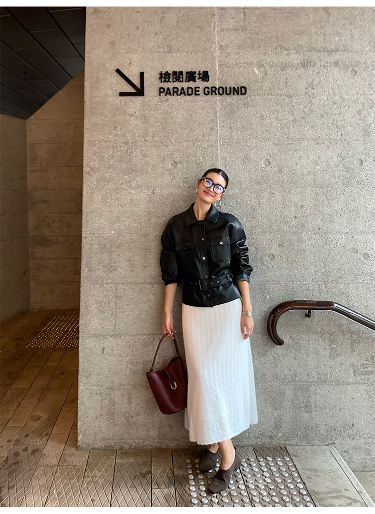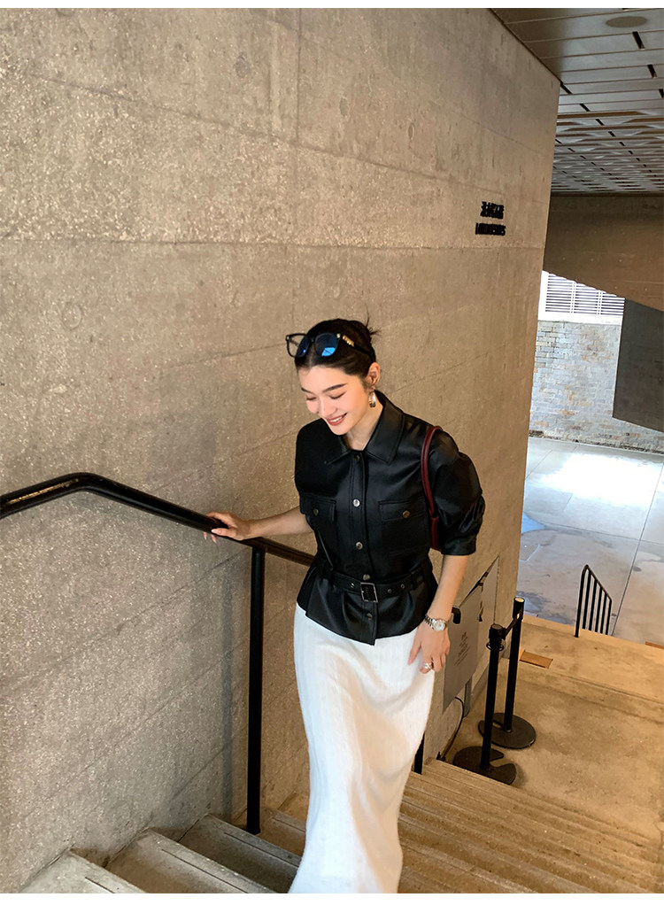 Pusumede Cool and Stylish Black Leather Jacket for Women with Detachable Belt Pu Leather Short Jacket