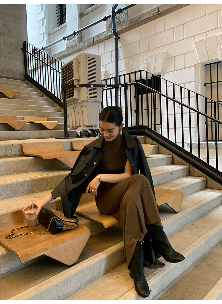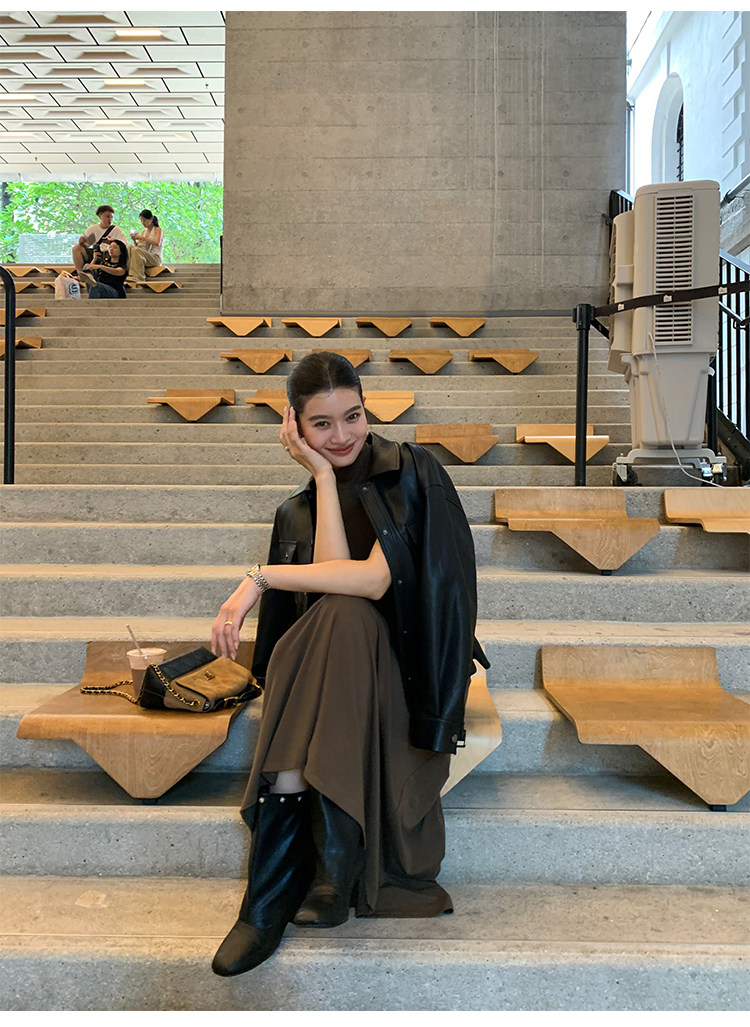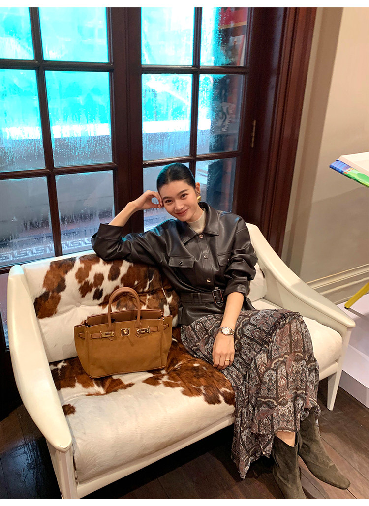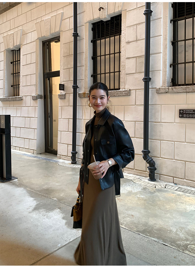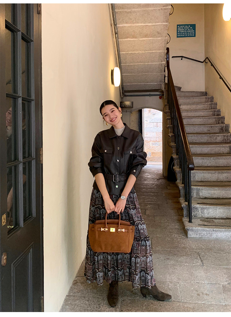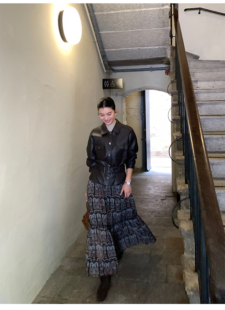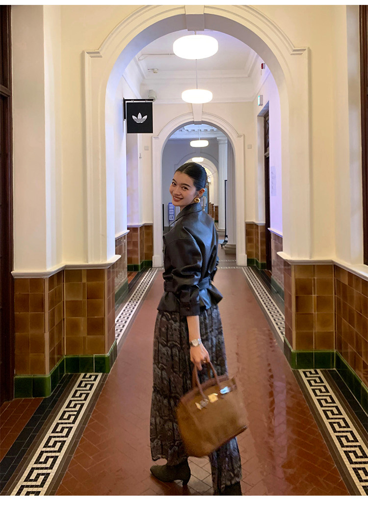 Pusumede Cool and Stylish Black Leather Jacket for Women with Detachable Belt Pu Leather Short Jacket