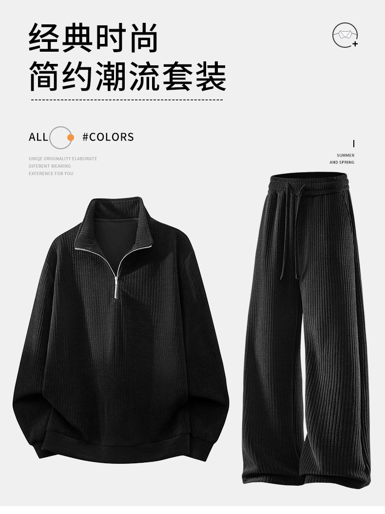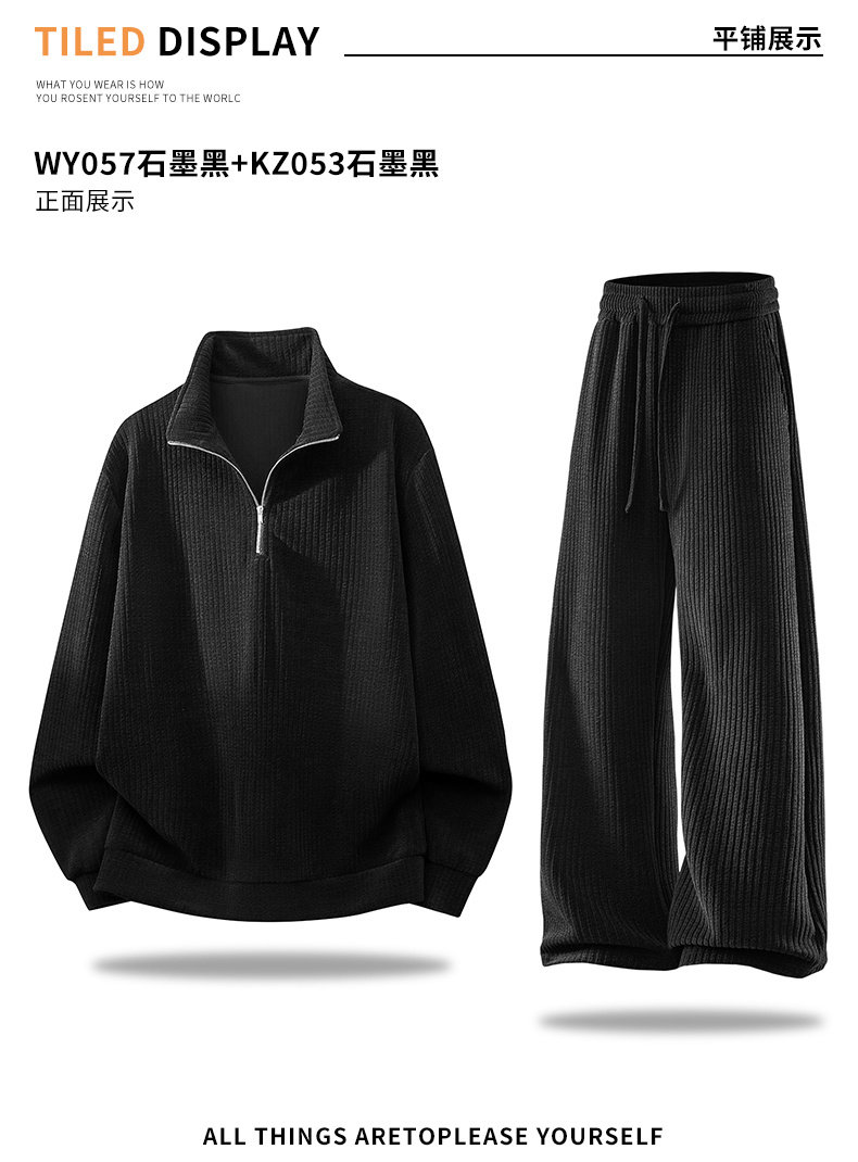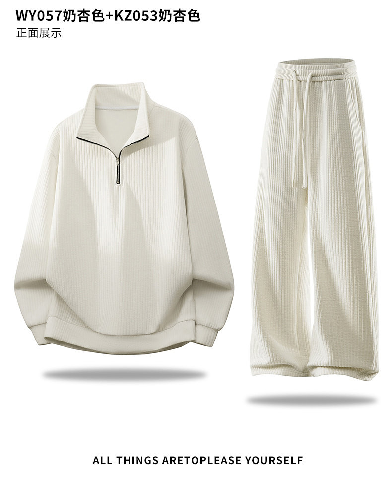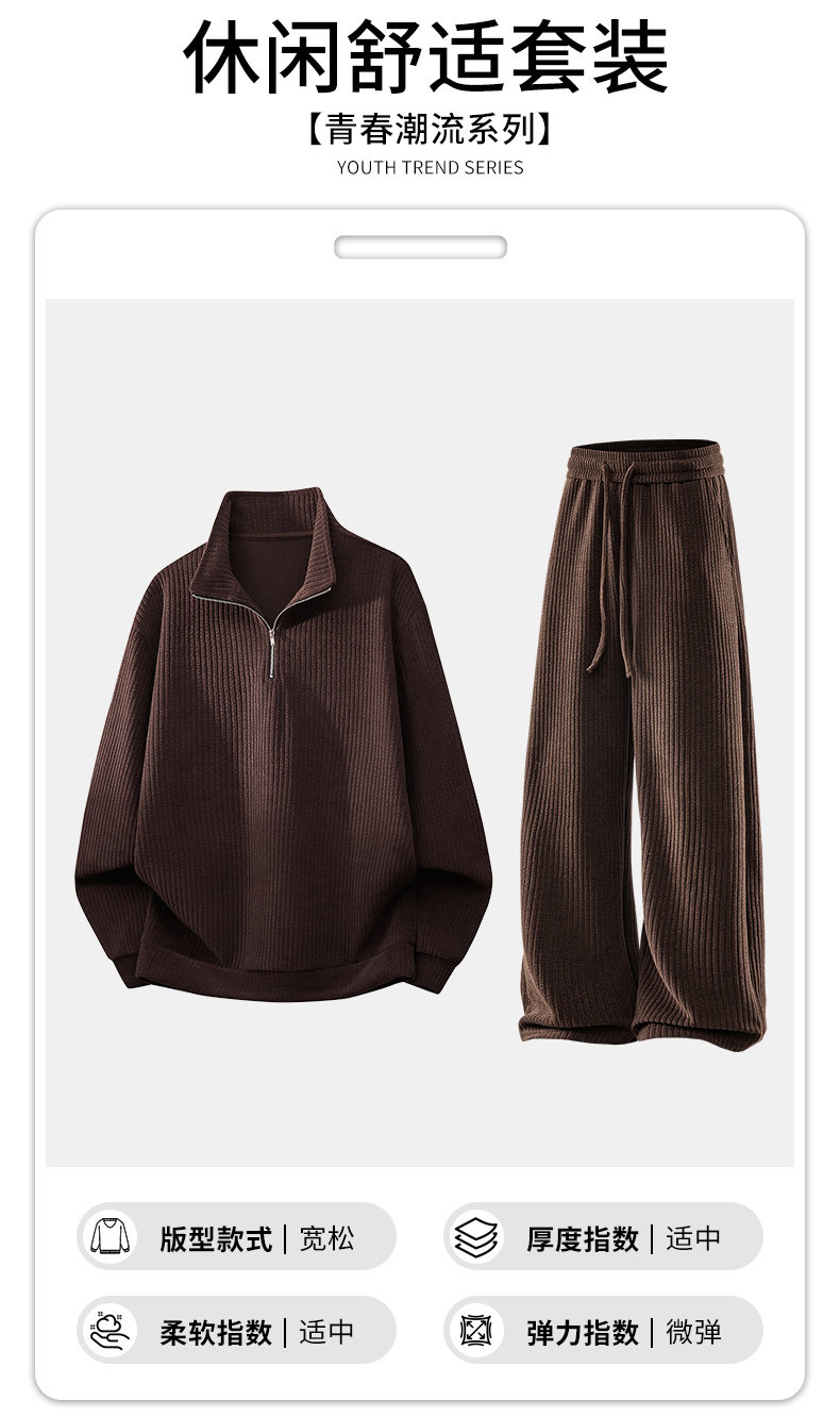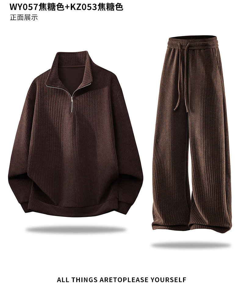 Wassup Shark Corduroy Retro Winter Suit for Men, American-Style Textured Casual Sports Two-Piece Set, Loose Fit