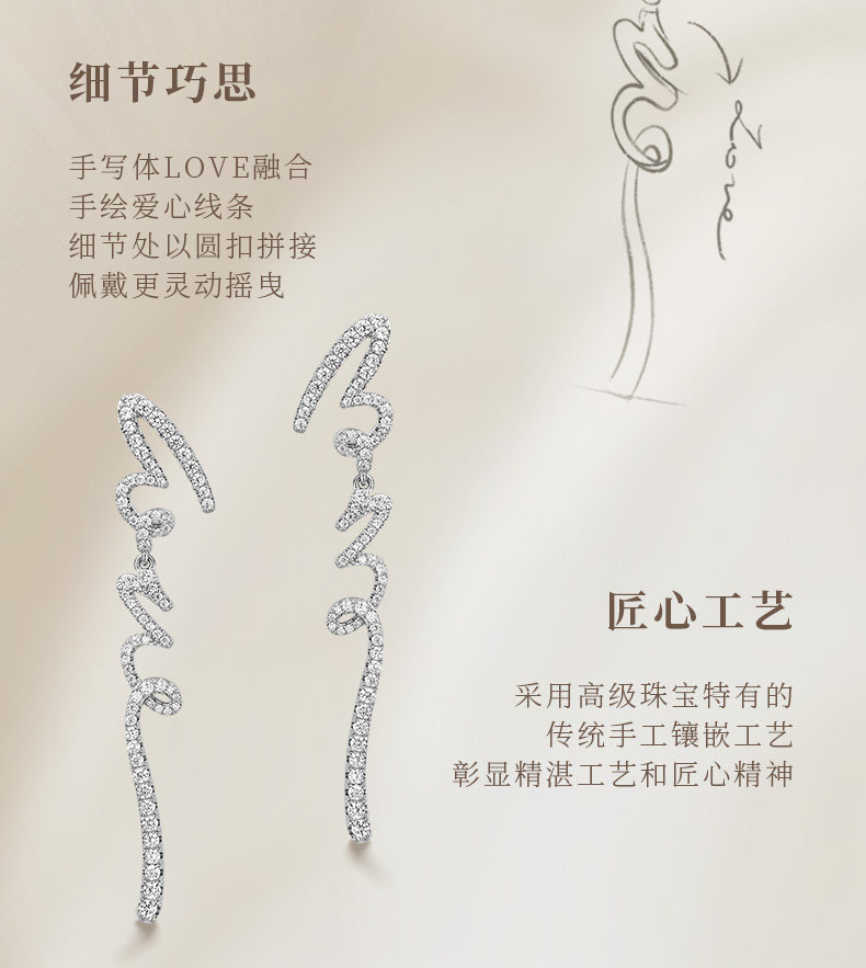 [New Product] Hefang Jewelry Love Long Earrings Studs Light Luxury Earrings Accessories New Year Gift
