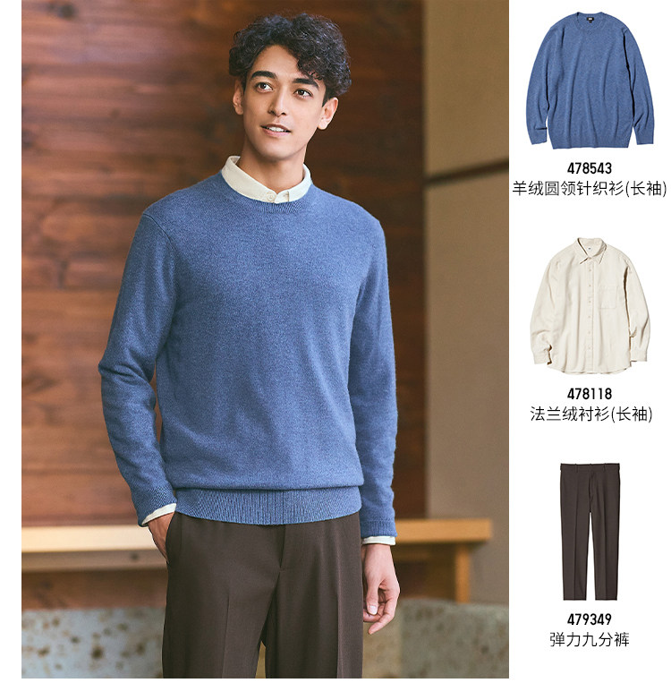 Uniqlo Men's and Women's Cashmere Round Neck Knitwear/Long-Sleeved Sweater 25 Autumn and Winter New Style 478543