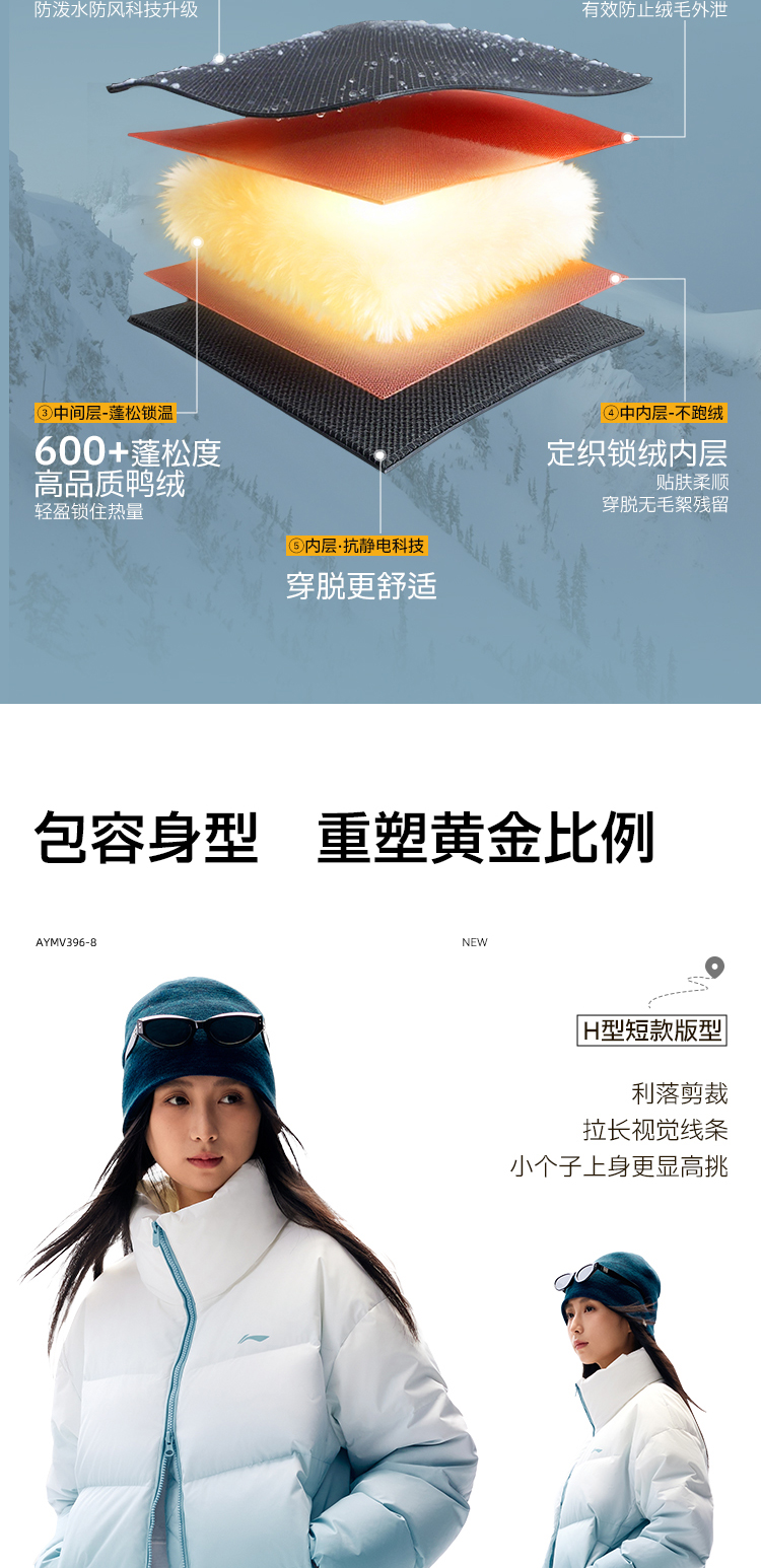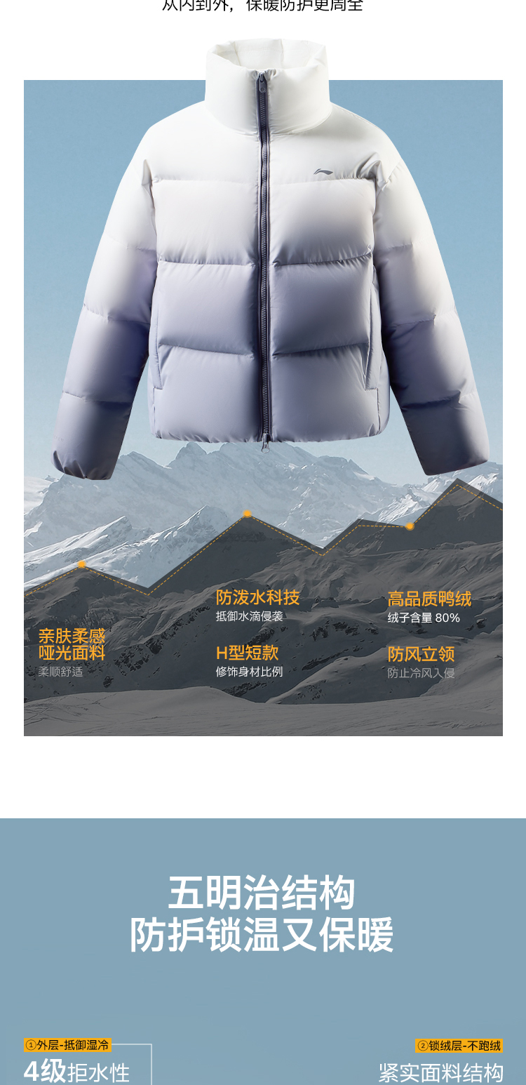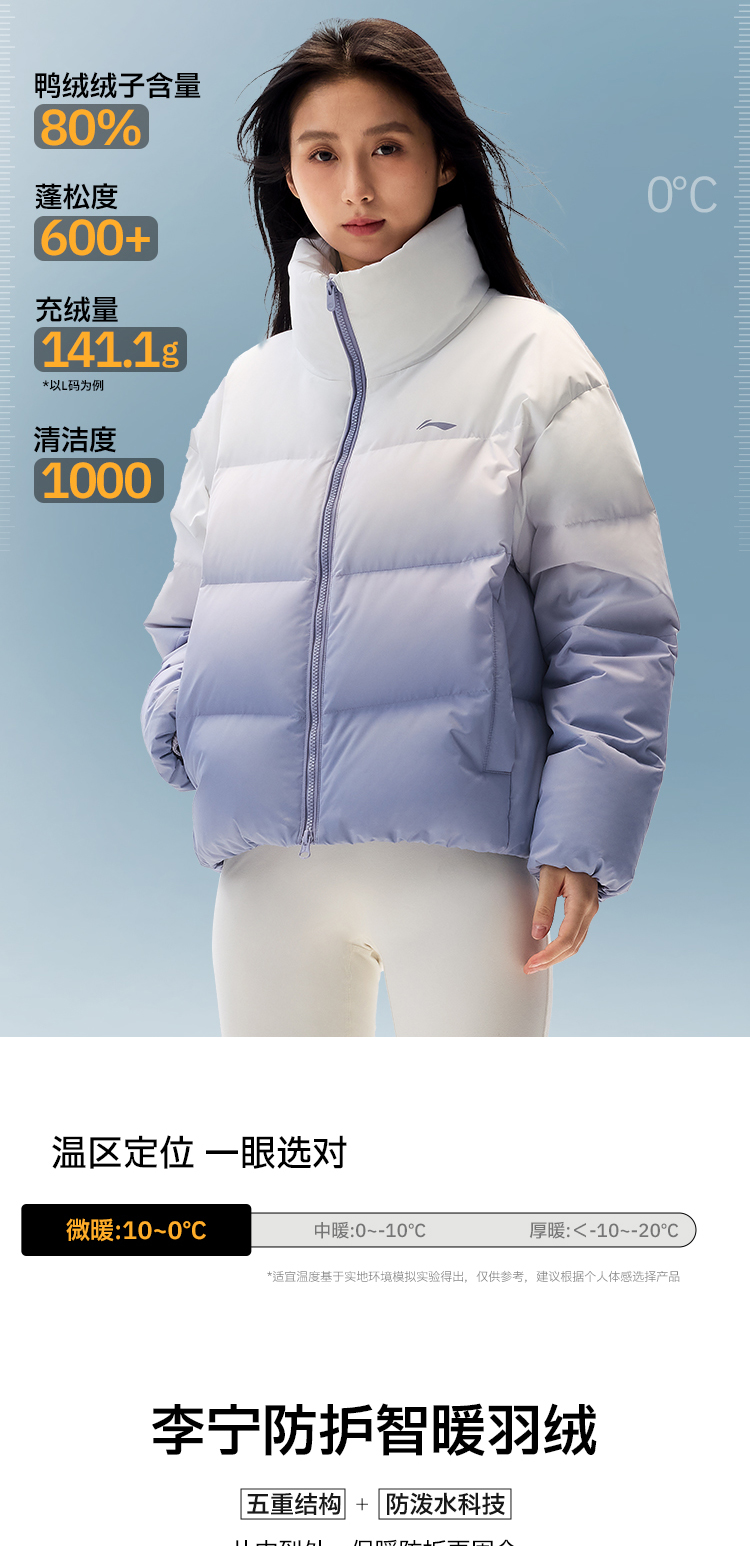 Li-Ning Hot Pot down Jacket | Winter 2025 New Duck down Short Outdoor Warm Top Women's Stand Collar Coat