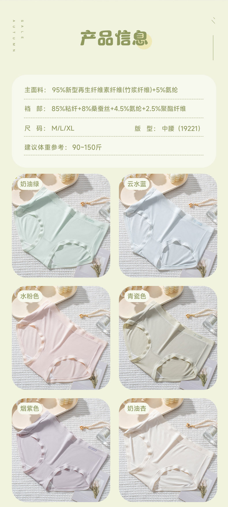 3 Pairs of Fenten Modal Underwear for Women, 2025 New Model, 7A Grade Mulberry Silk, Antibacterial Crotch, Seamless, Breathable Triangle Briefs