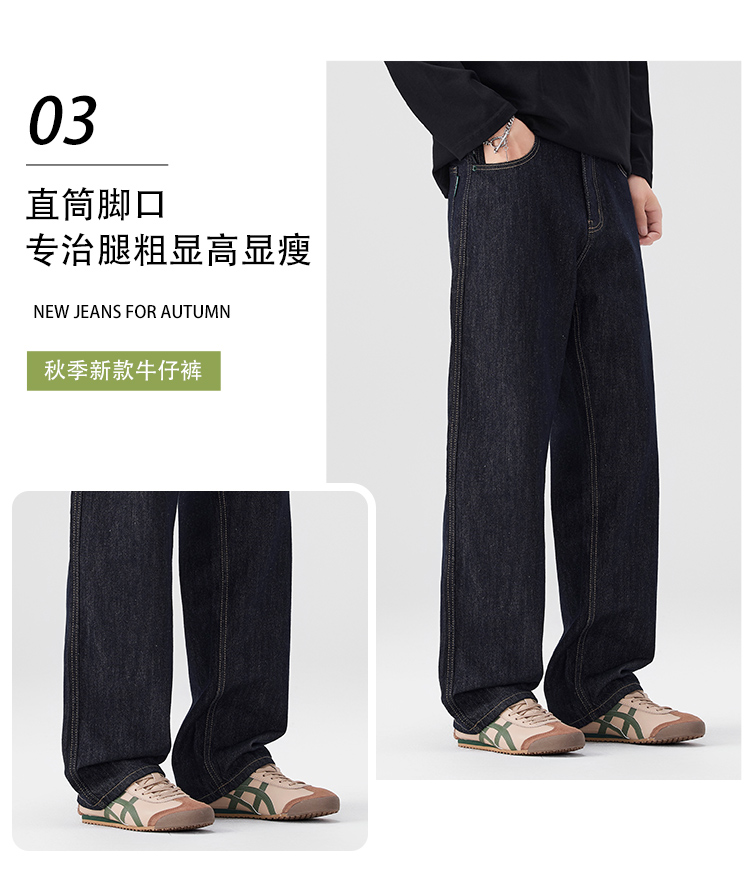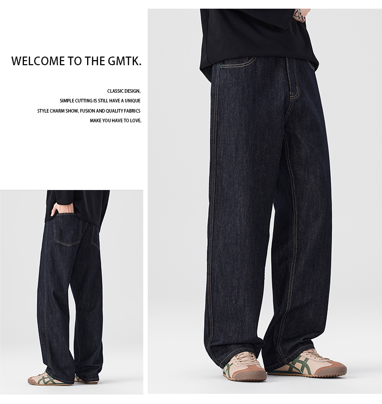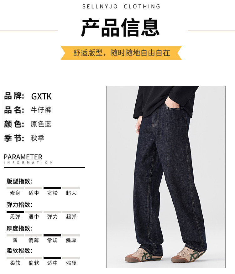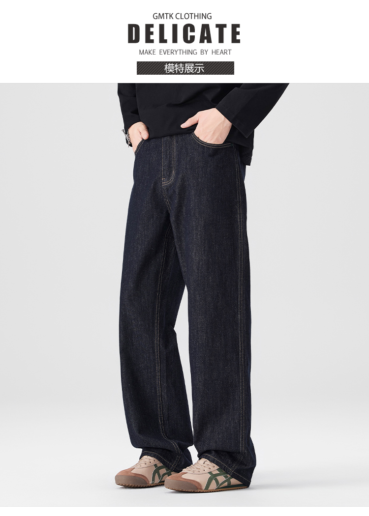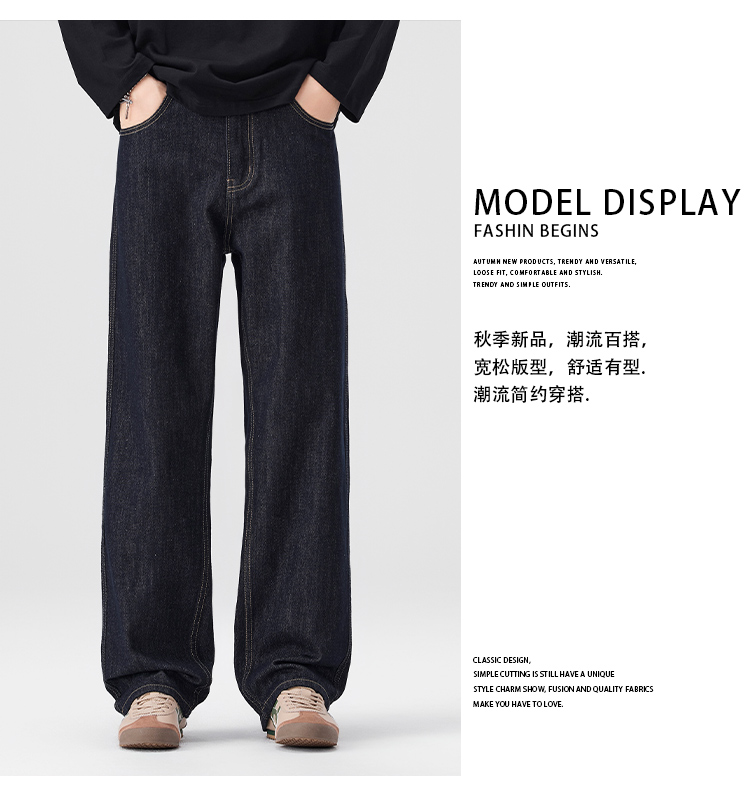 Original Color Denim Fleece-Lined Thickened Jeans for Men, Straight-Leg Loose Fit, 2025 New Style, Washed Cleanfit Wide-Leg Pants