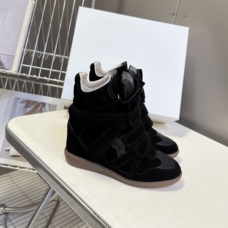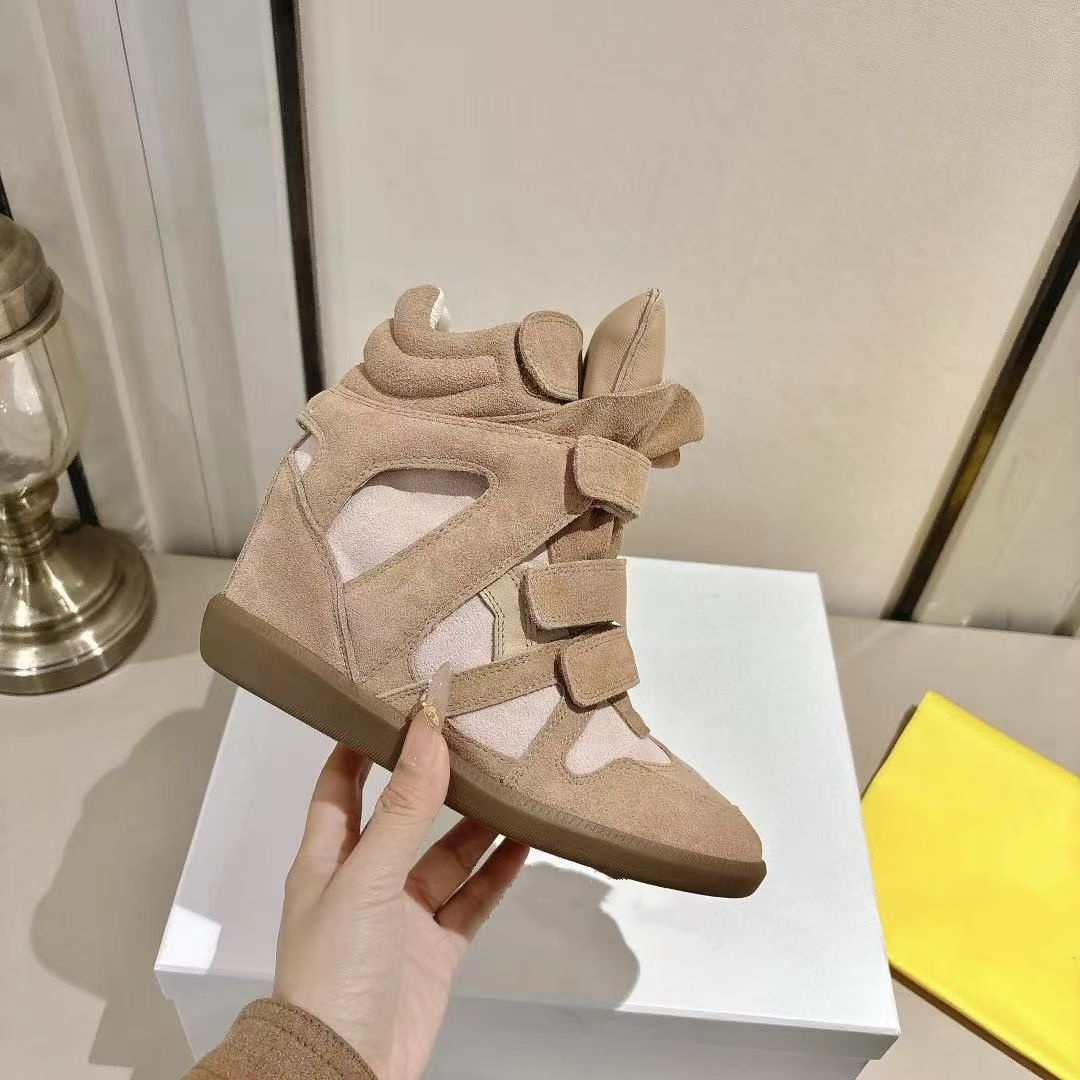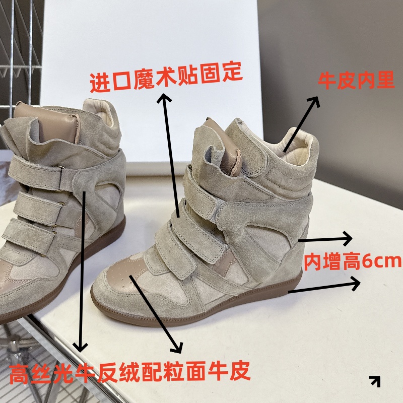 Velcro Sneakers, Suede Color-Blocking Retro High-Top Shoes for Women, 2025 Autumn and Winter New Style, Height-Increasing Casual Shoes, Trendy Style