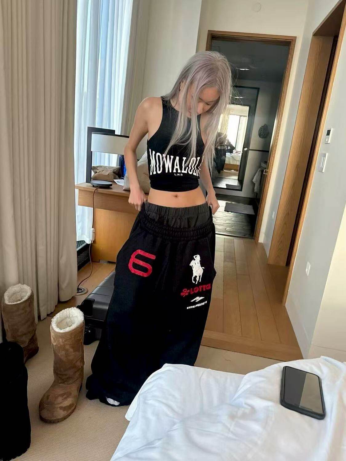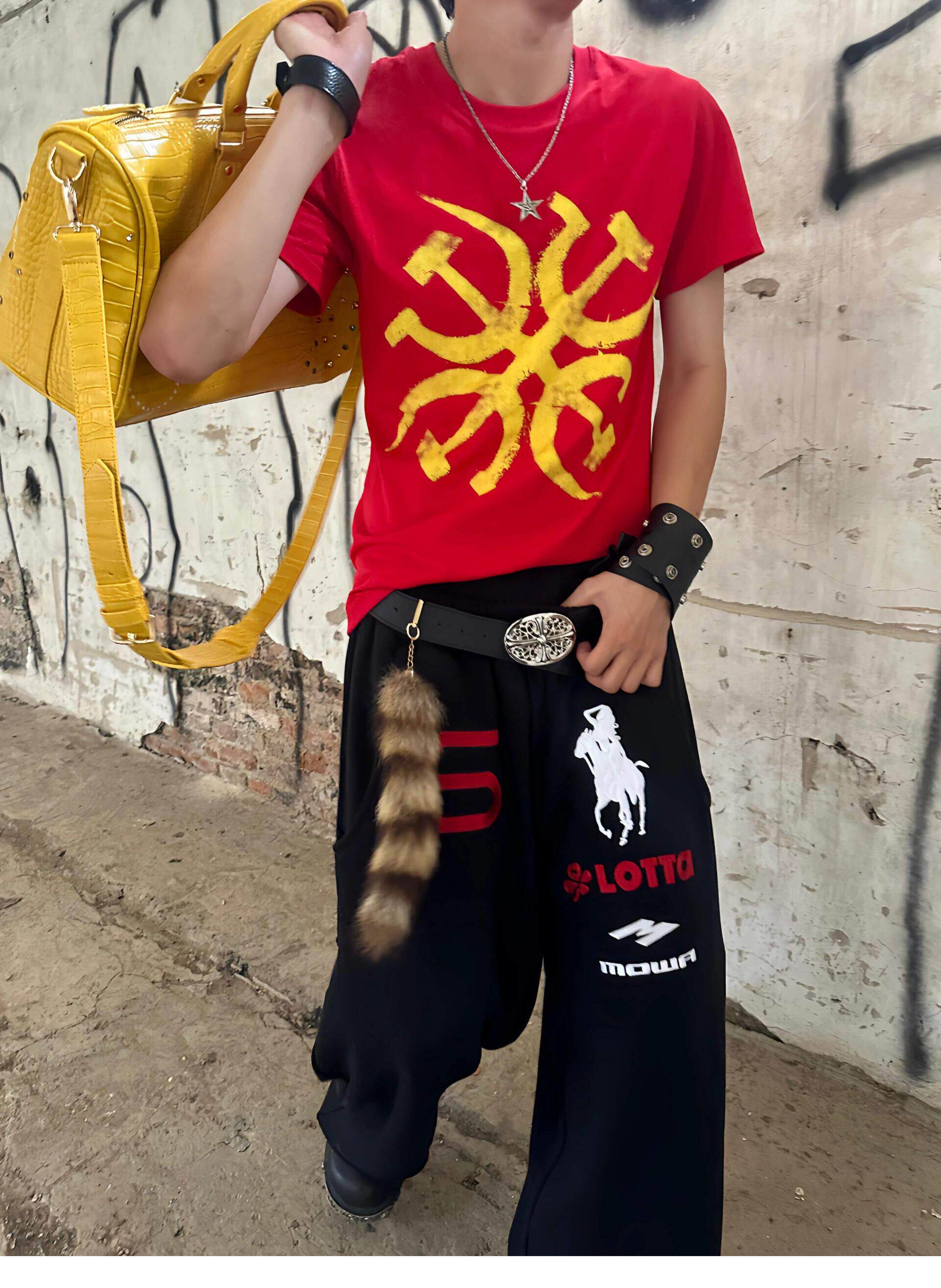 Mowalola Learl Heavy-Duty Angel War Horse Embroidered Jogger Pants Baggy Casual Wide-Leg Sports Sweatpants