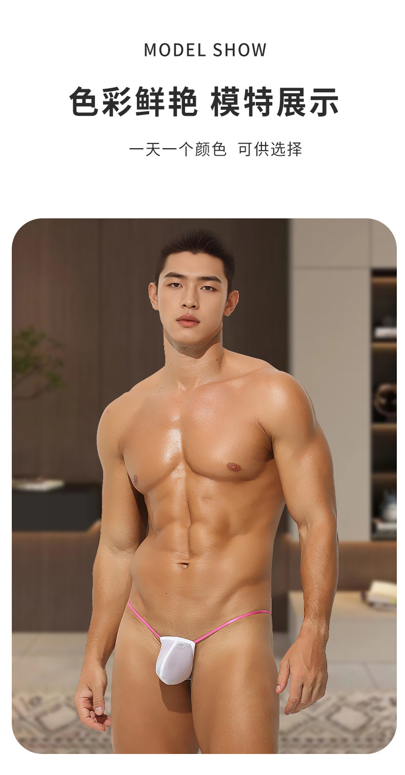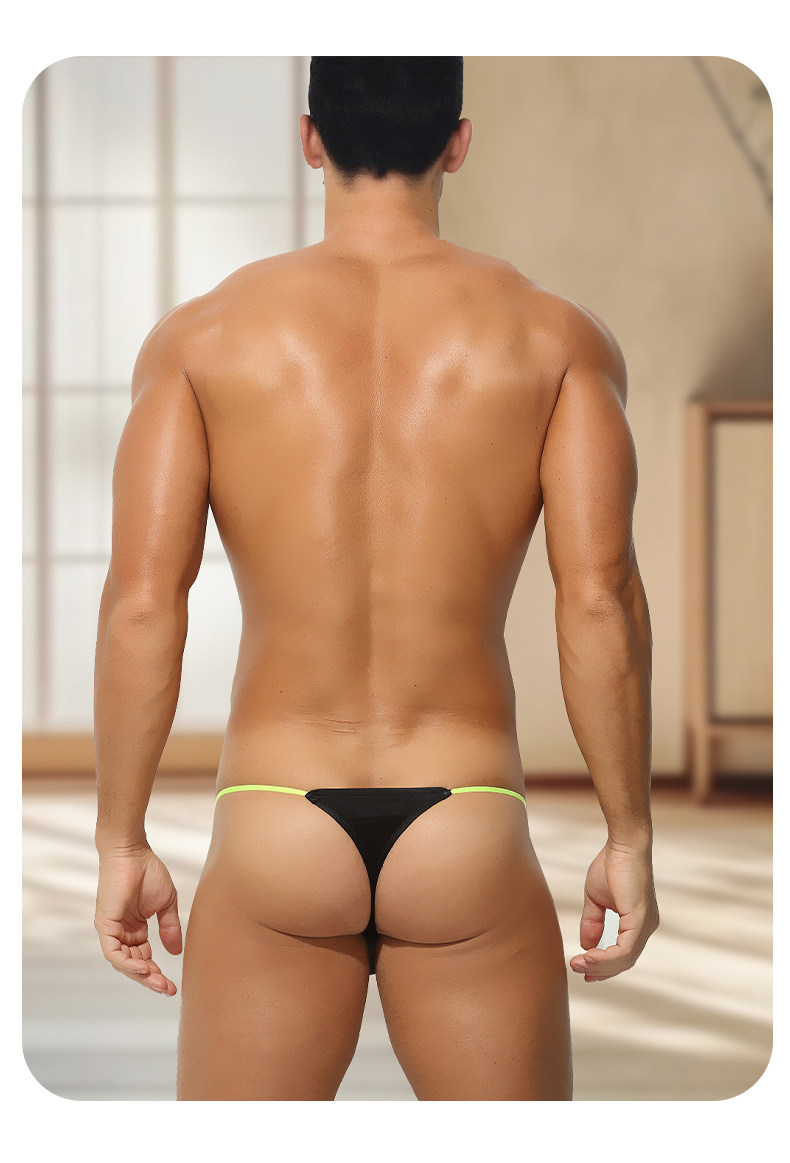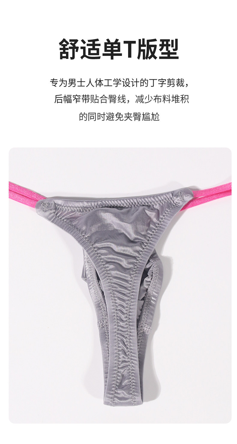 Men's Thong with Color Blocking, Sexy, Ultra-Thin Ice Silk, Breathable, Tight-Fitting, Low-Waist, Thin Straps, Comfortable U-Convex Pouch T-Pants