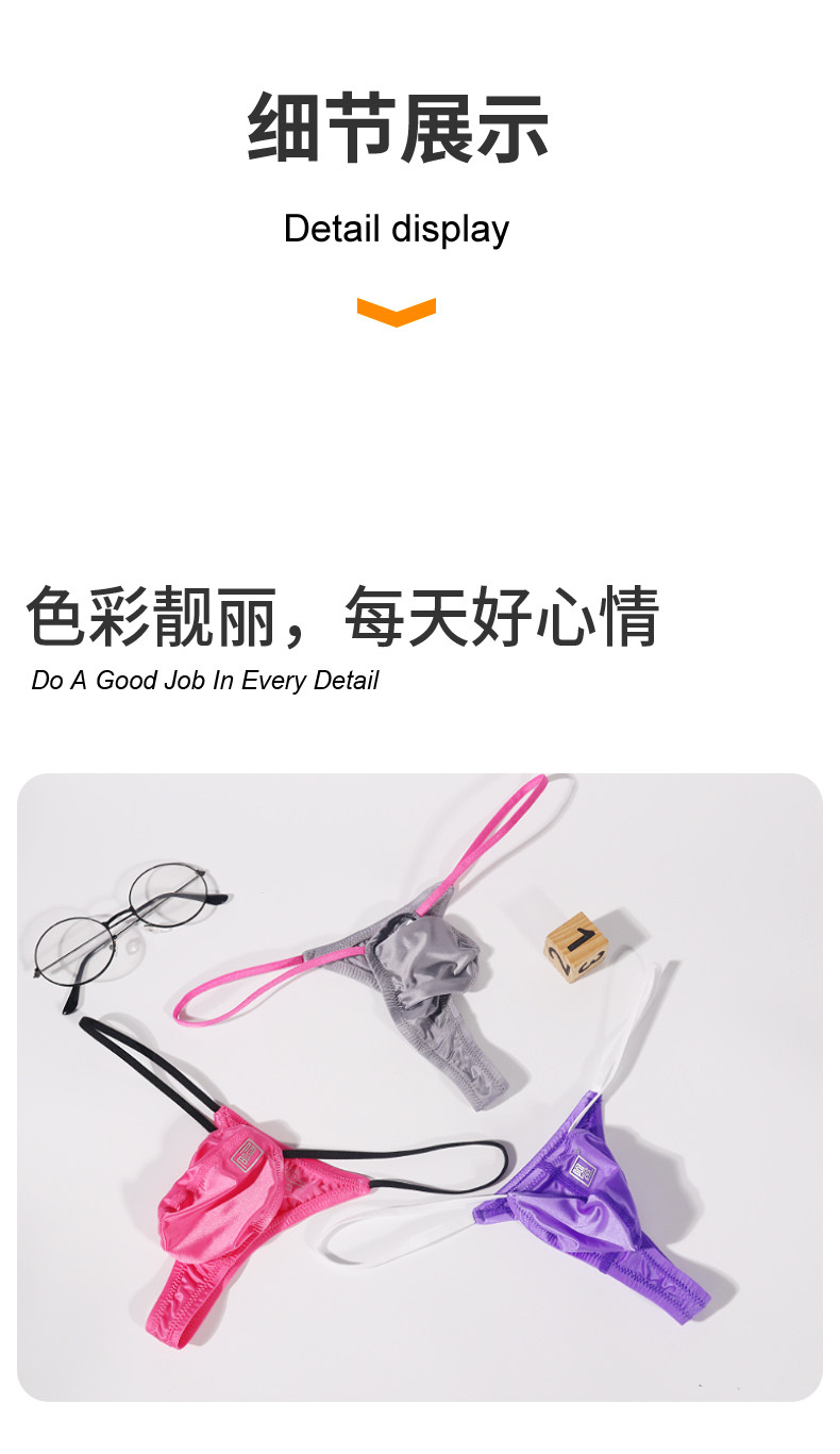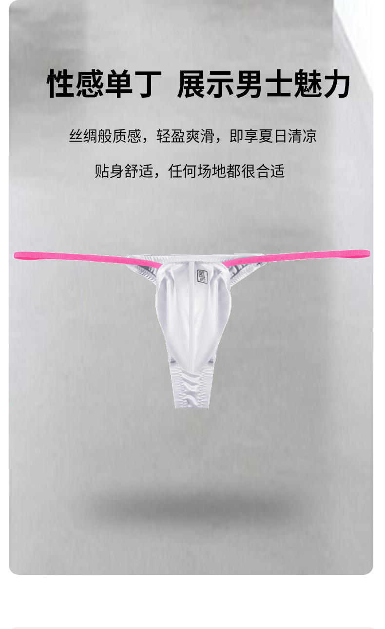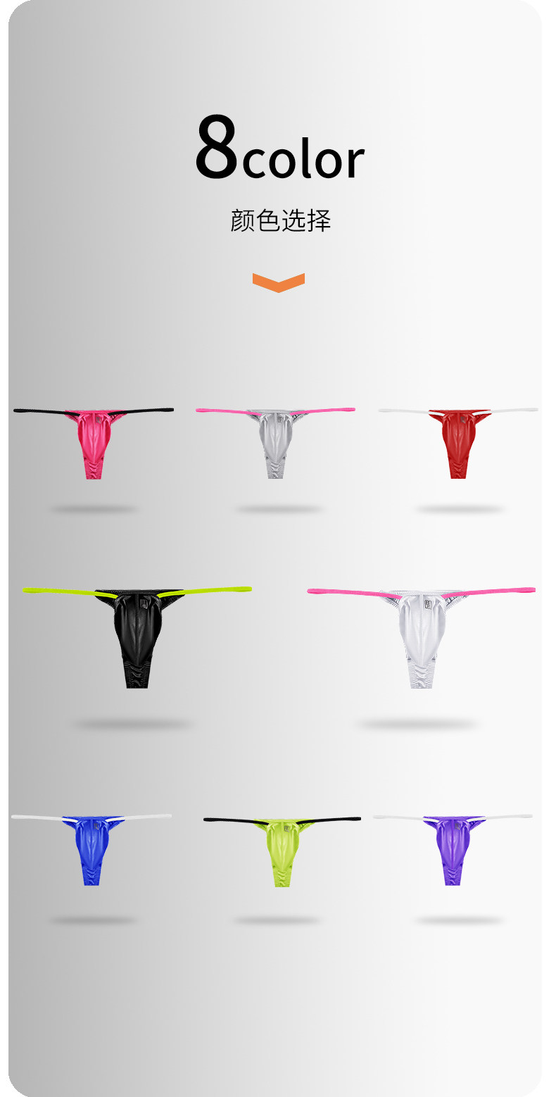 Men's Thong with Color Blocking, Sexy, Ultra-Thin Ice Silk, Breathable, Tight-Fitting, Low-Waist, Thin Straps, Comfortable U-Convex Pouch T-Pants