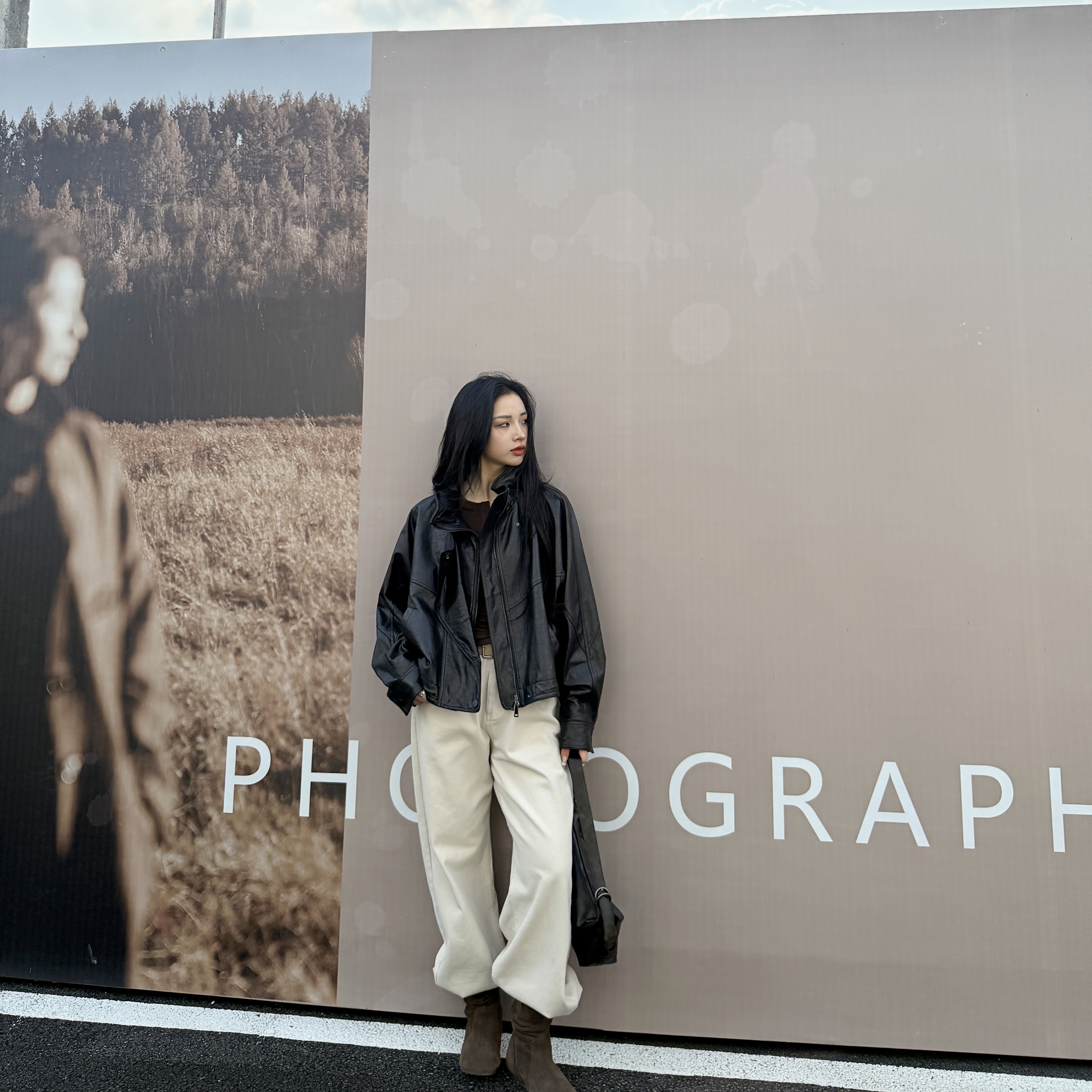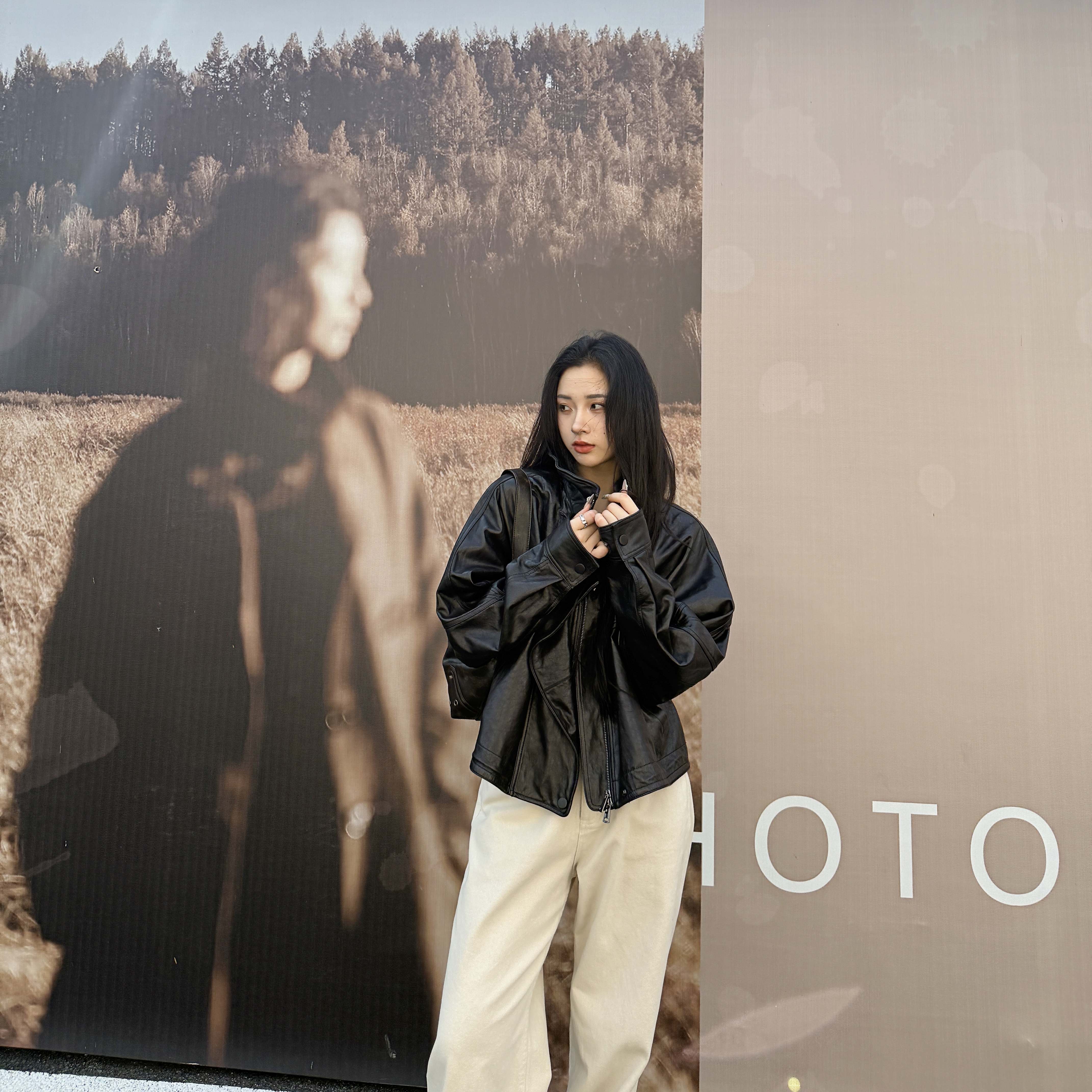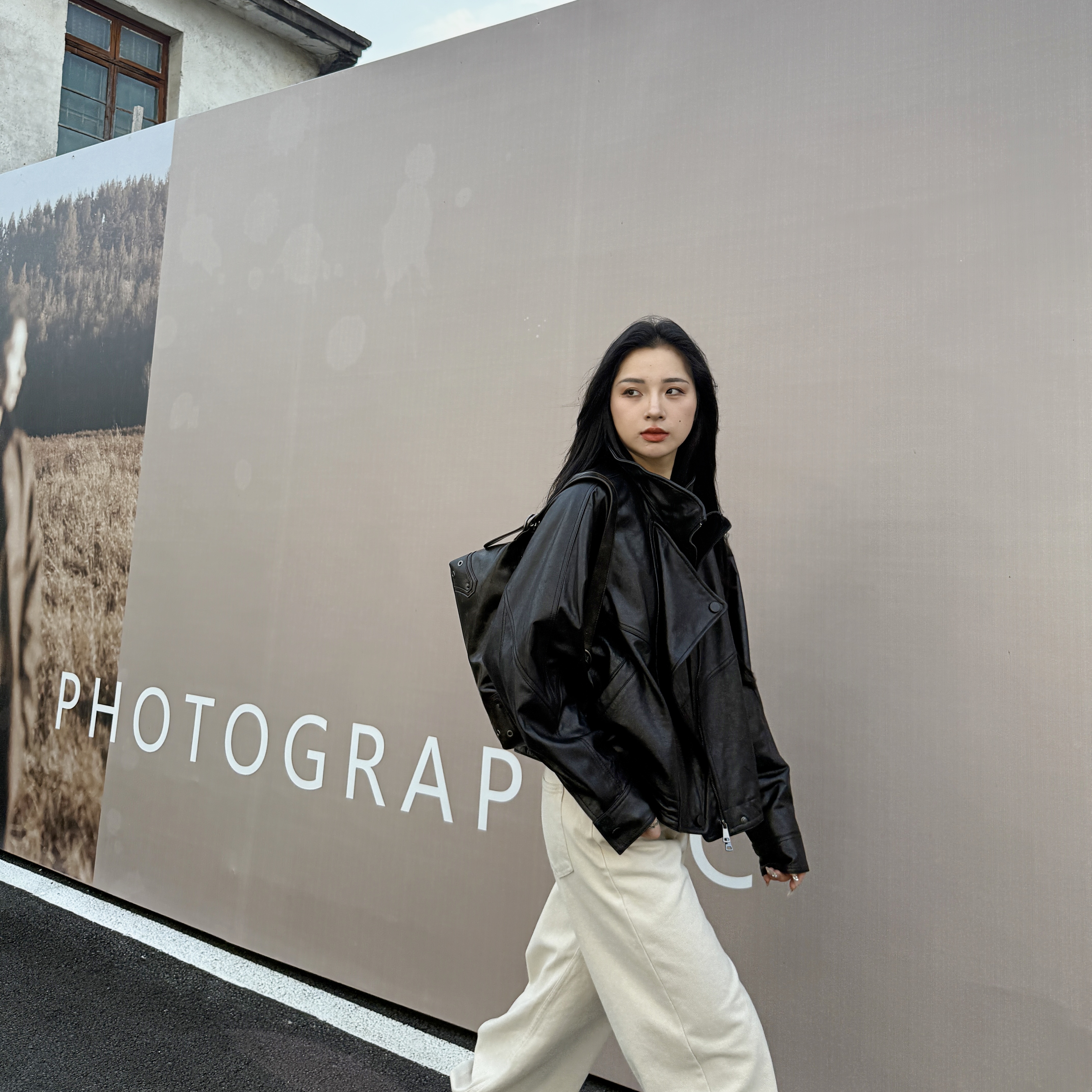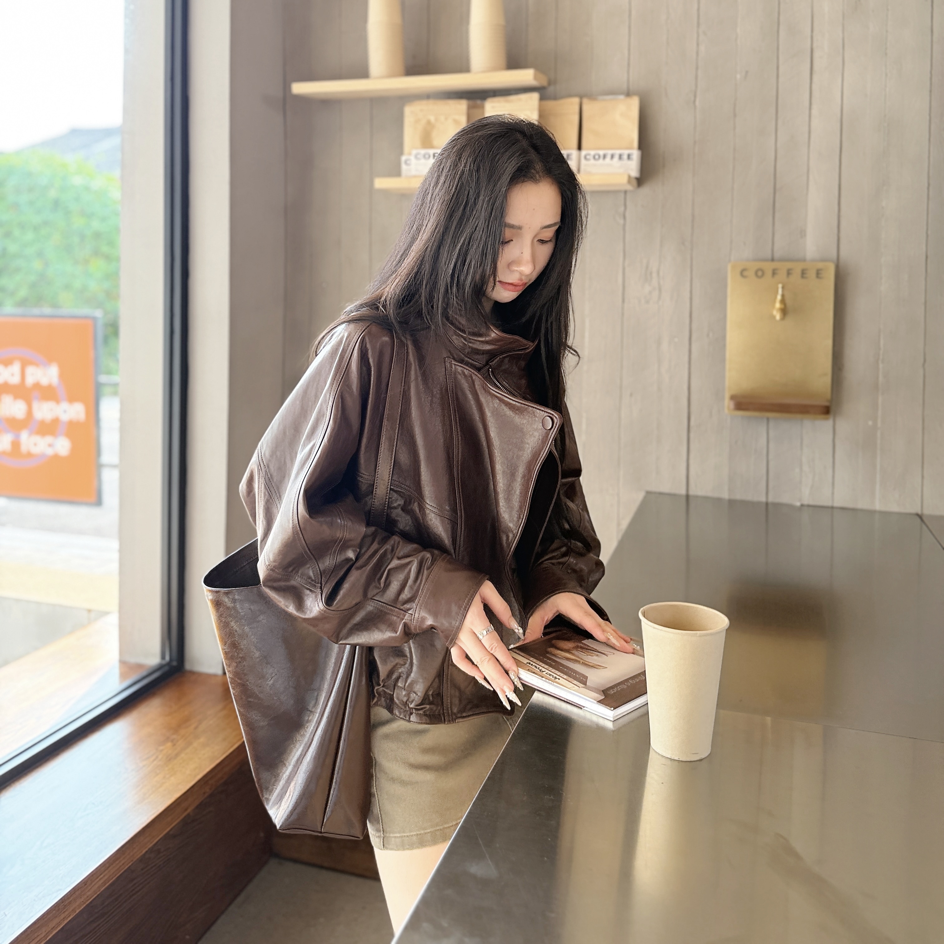 Sheepskin | Spanish Lambskin | Workwear Style Loose-Fitting Stand-Up Collar Handsome Leather Jacket Short Coat-My6185