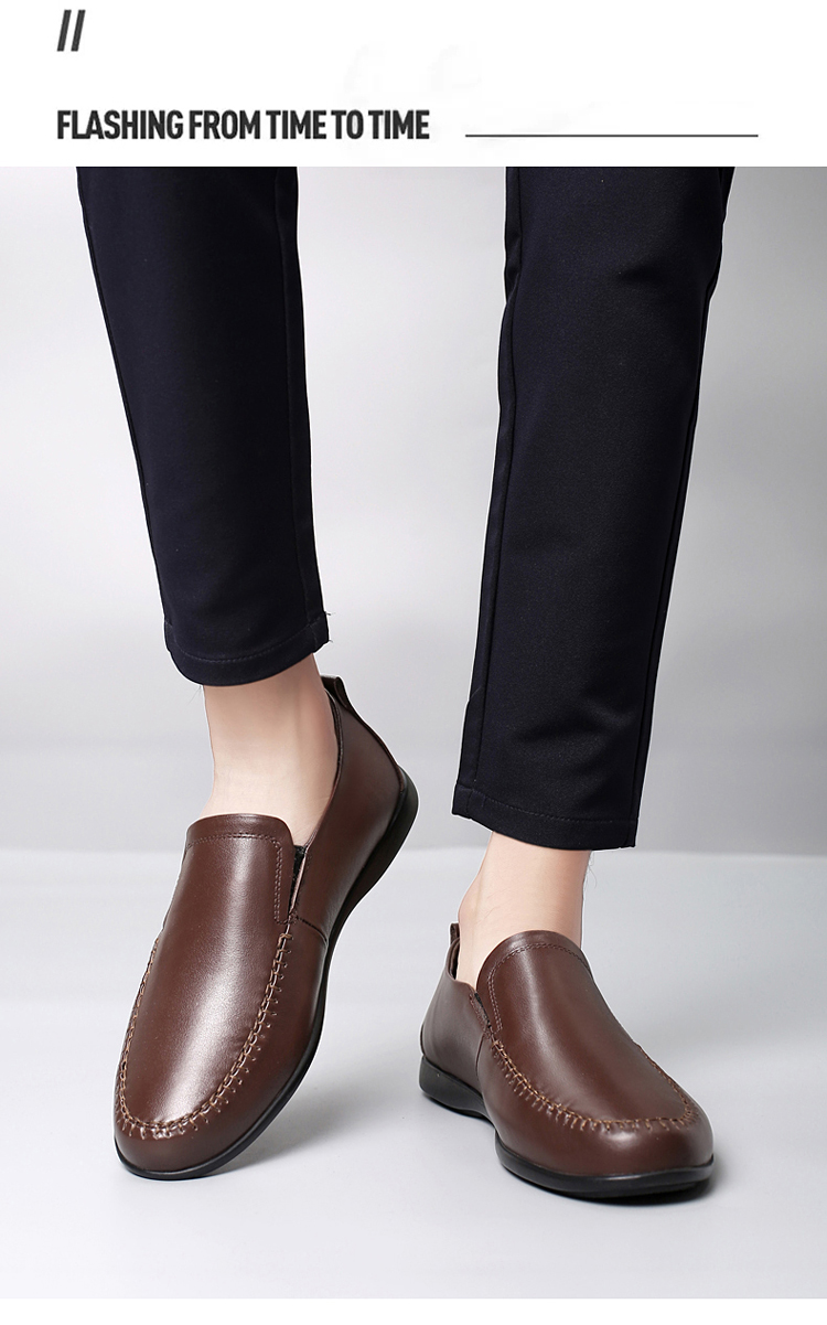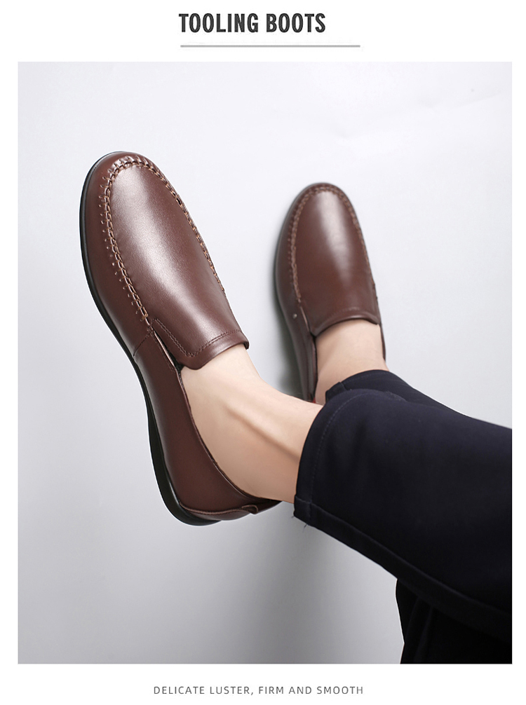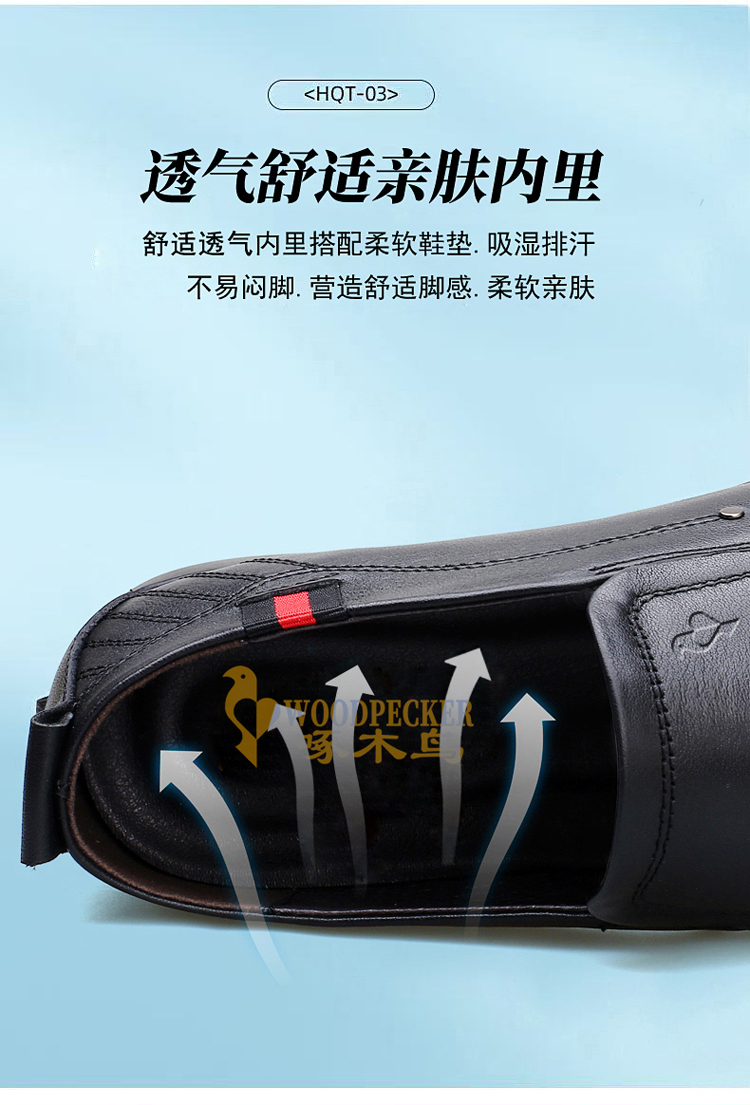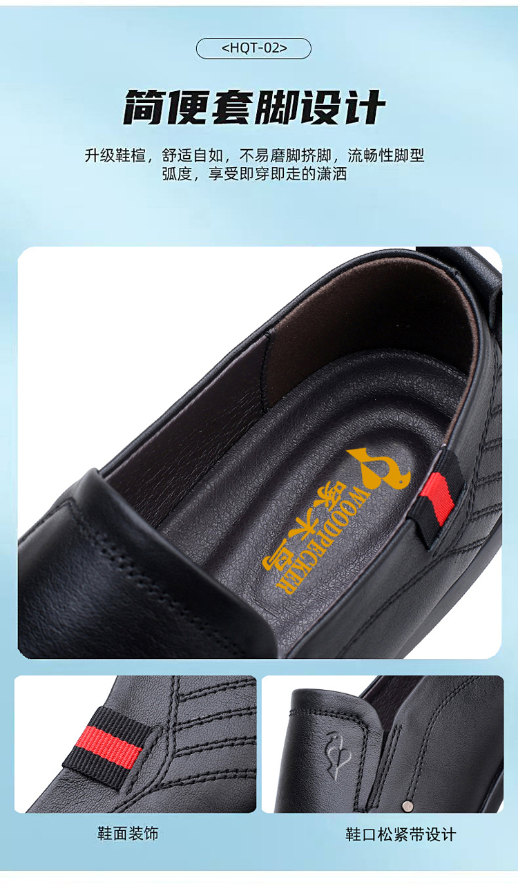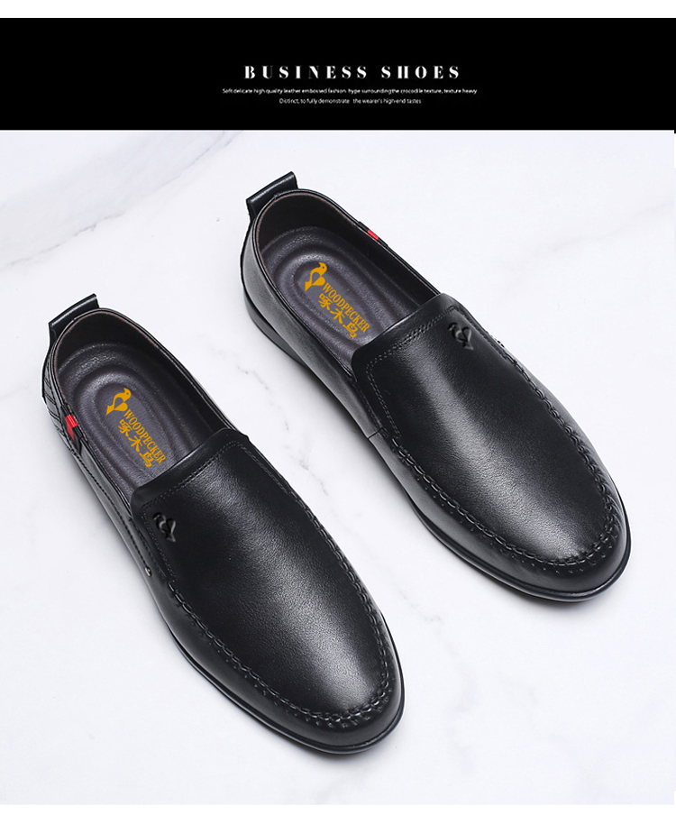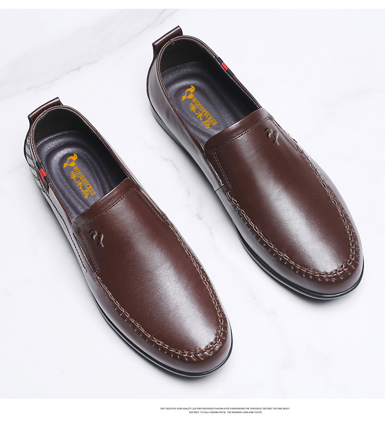 Woodpecker Leather Shoes for Men, New Autumn Style, Genuine Leather, Breathable, Soft Leather, Soft Sole, Slip-On, Lazy Style, Hand-Stitched Dad Shoes