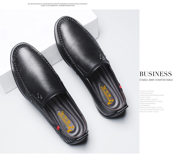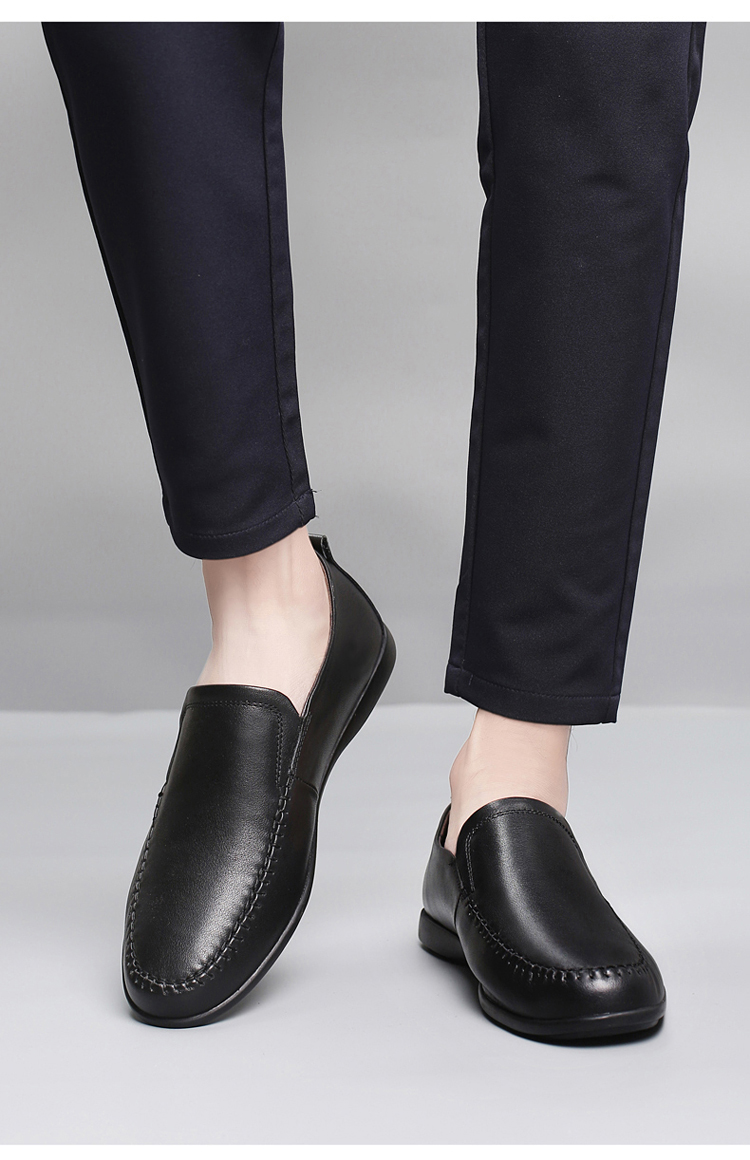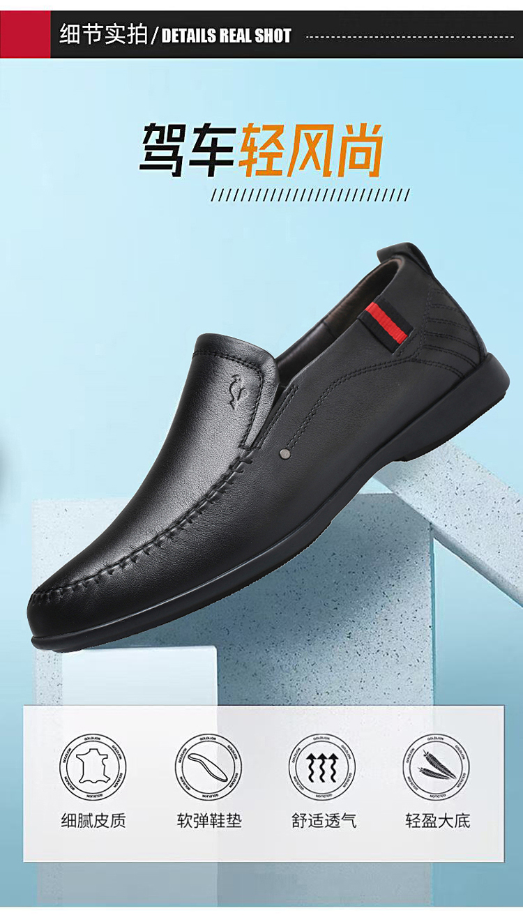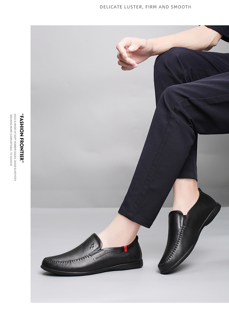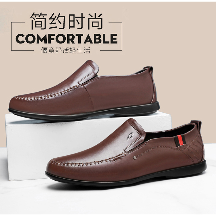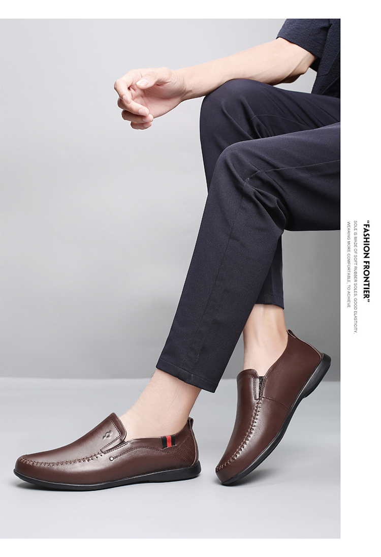 Woodpecker Leather Shoes for Men, New Autumn Style, Genuine Leather, Breathable, Soft Leather, Soft Sole, Slip-On, Lazy Style, Hand-Stitched Dad Shoes