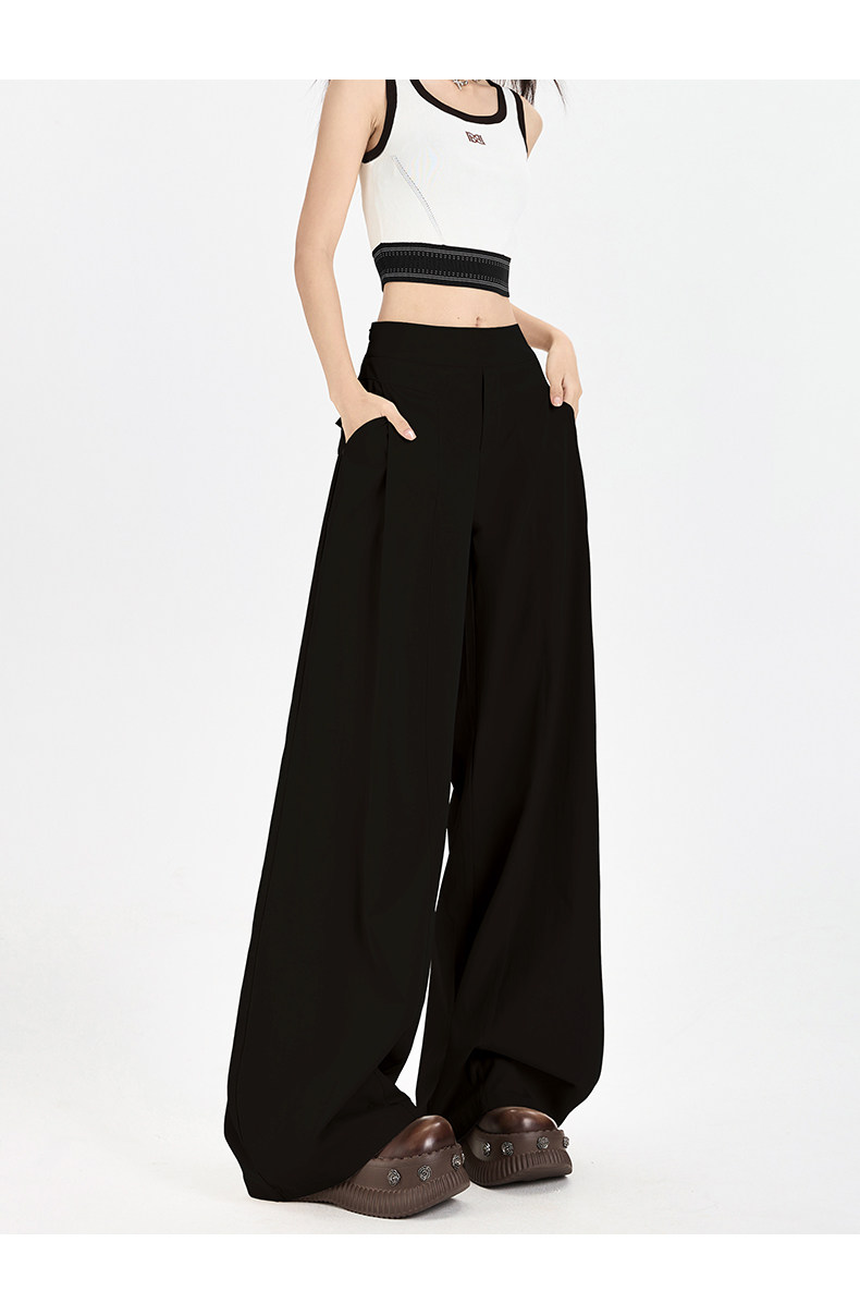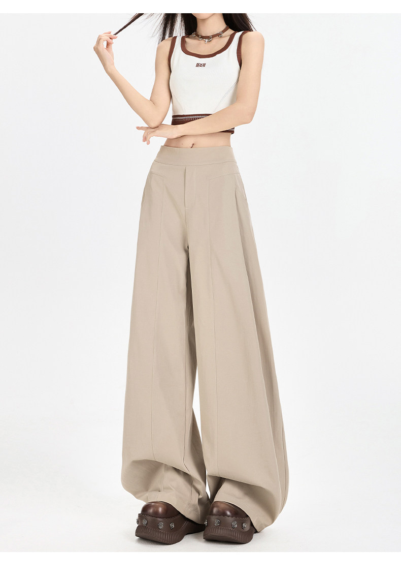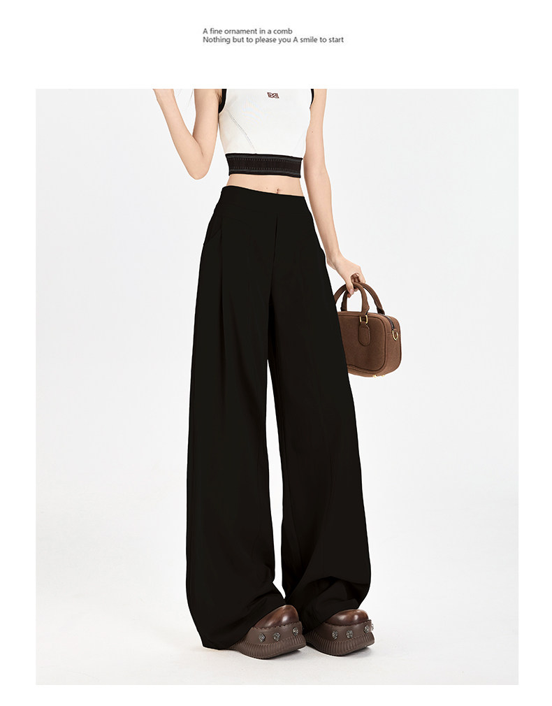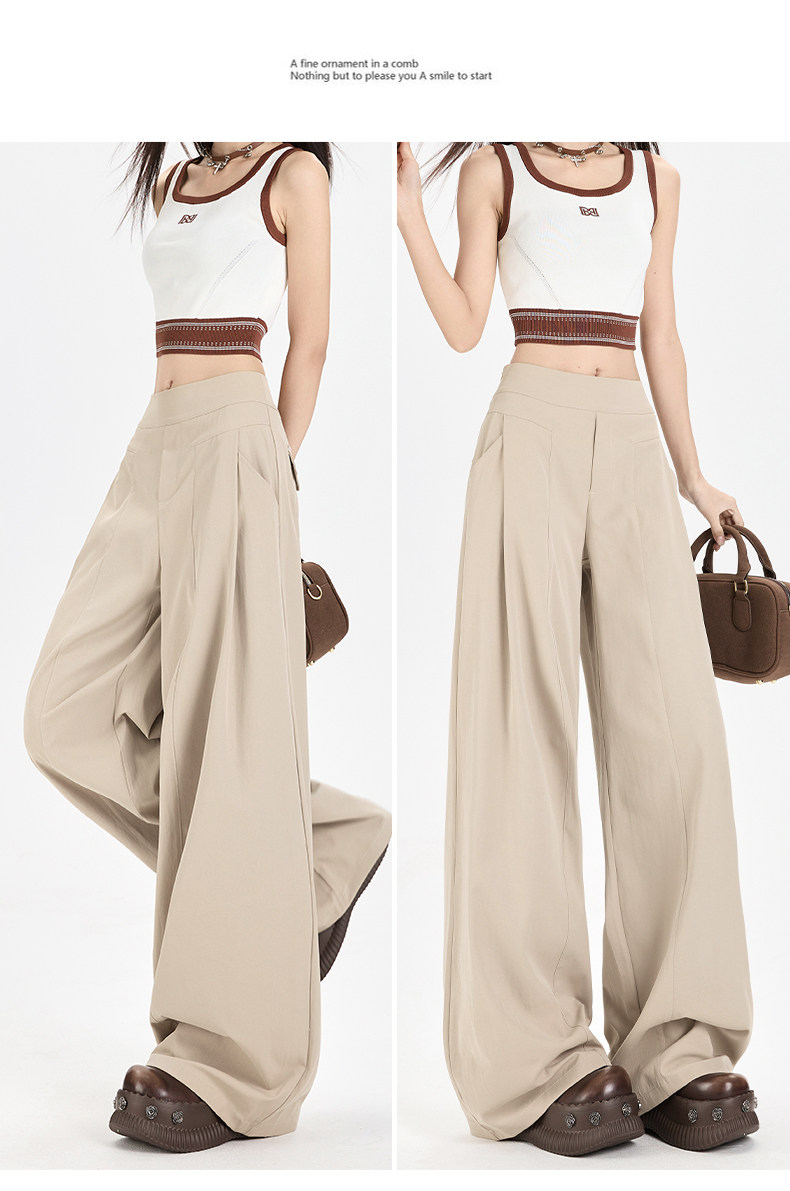 150cm Petite Wide-Leg Old Money Style Suit Pants for Women, Autumn High-Waisted Straight-Leg Floor-Length Pants with Drape, Vintage Casual Pants