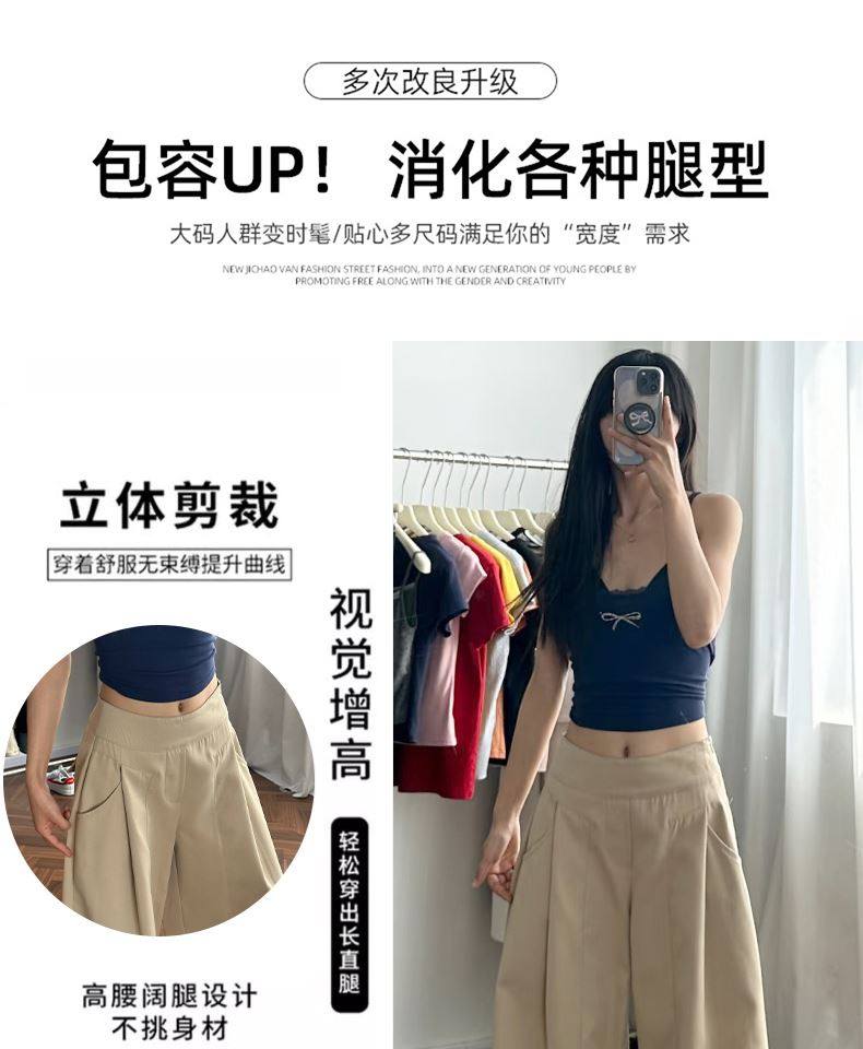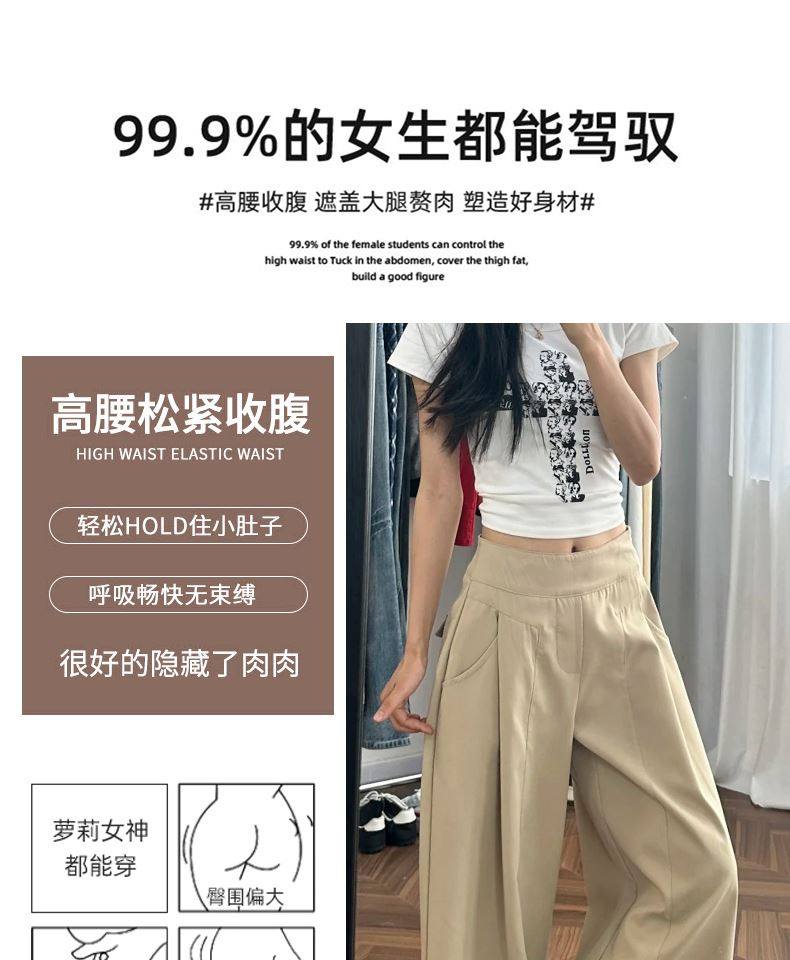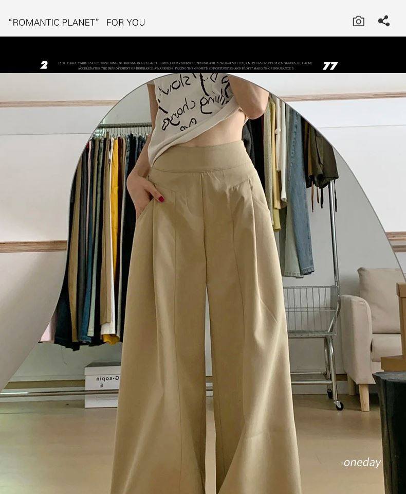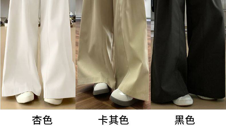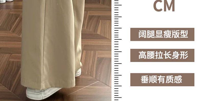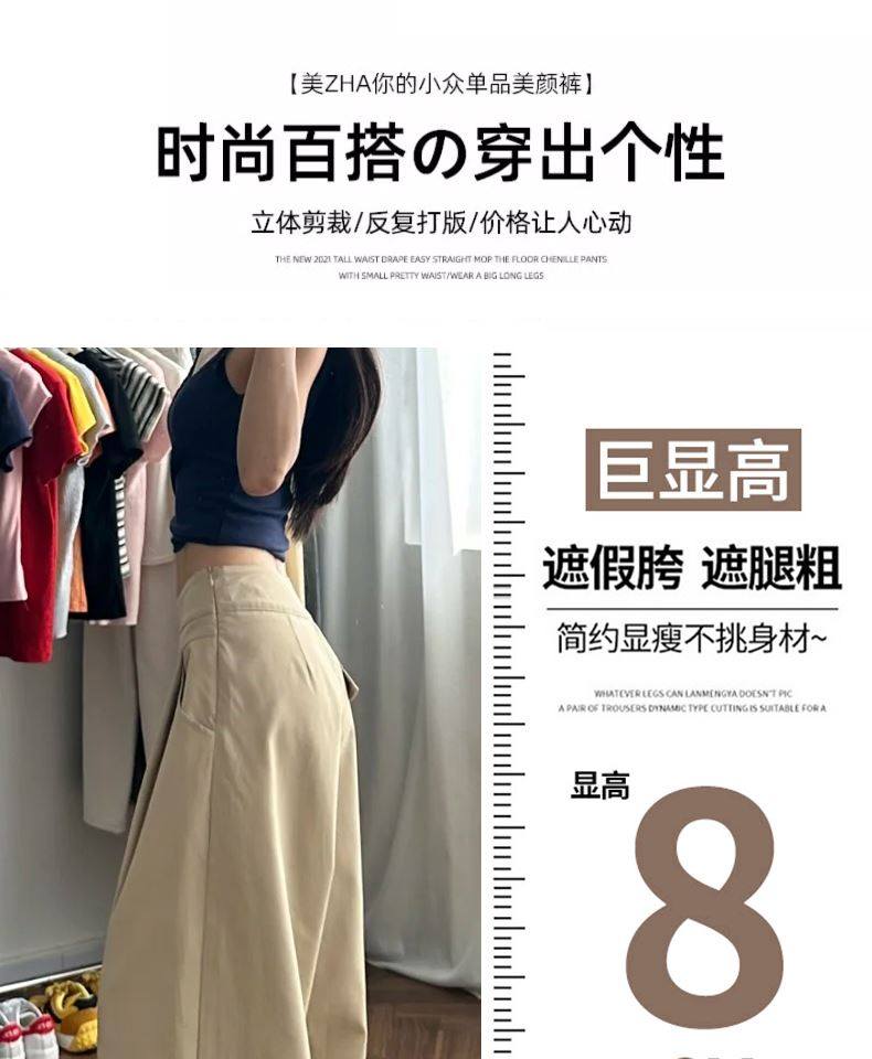 150cm Petite Wide-Leg Old Money Style Suit Pants for Women, Autumn High-Waisted Straight-Leg Floor-Length Pants with Drape, Vintage Casual Pants