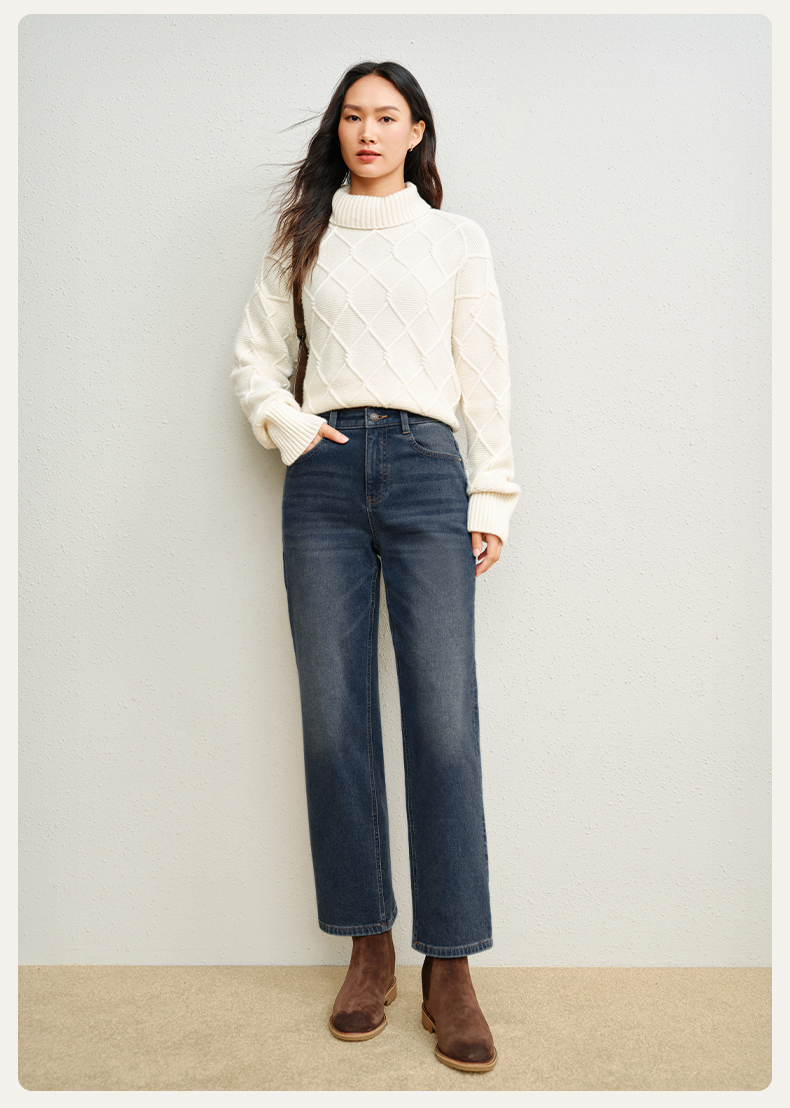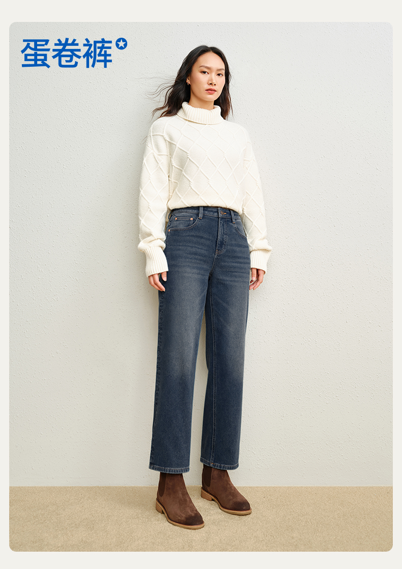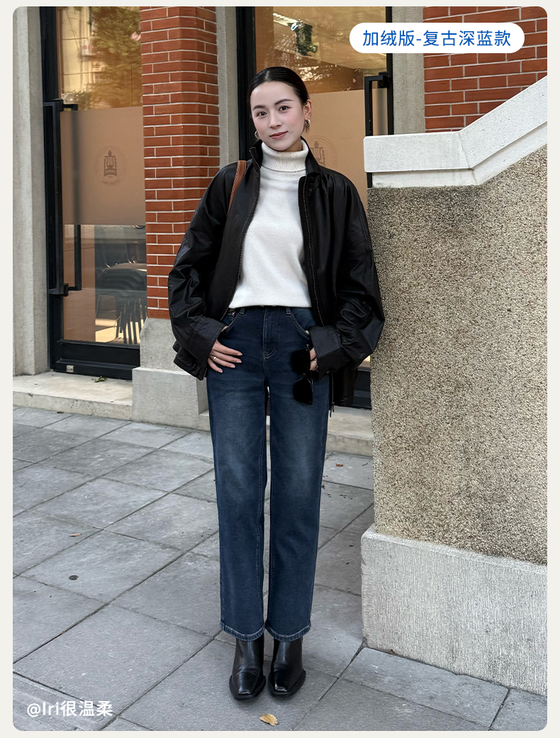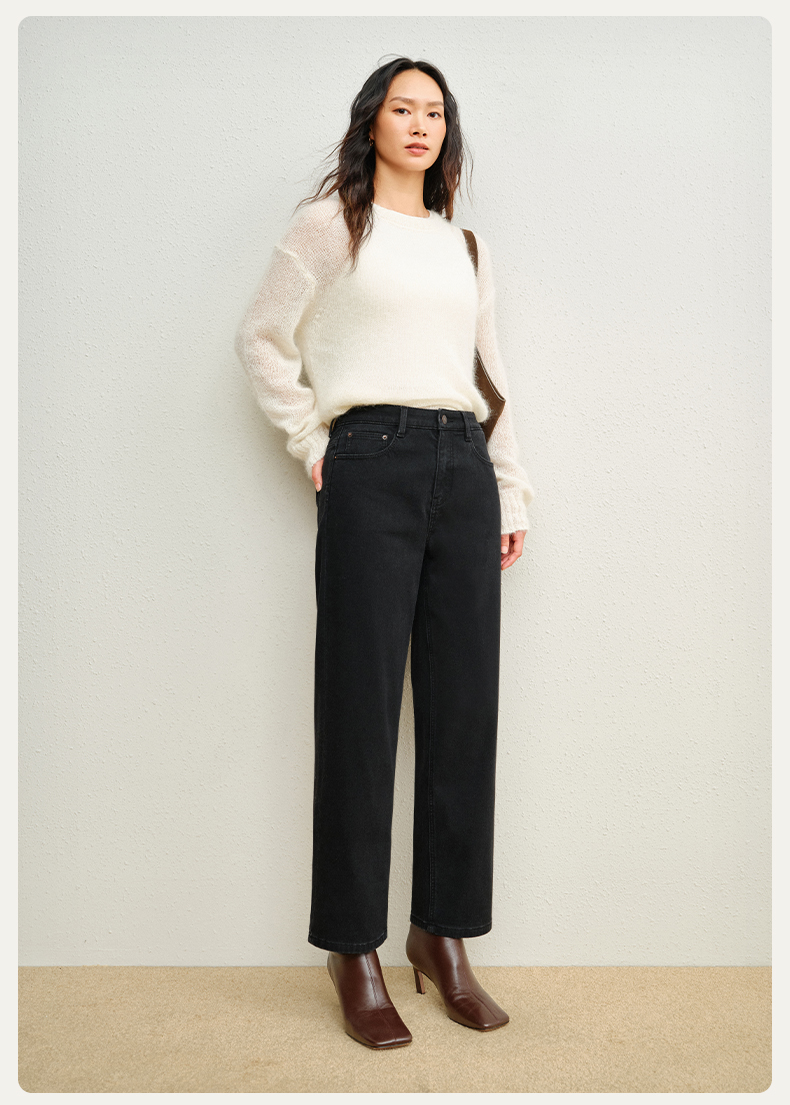 【Warm Egg Roll Pants】Simplepieces Winter New Model Sps Jeans Black Fleece-Lined Cropped Straight-Leg Pants