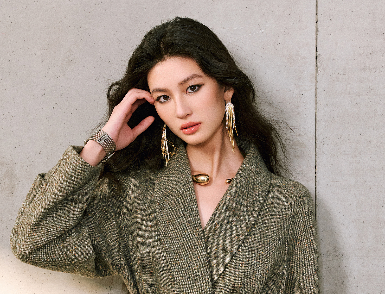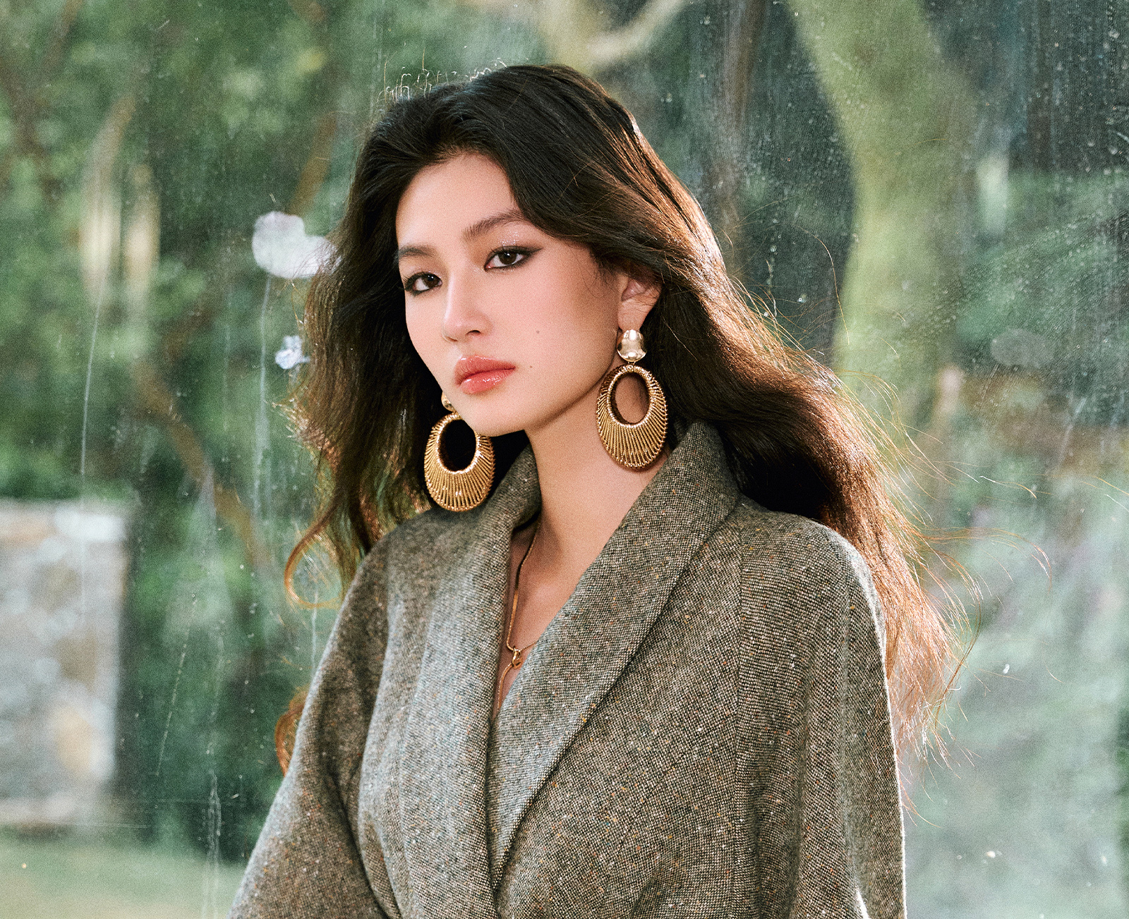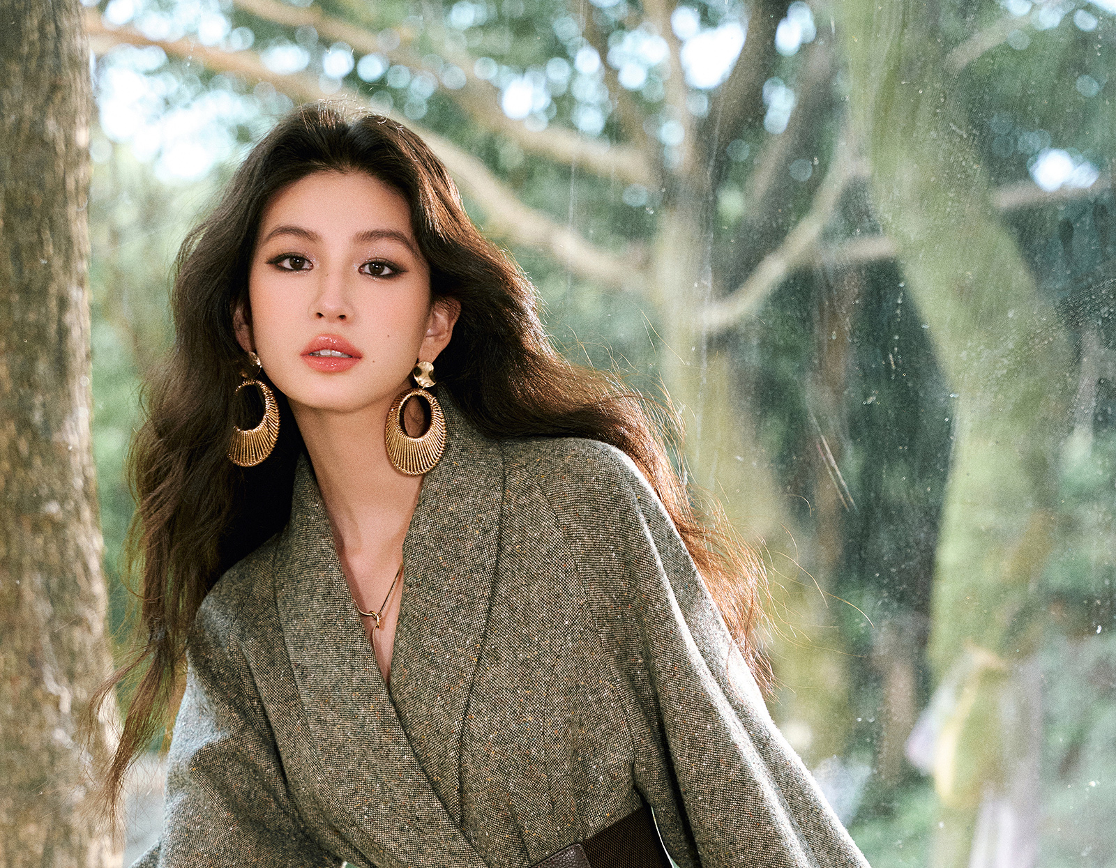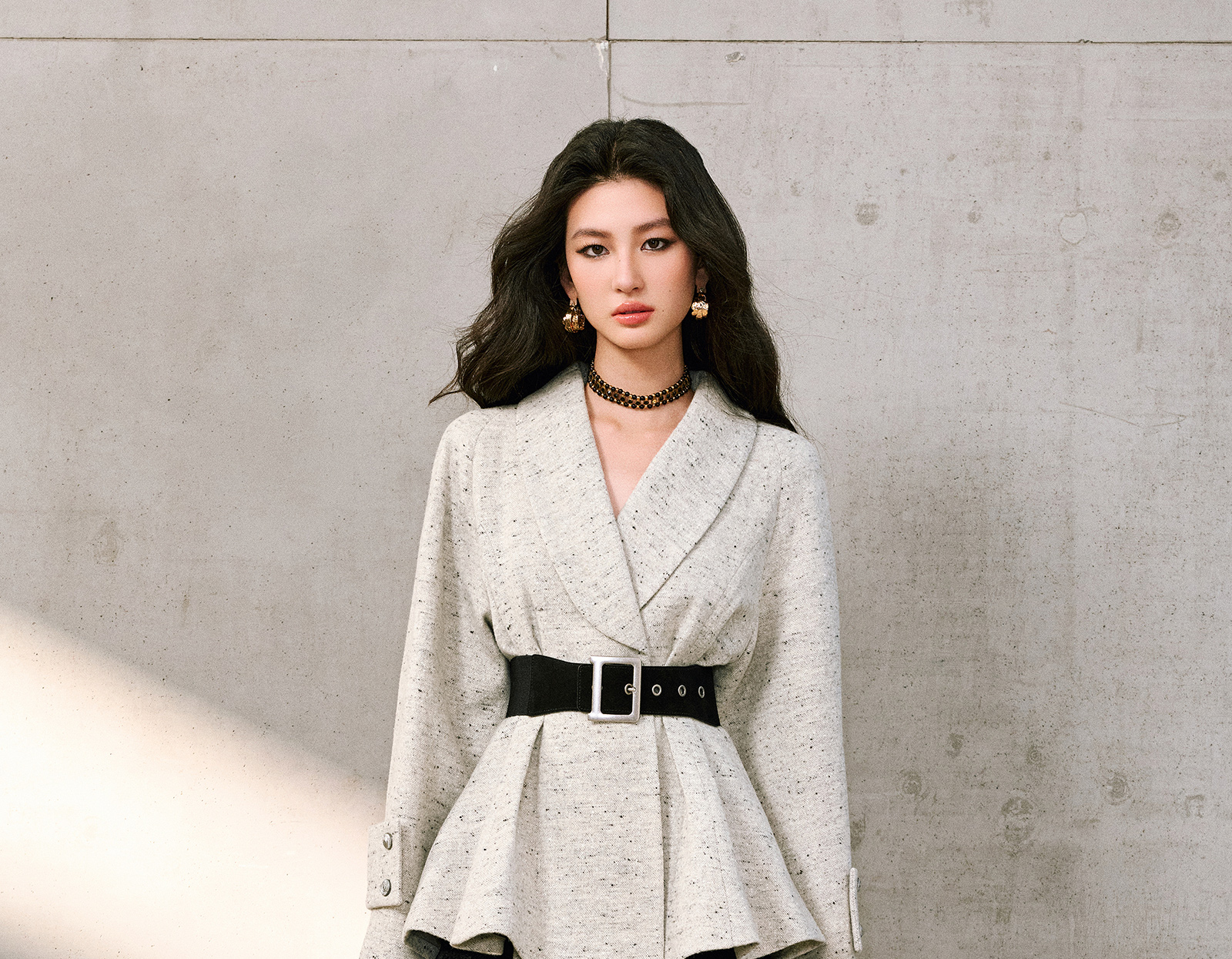 Wangxo|High-Proportion Wool Artistic Color Dots|Genuine Leather Belt Vintage Old Money Green Fruit Collar Umbrella Hem Coat