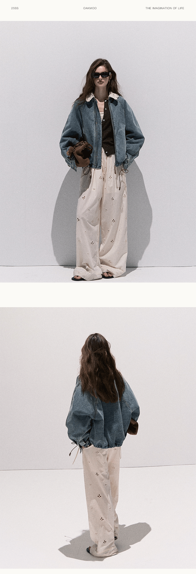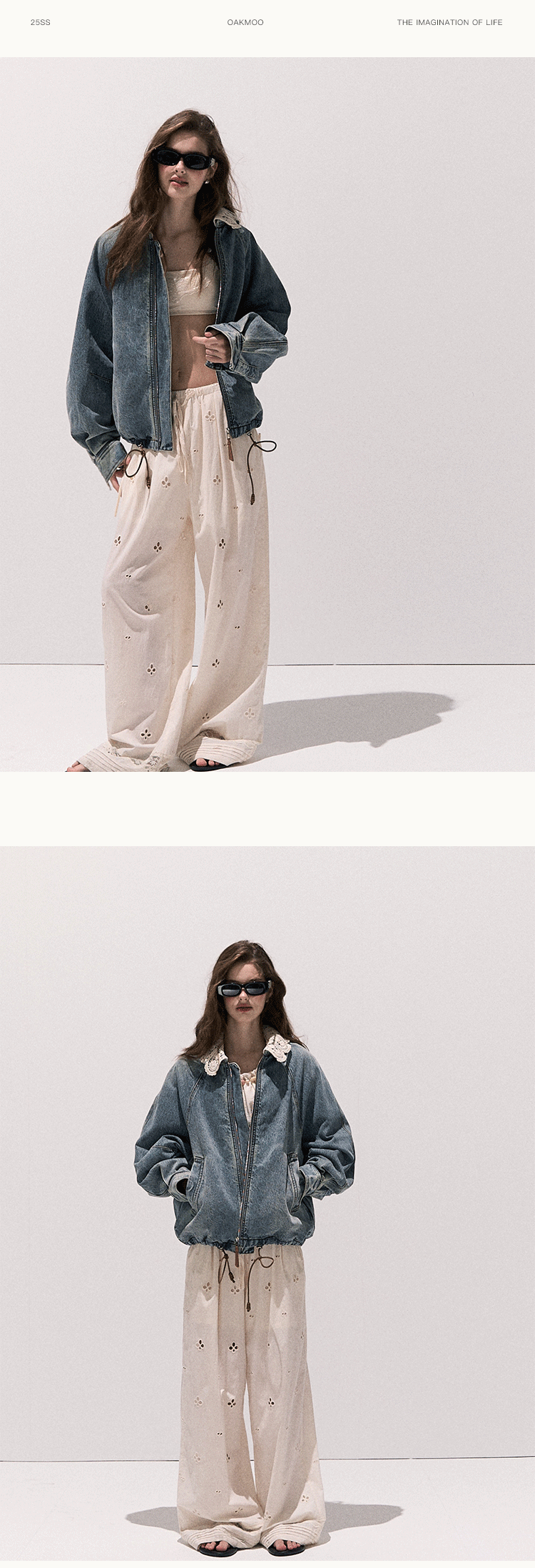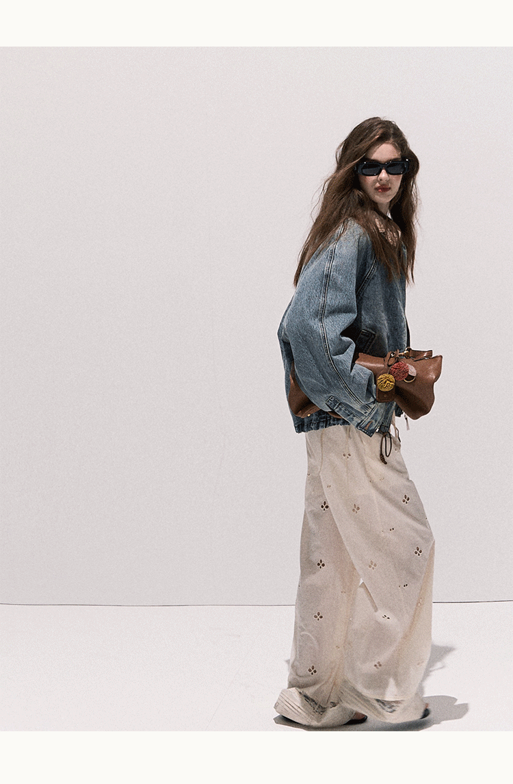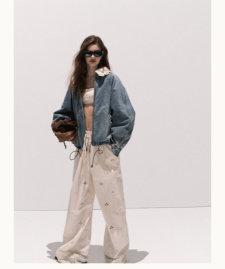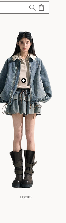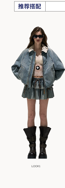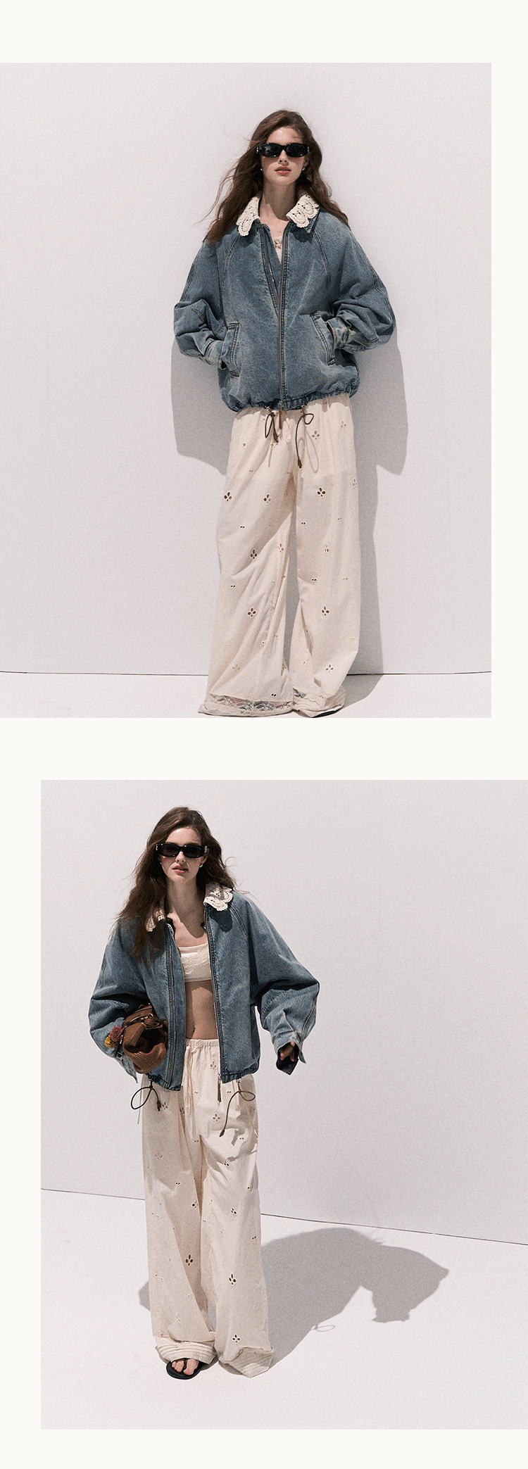 Oakmoo/ "When the Grapes Are Ripe" Handmade Crochet Flower Bud Denim Jacket Padded Coat Distressed Short Skirt Set