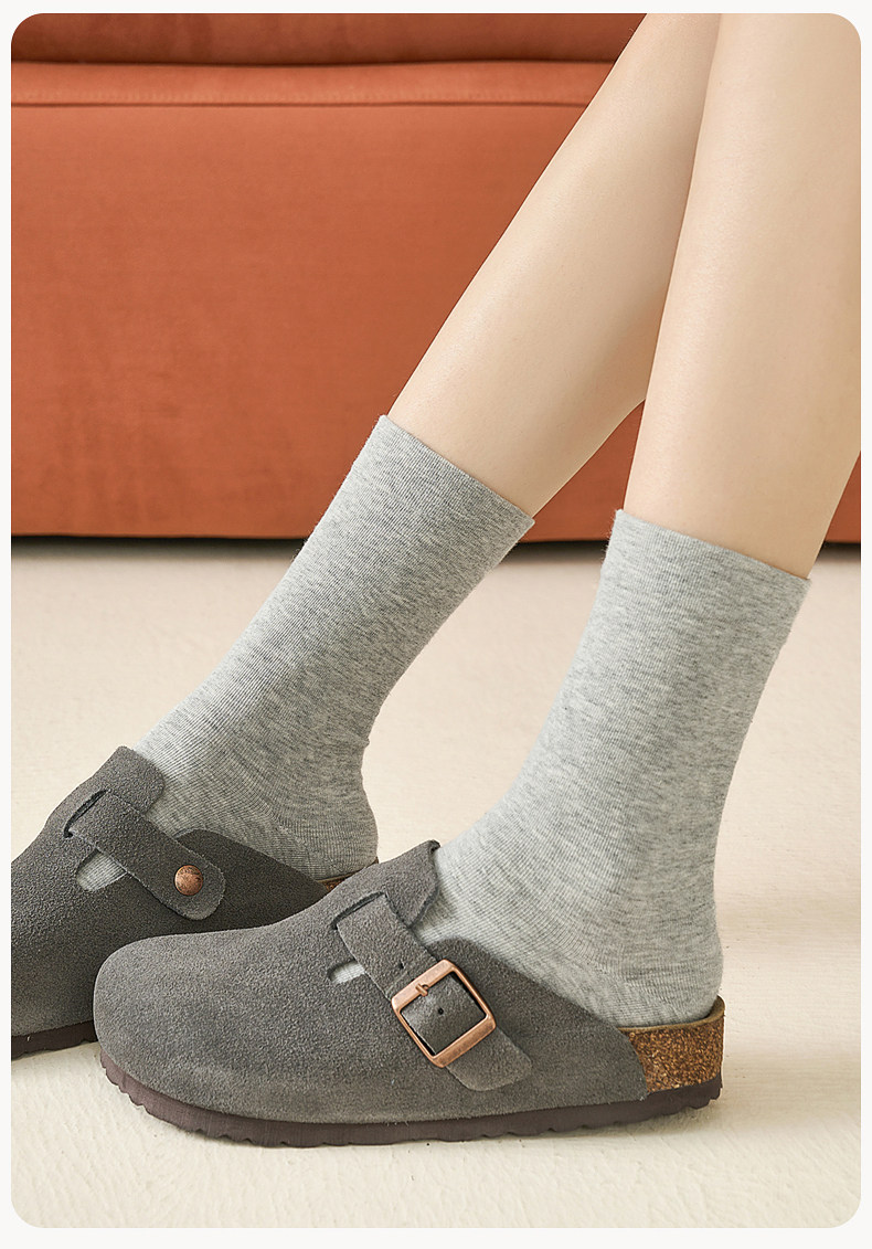 Gray Zhuji Socks for Women, Summer Thin Pure Cotton Mid-Calf Socks, 2026 New Popular Style, Slouch Socks, Seamless Maternity Socks