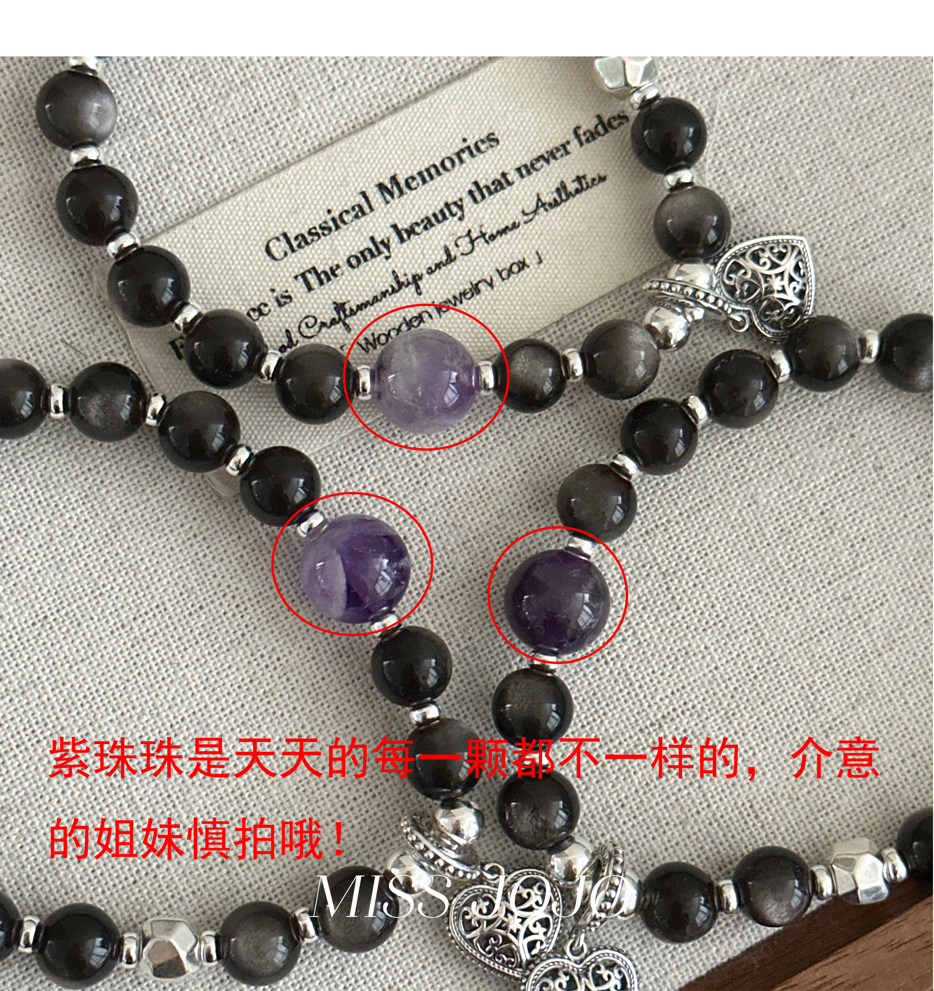 Miss Jojo Original Design, Fashionable, Simple and Elegant, Women's Black Bead Heart S925 Sterling Silver Bracelet 3875