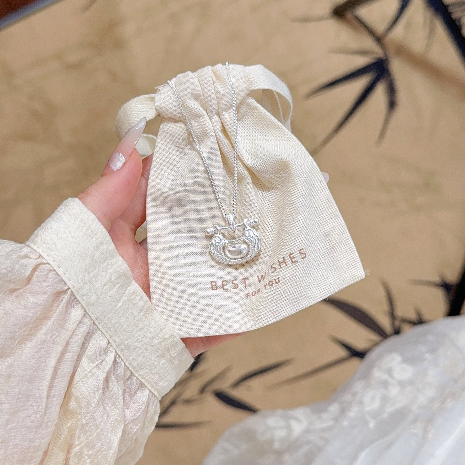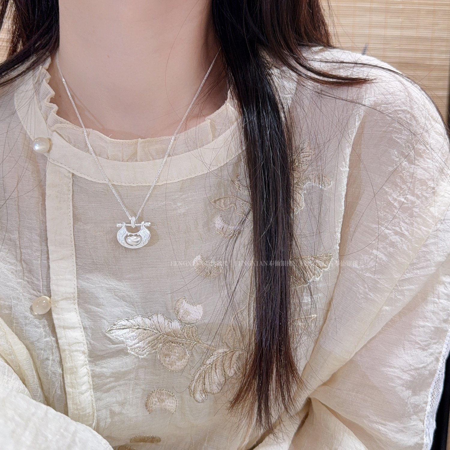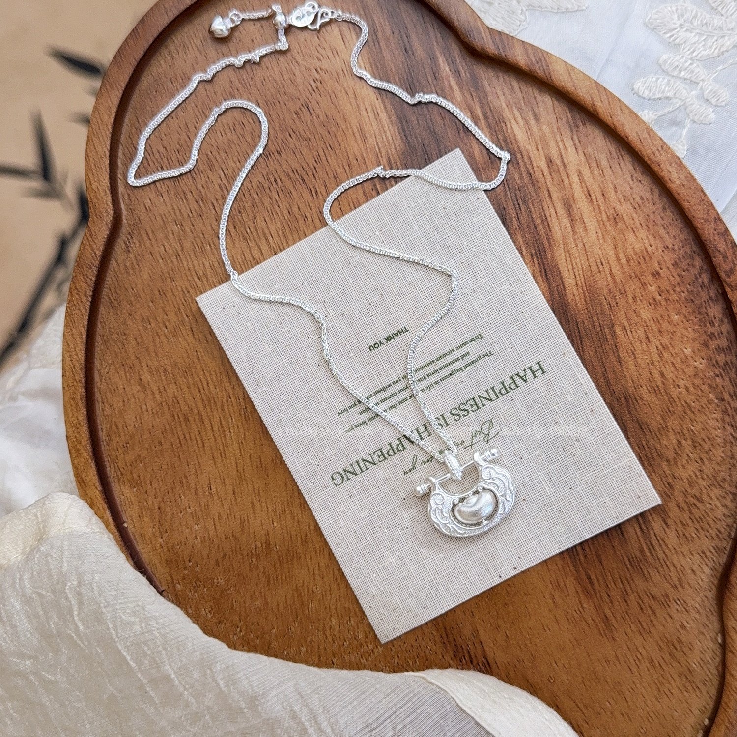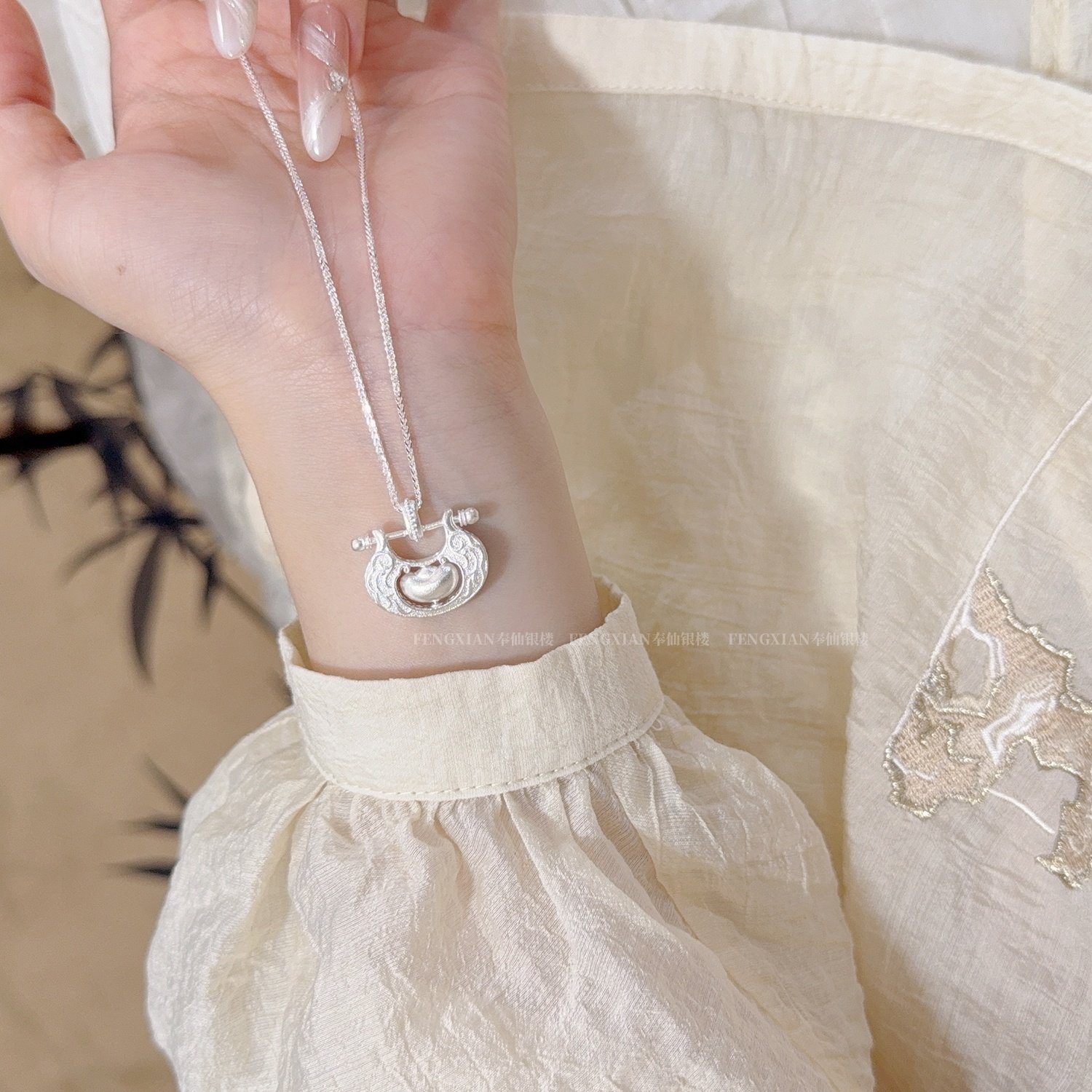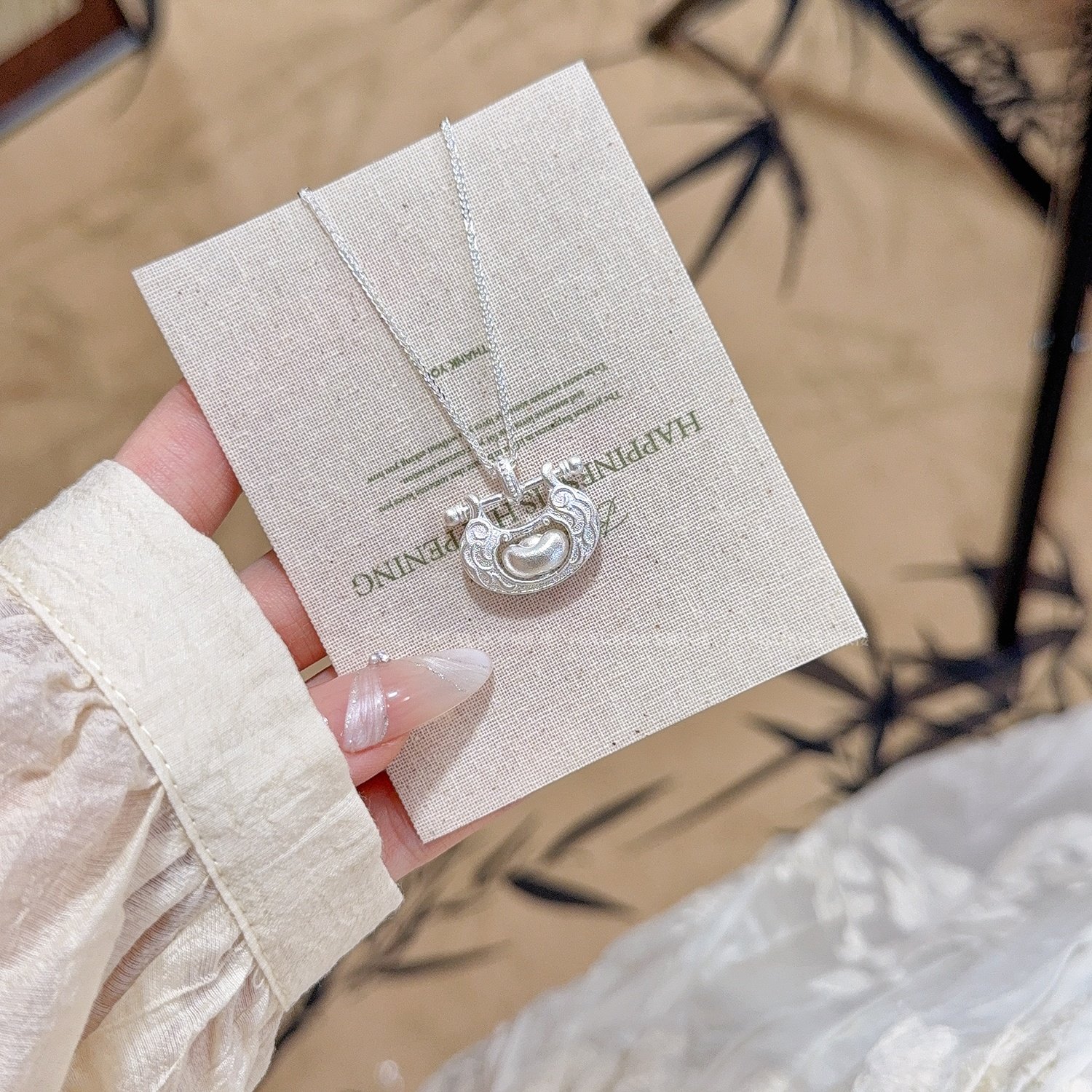 Dreamlike Filigree Yuanbao Peace Lock 999 Pure Silver Necklace Women's Pendant New Chinese Style National Style Rotatable