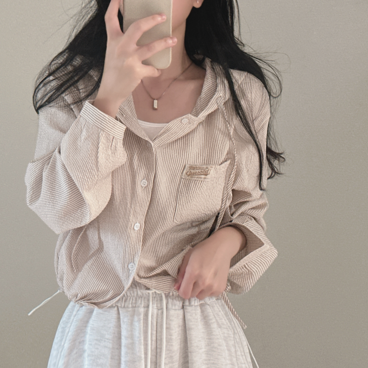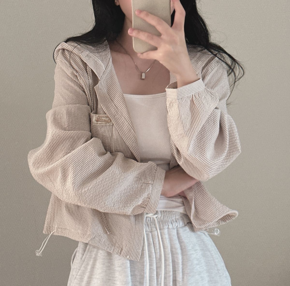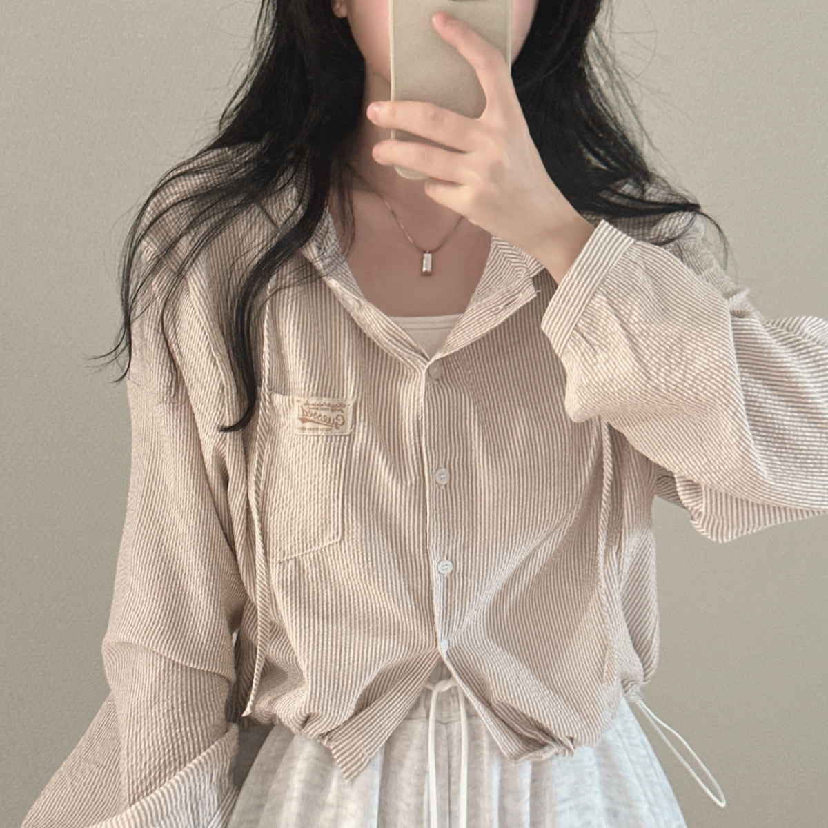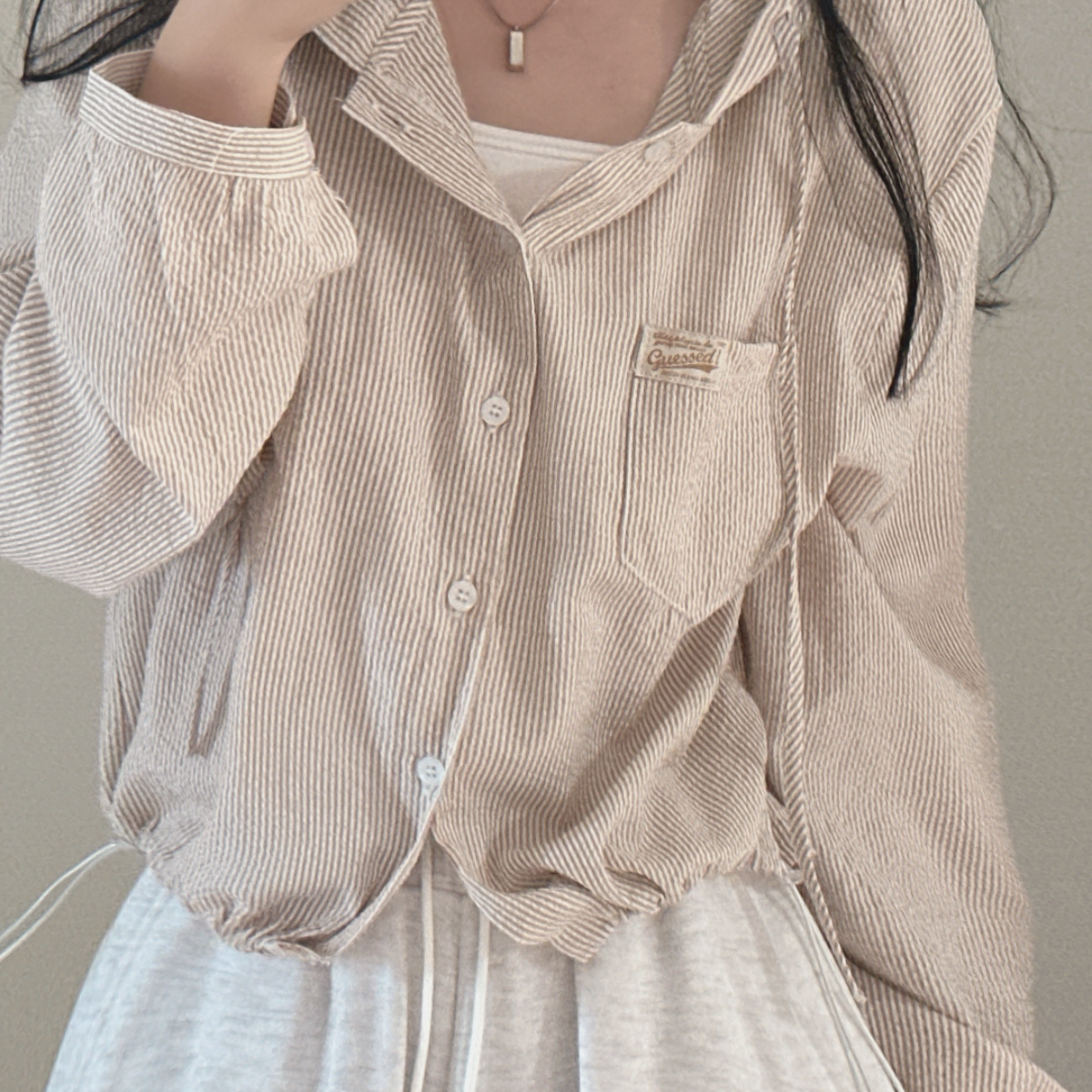 Korean Chic Spring New Vintage Style Letter Patch Pocket Long-Sleeve Striped Hooded Shirt Jacket for Women