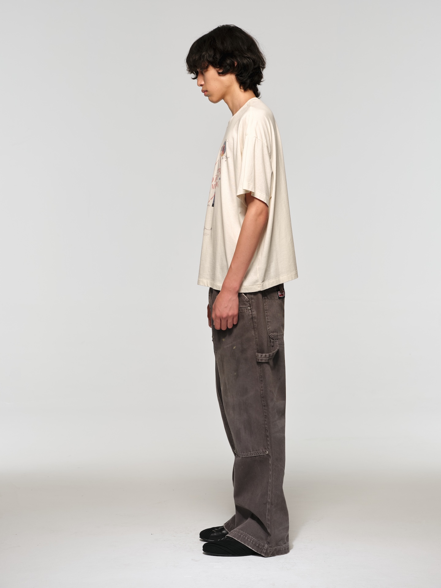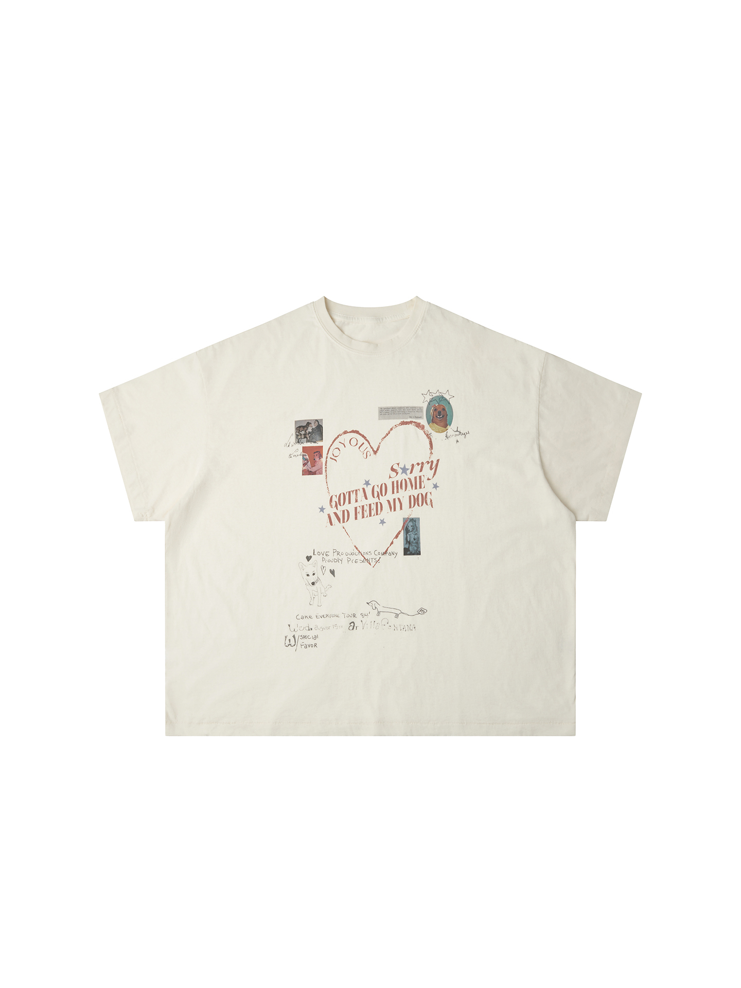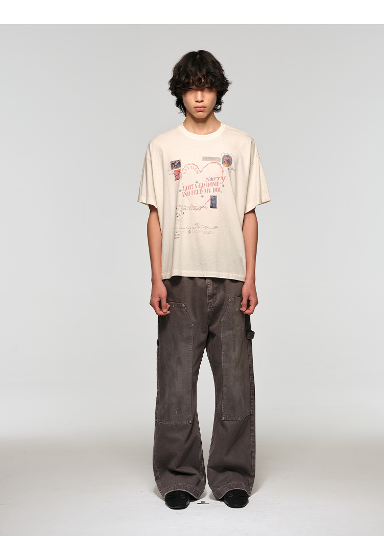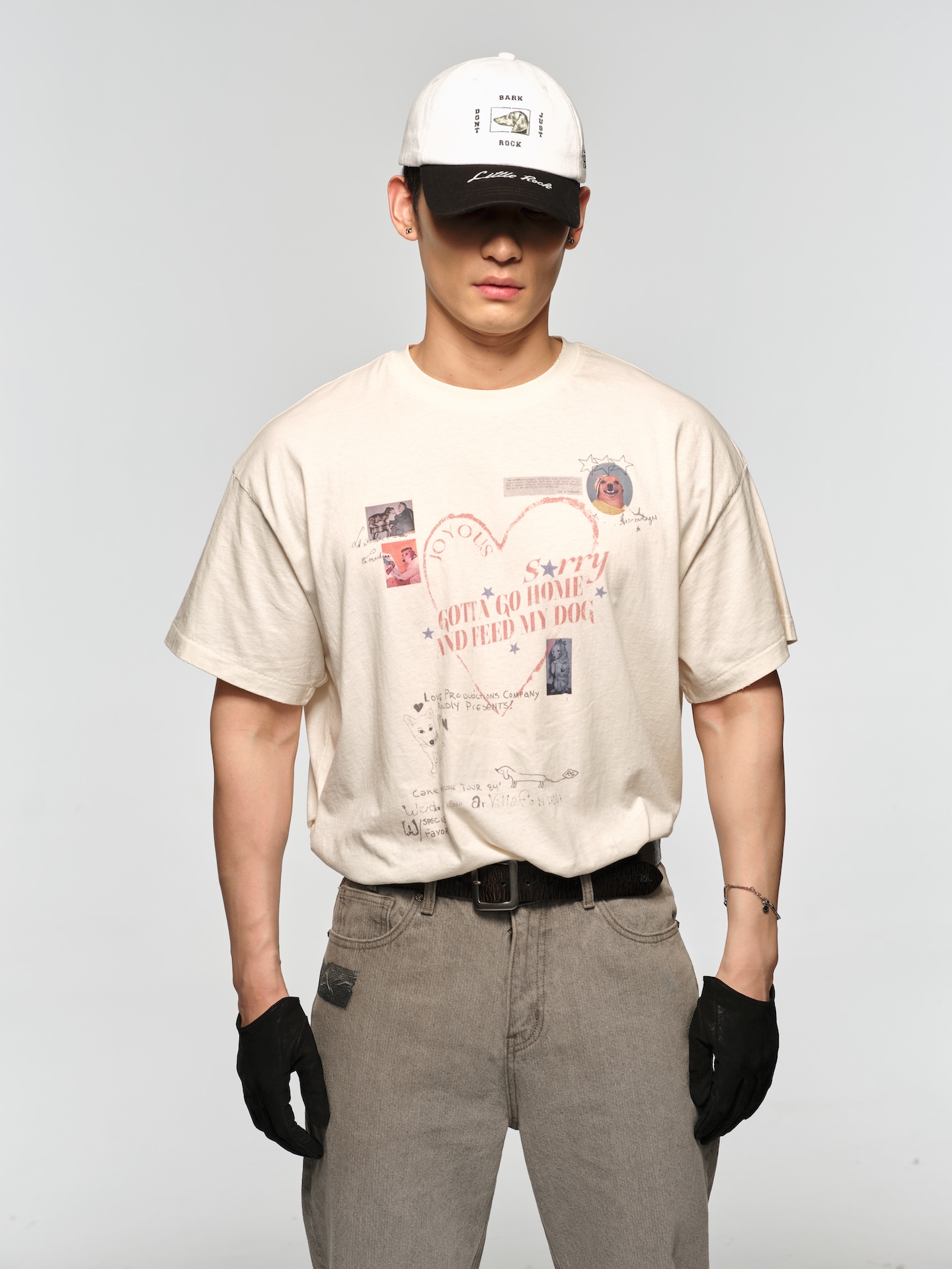 Records Inc Walk My Dog* Retro Distressed Short Wide Washed Short-Sleeved Shirt