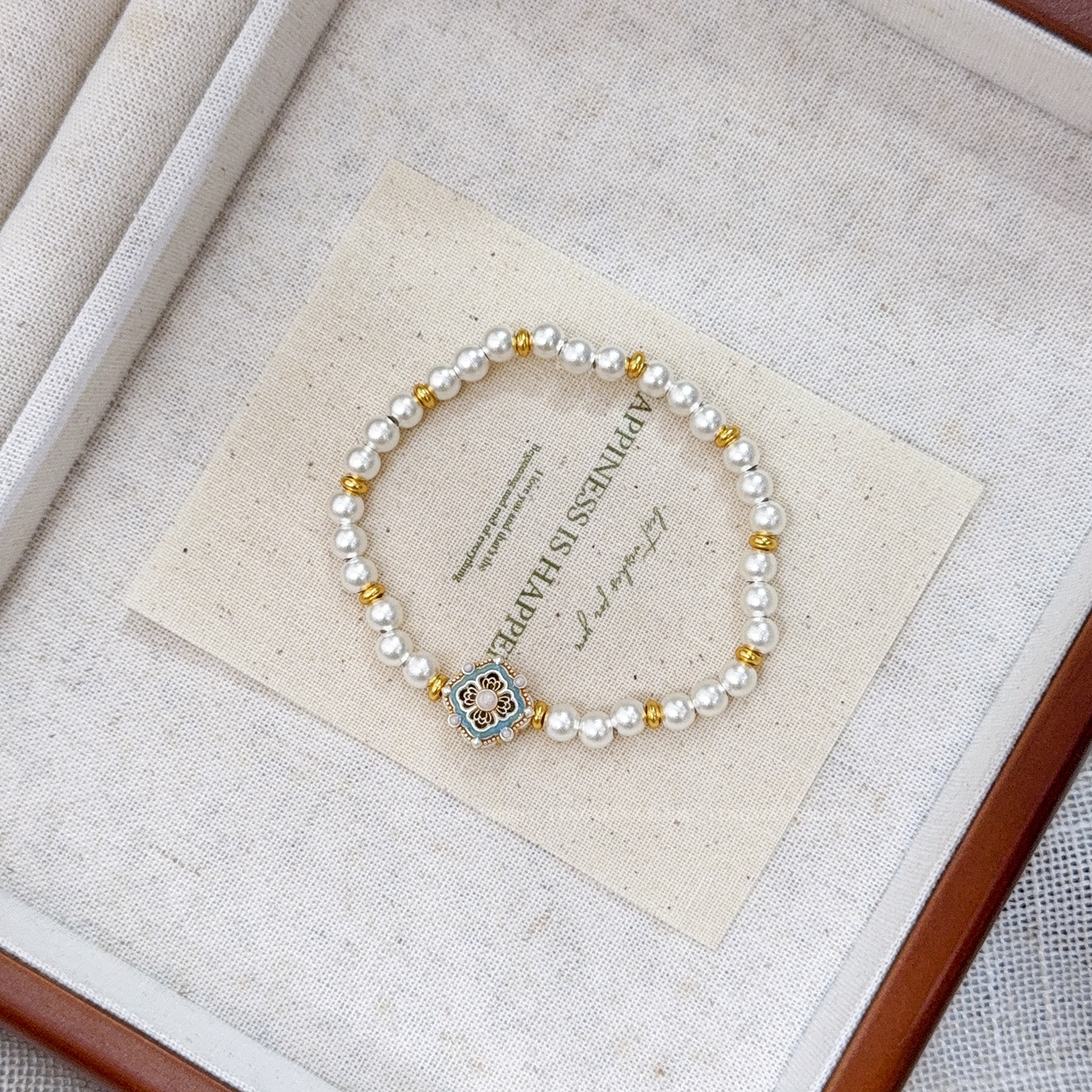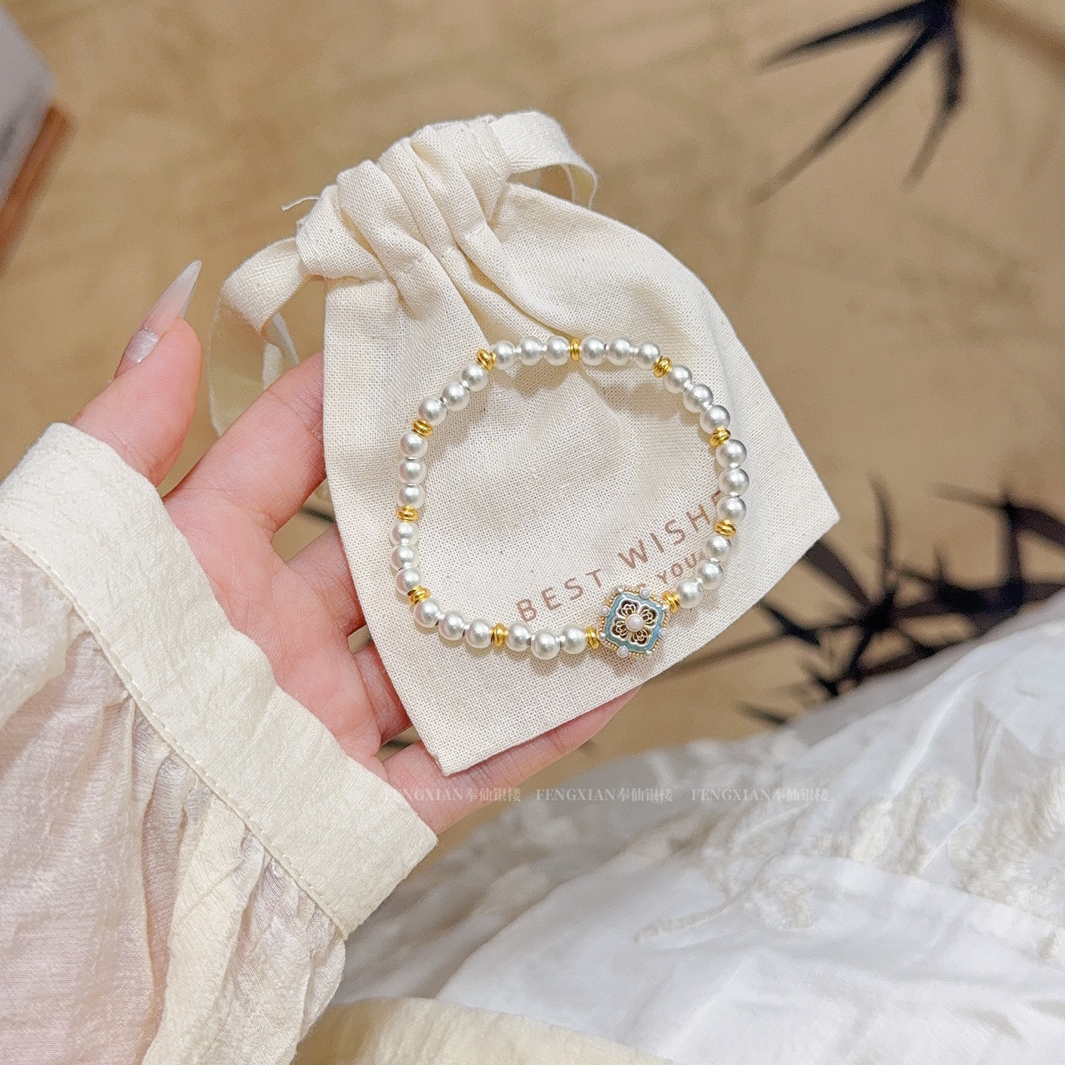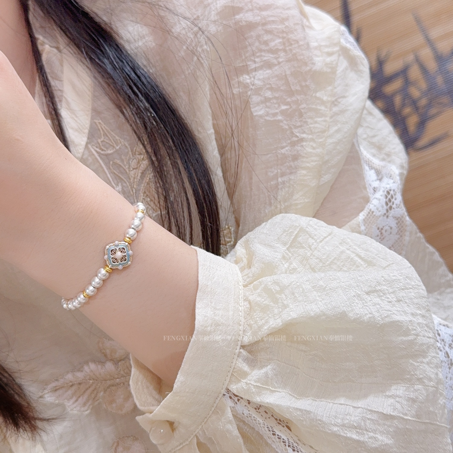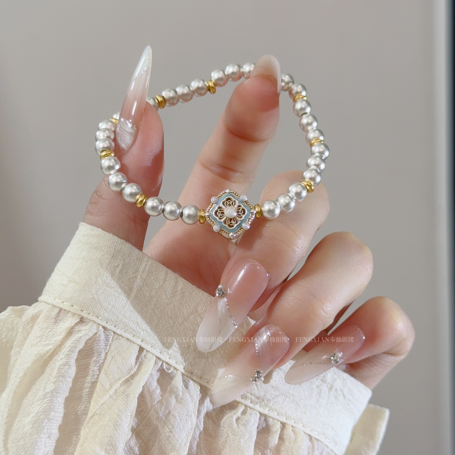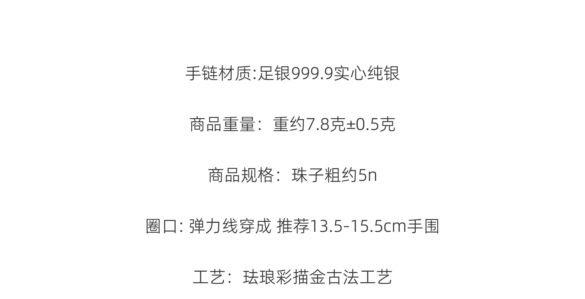 "Smoke Fang" Treasure Flower Silver 999.9 Sterling Silver Bracelet Women's Enamel Color Gold New Chinese Style National Style Bracelet