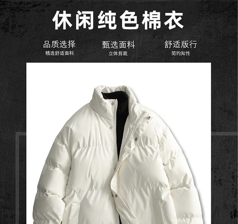 Jeanswest Cotton Jacket for Men and Women, Winter Loose-Fitting Versatile American-Style Solid Color Cotton Coat, Couple's Thickened Warm Cotton Clothing