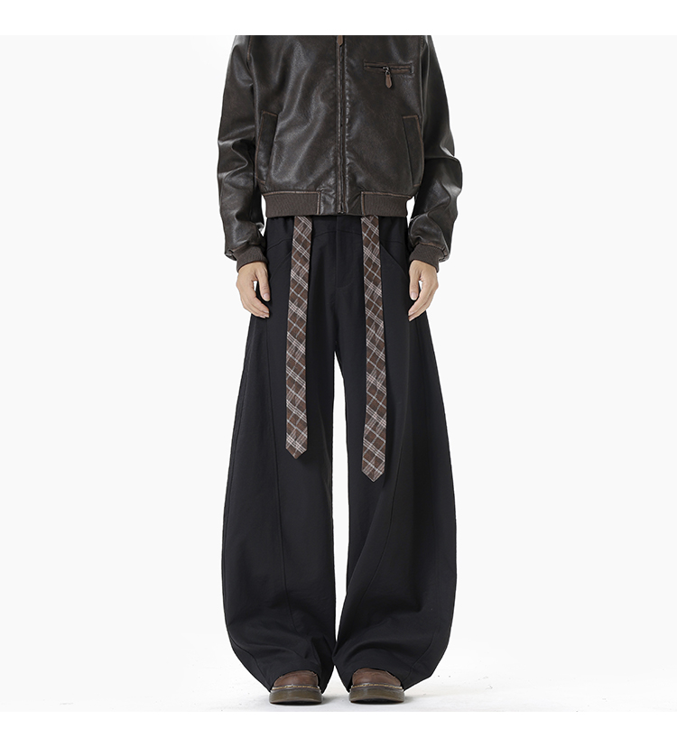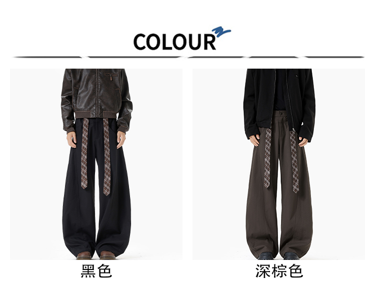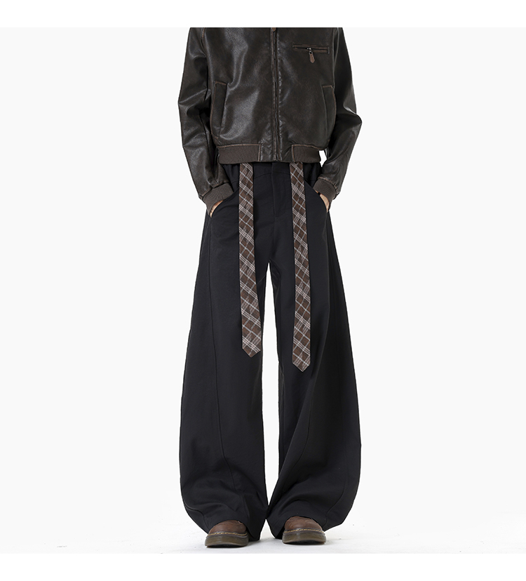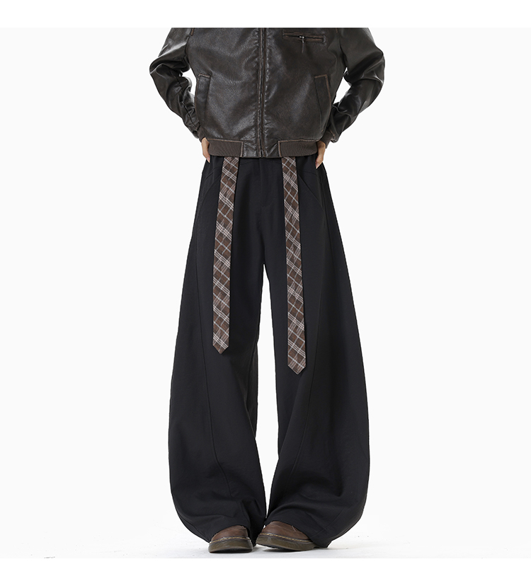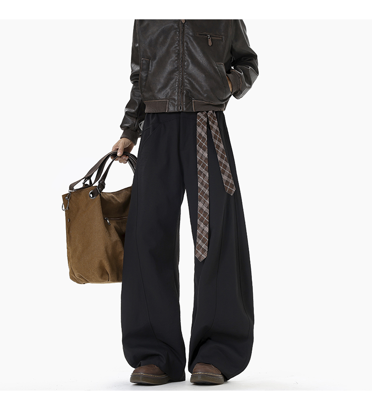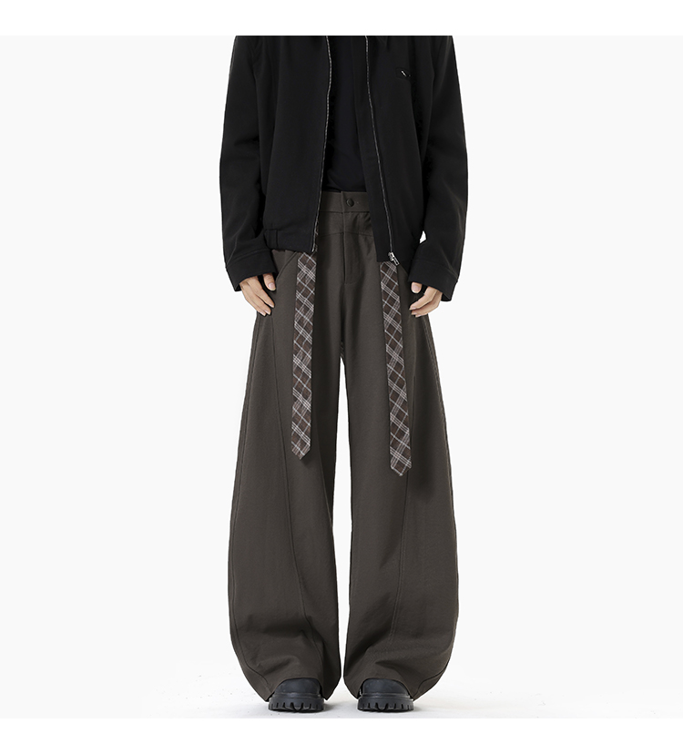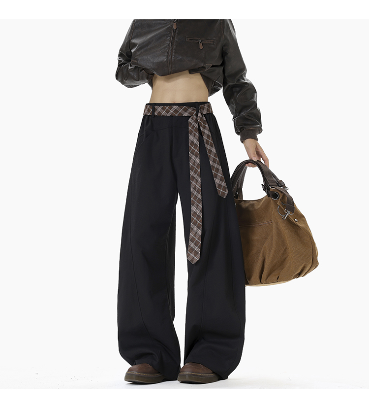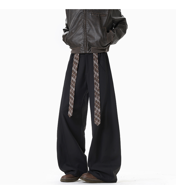 Old Money Style Retro Plaid Belted Knife-Cut Trousers for Men and Women, Autumn High-End Thickened Wide-Leg Casual Pants