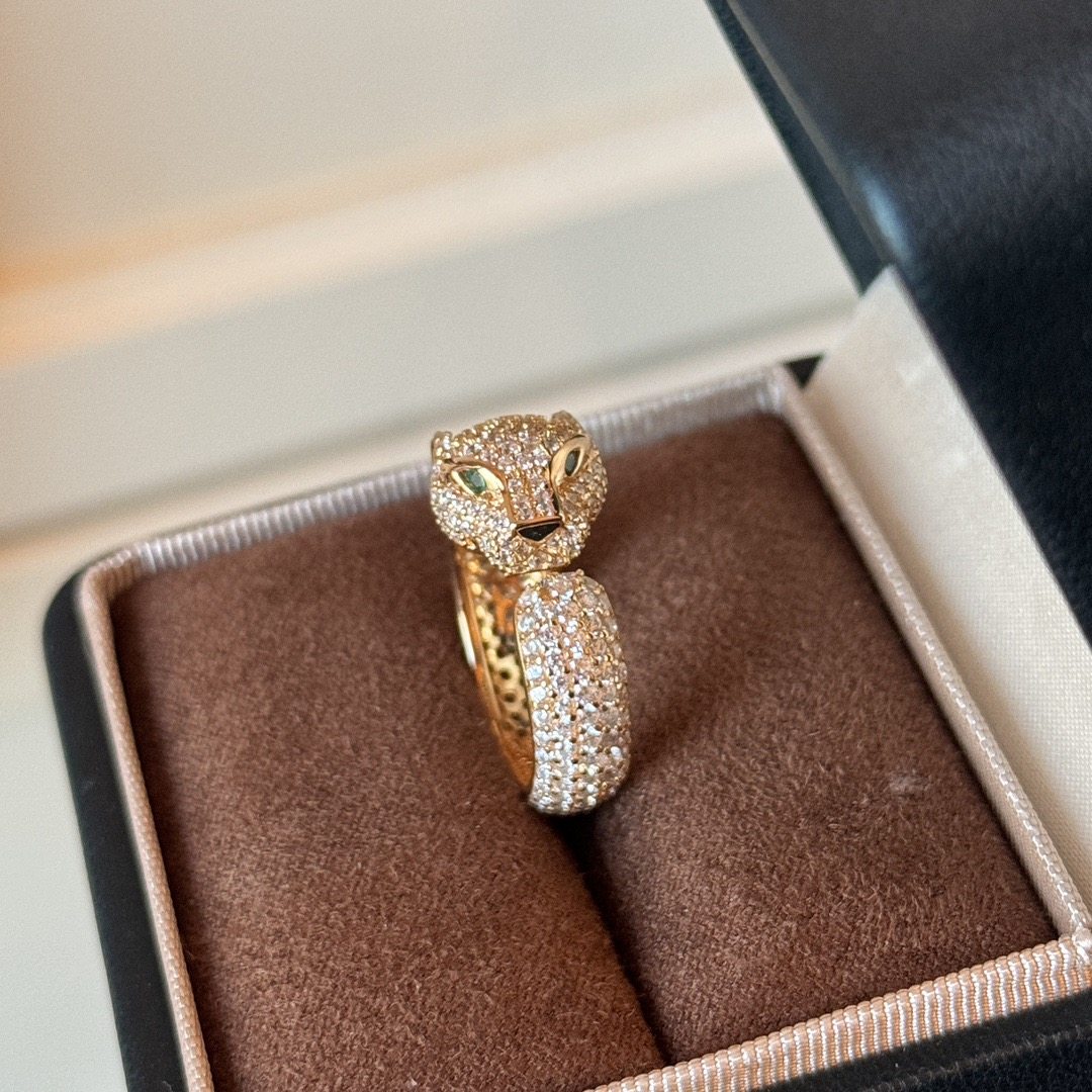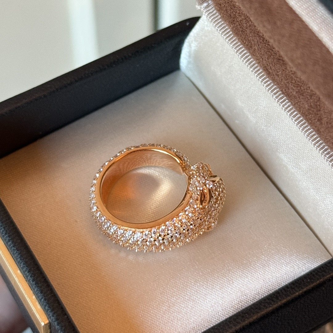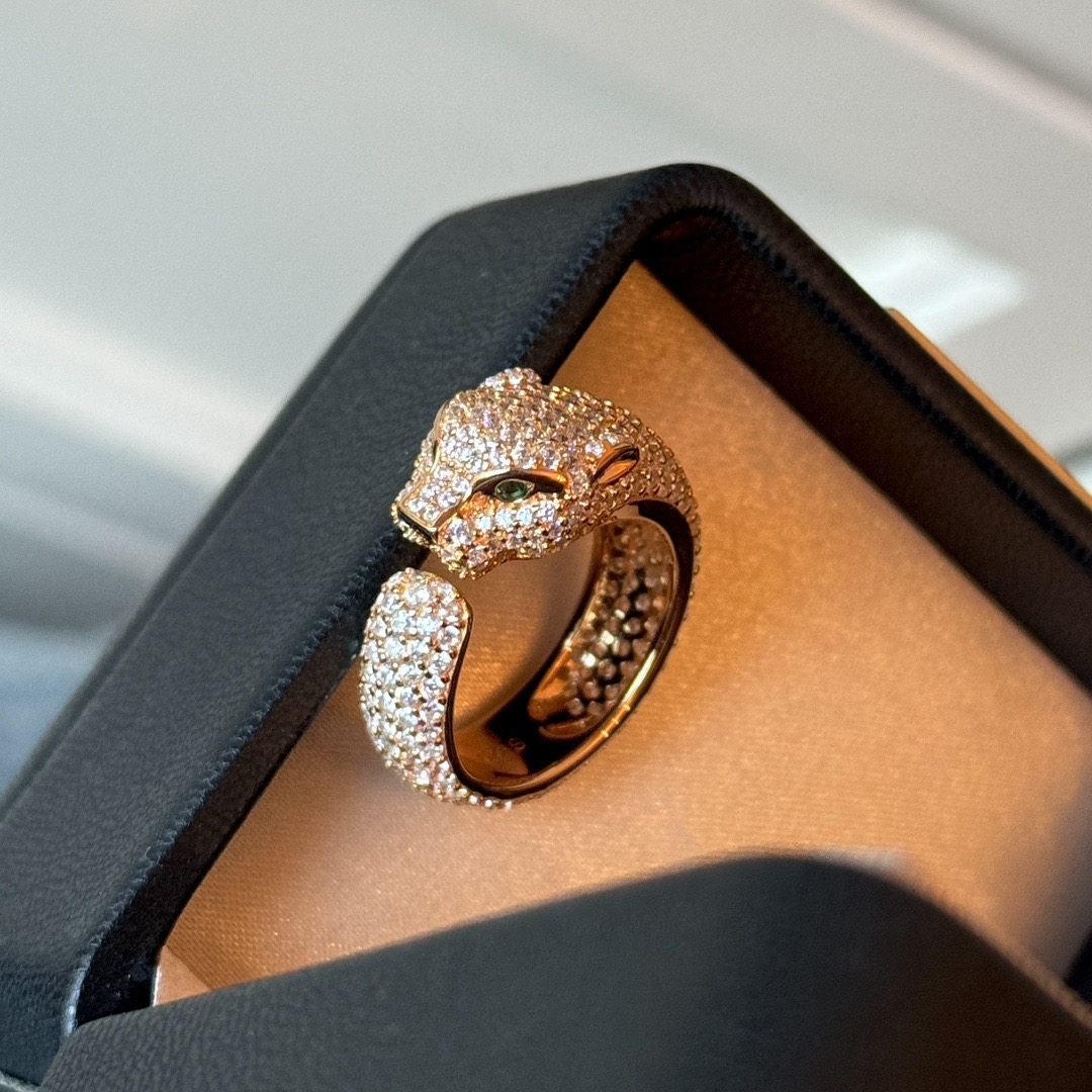 Rose Gold Cheetah Ring 925 Sterling Silver Leopard Head Plated with 18K Gold, Stylish and Luxurious with Full Diamonds, High-End Women's Ring