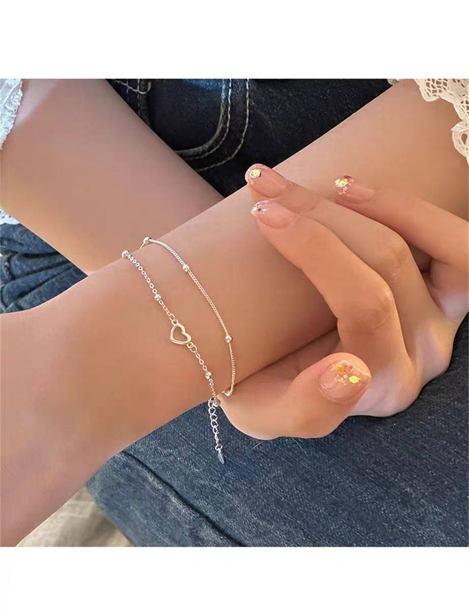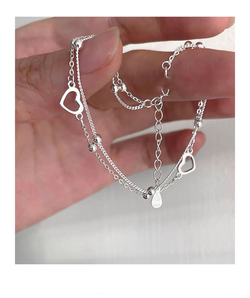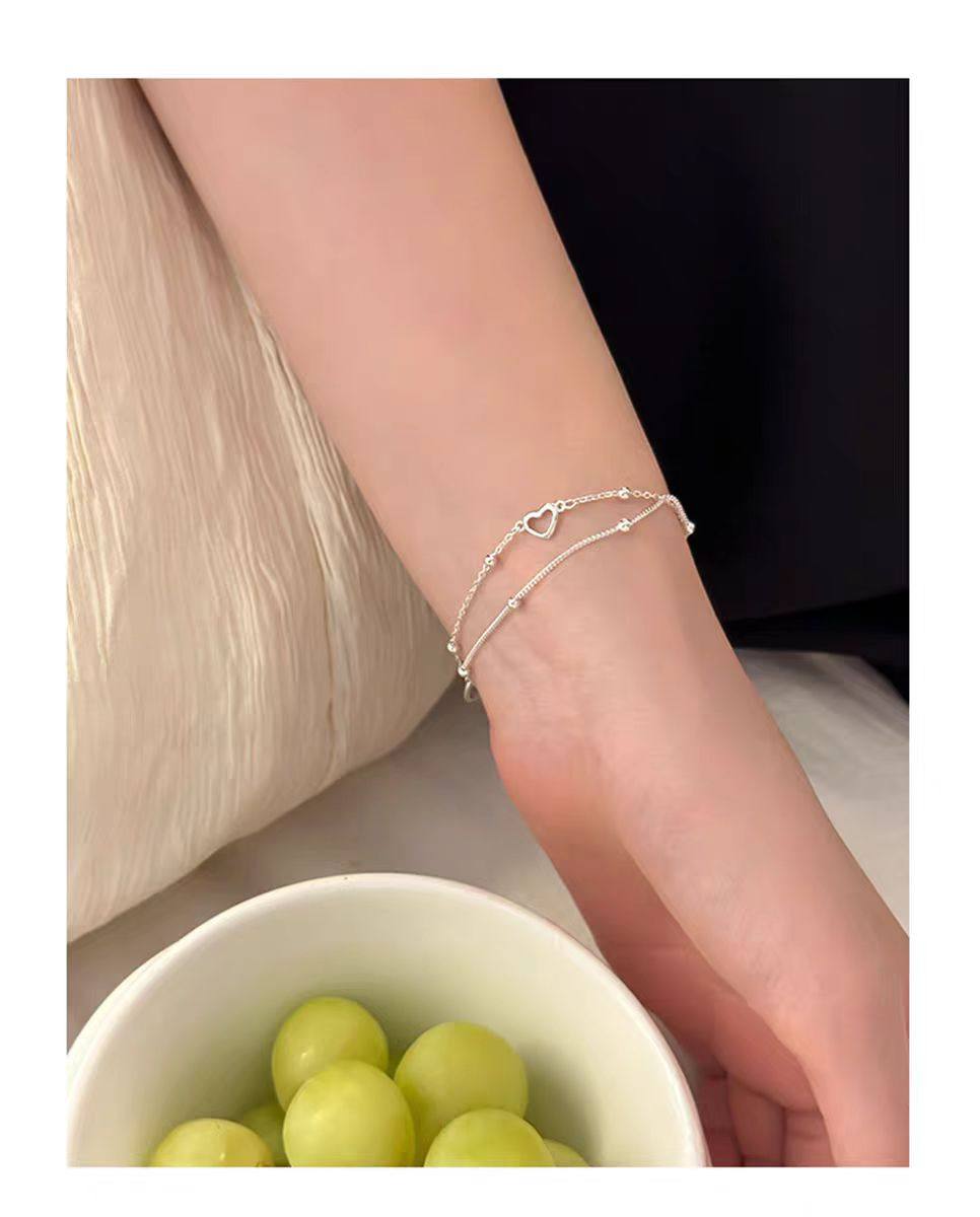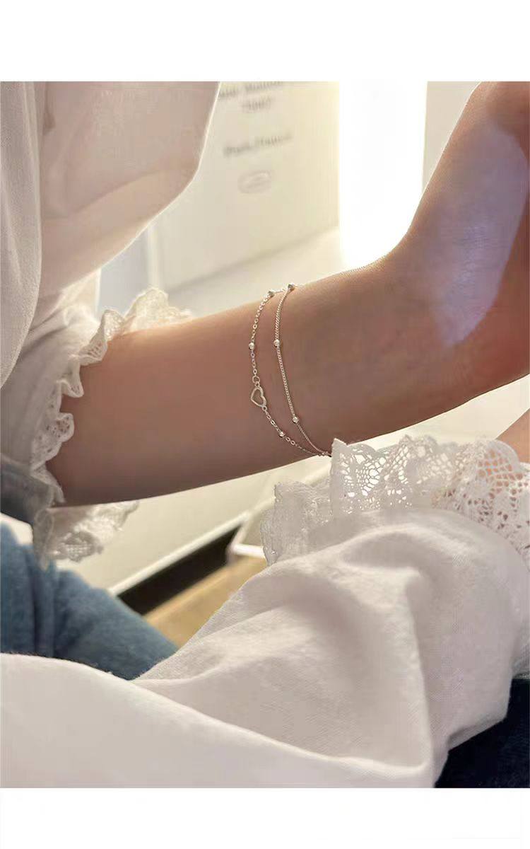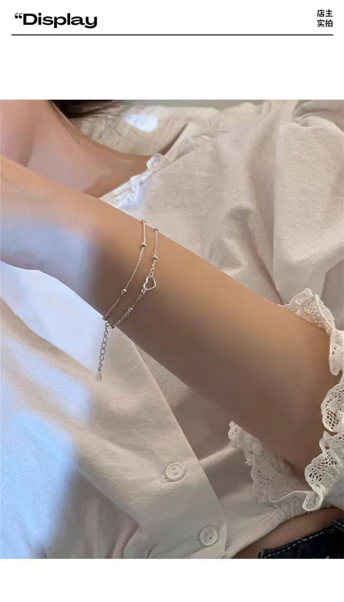 925 Sterling Silver Heart Double-Layer Bracelet for Women, Light Luxury, Niche, Exquisite, 2025 New Model, Niche Design Jewelry with Engraving