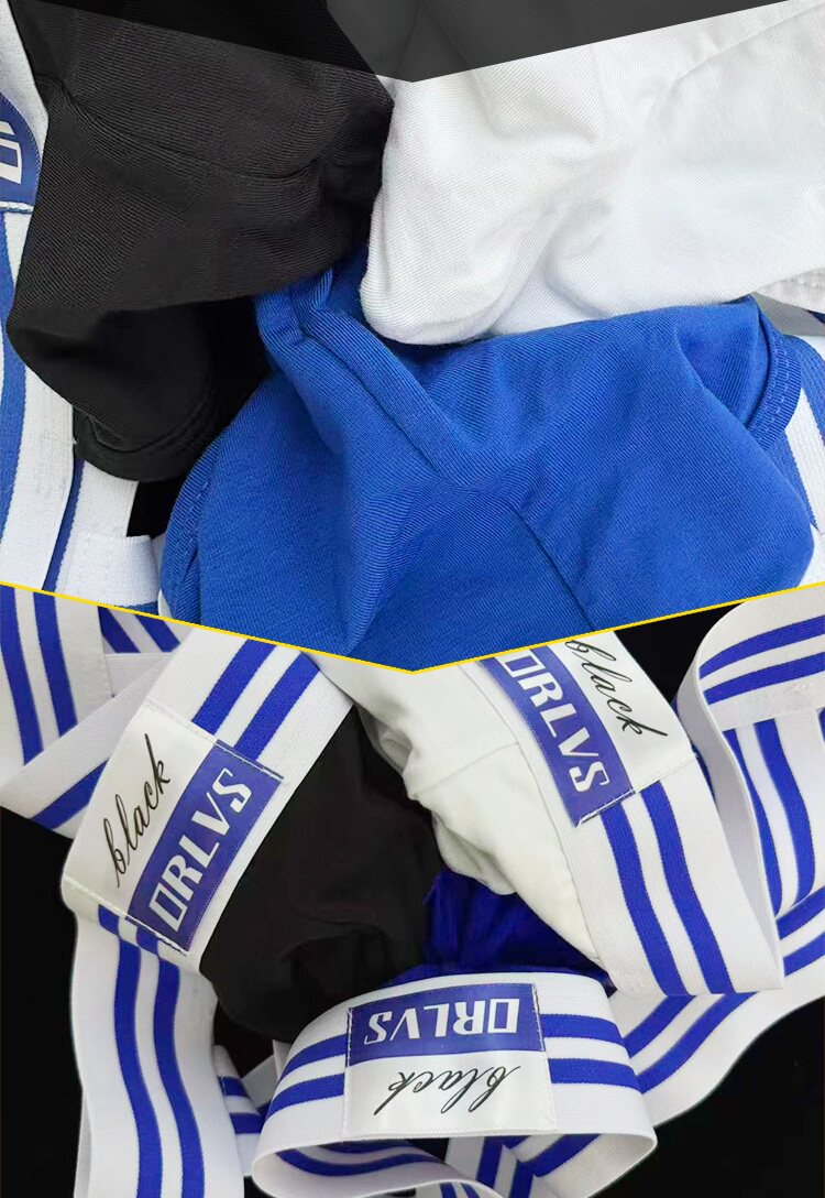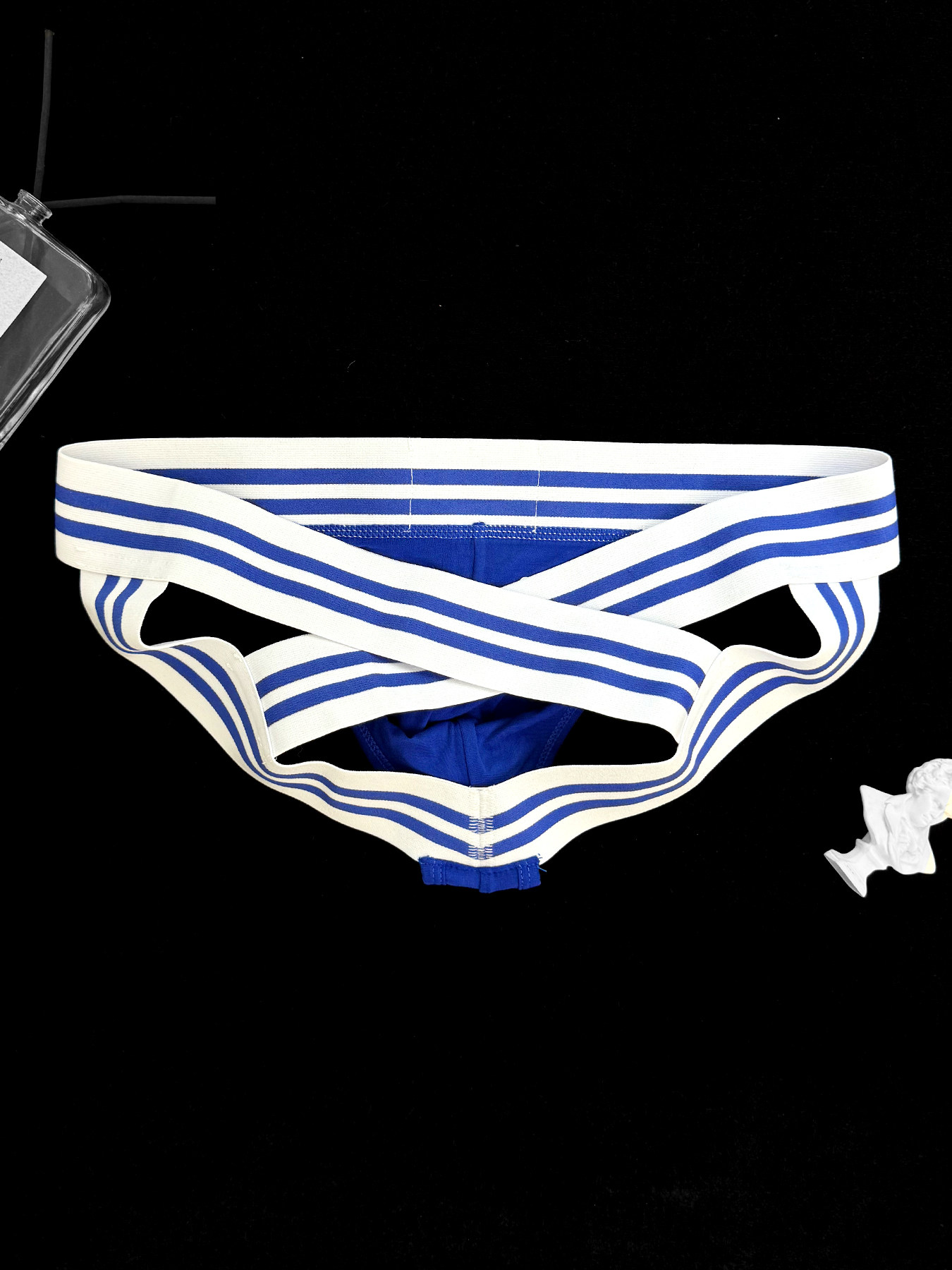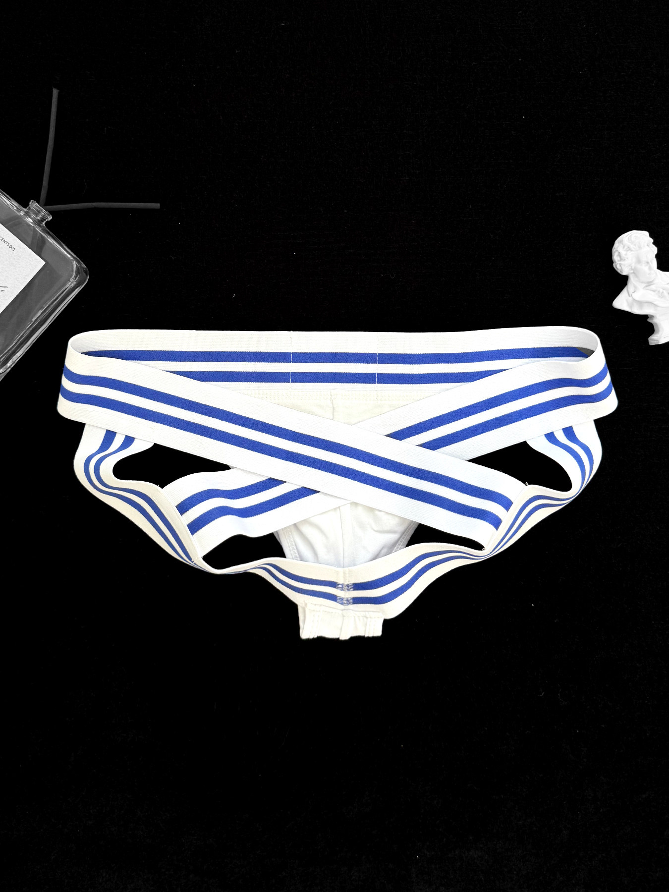 Orlvs Men's Thong Underwear Cross Double Thong Modal Navy Stripe U-Convex Sexy Low-Waist Hip-Lifting Sports Youth