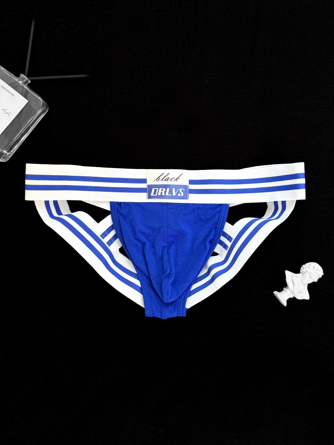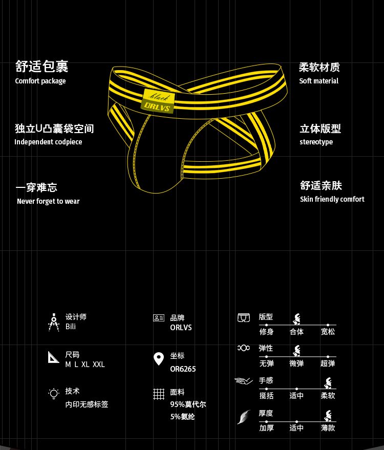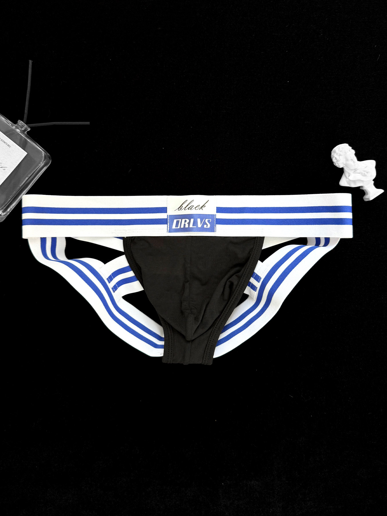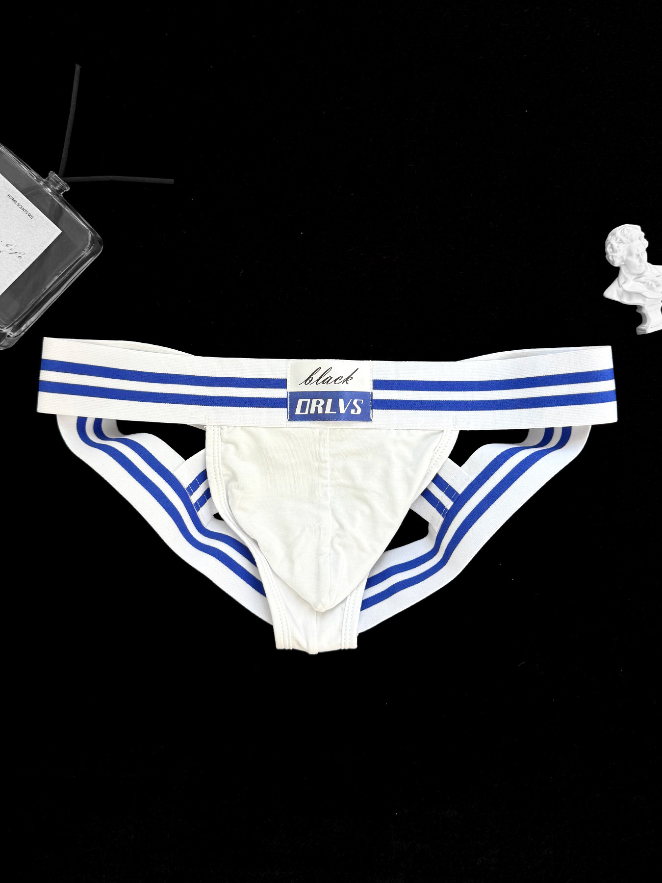 Orlvs Men's Thong Underwear Cross Double Thong Modal Navy Stripe U-Convex Sexy Low-Waist Hip-Lifting Sports Youth