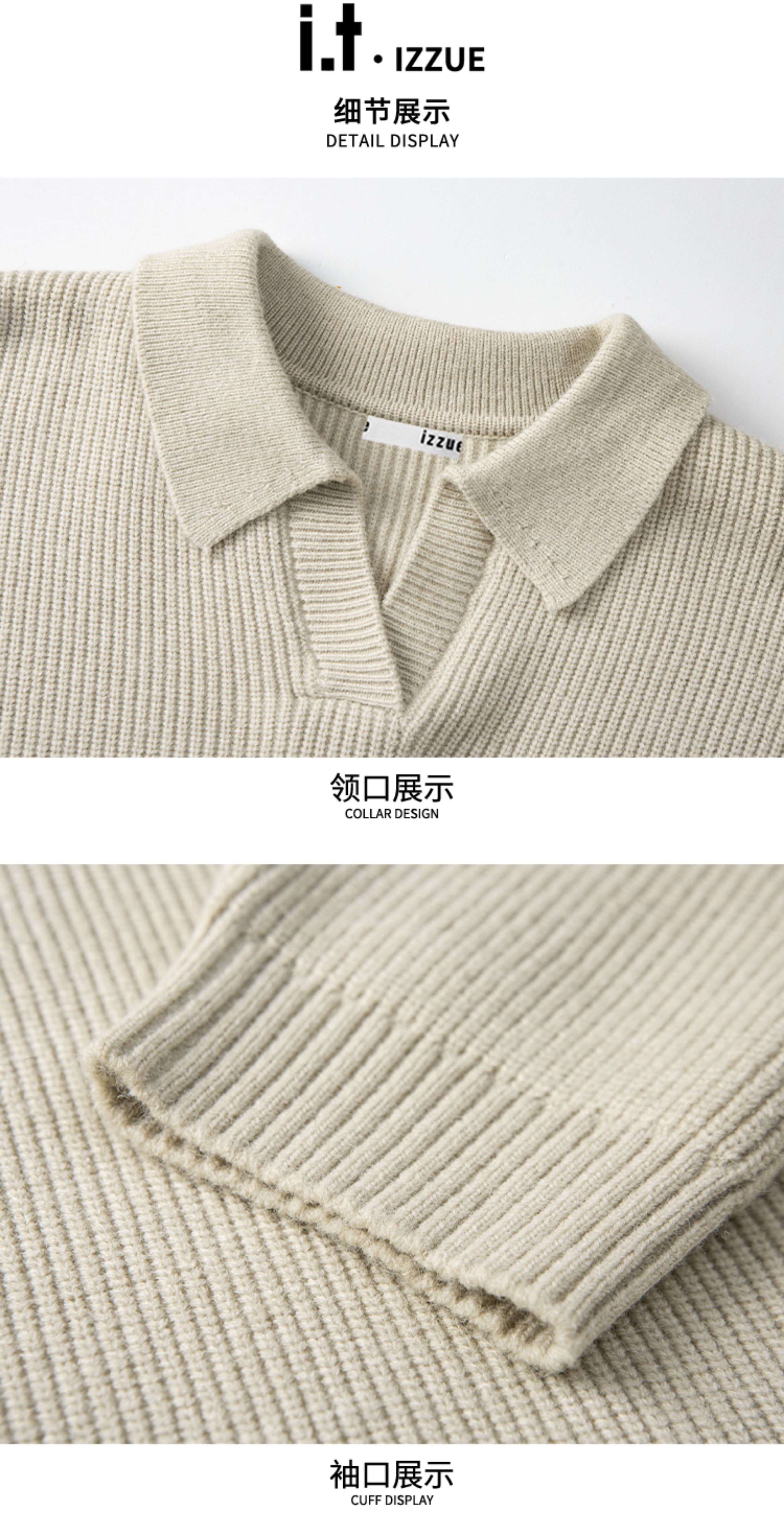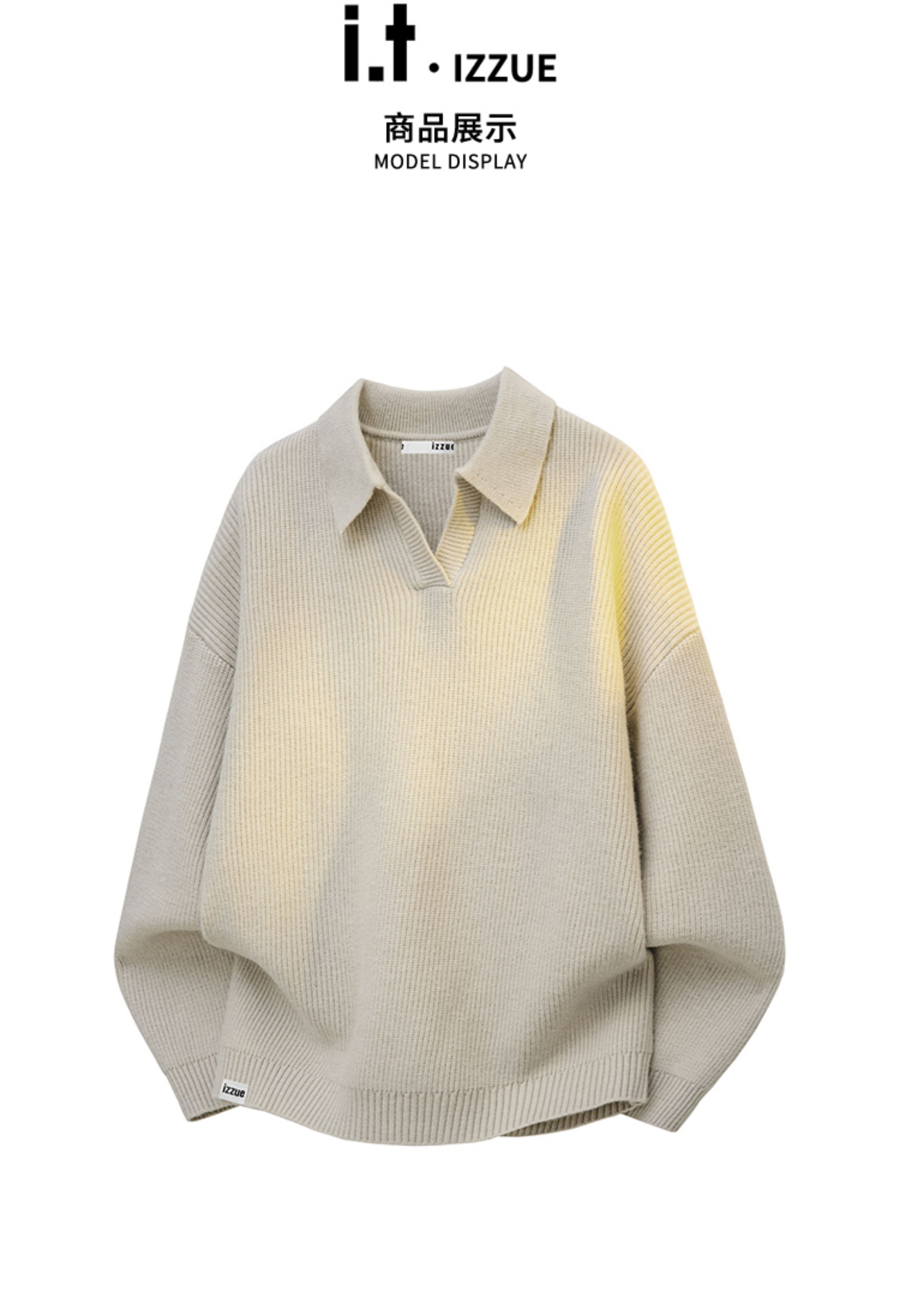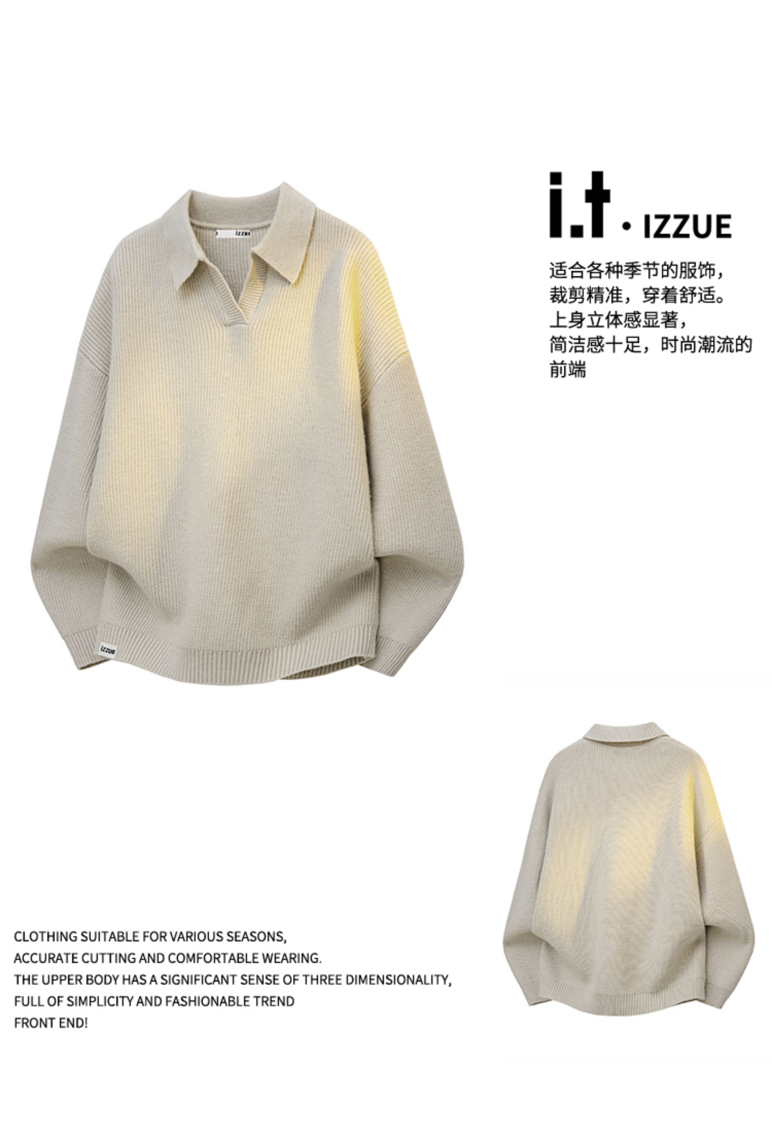Itizzue Official High-End Lapel Sweater for Men, New Autumn Loose Casual Polo Shirt, Long-Sleeved Men's Y