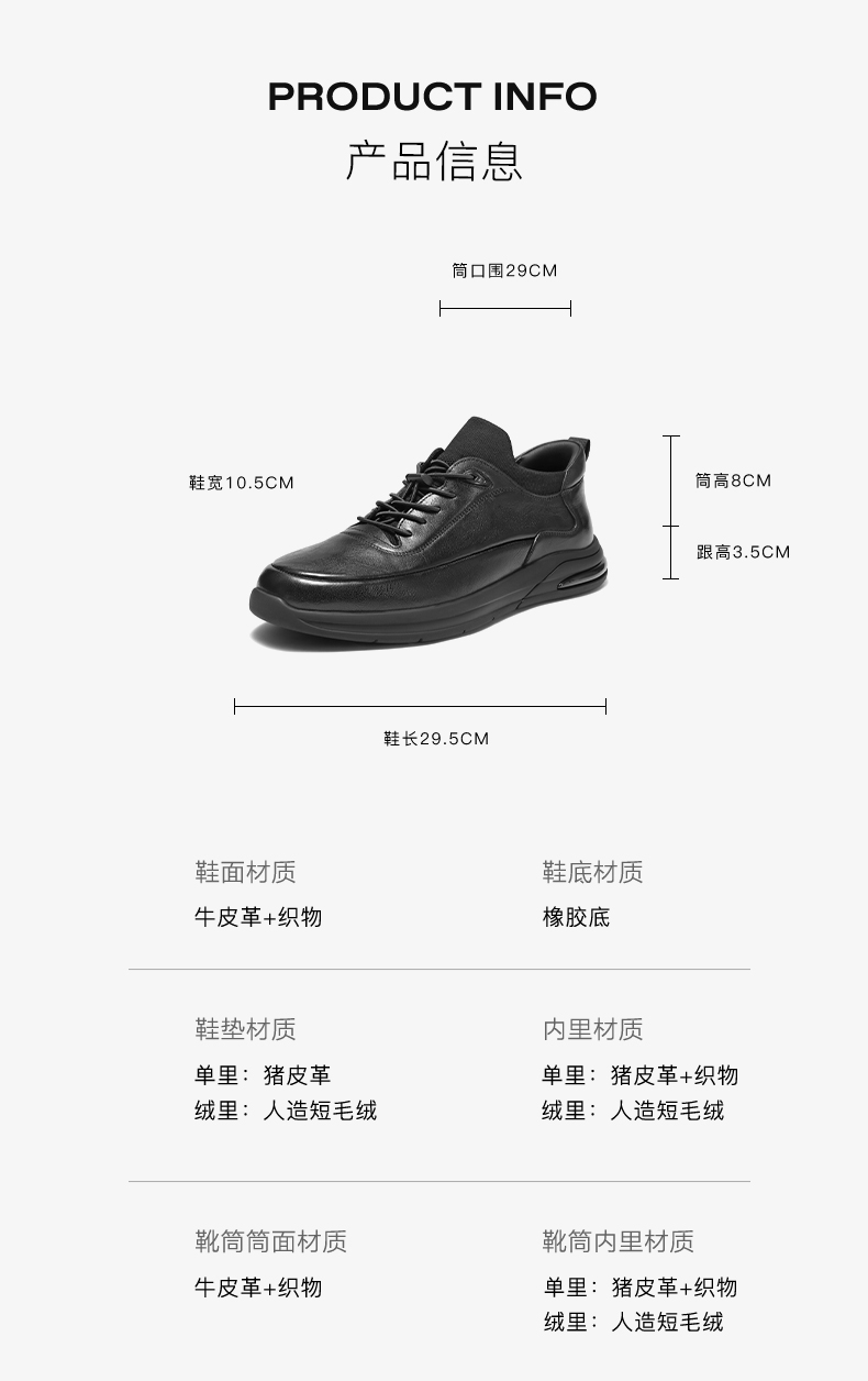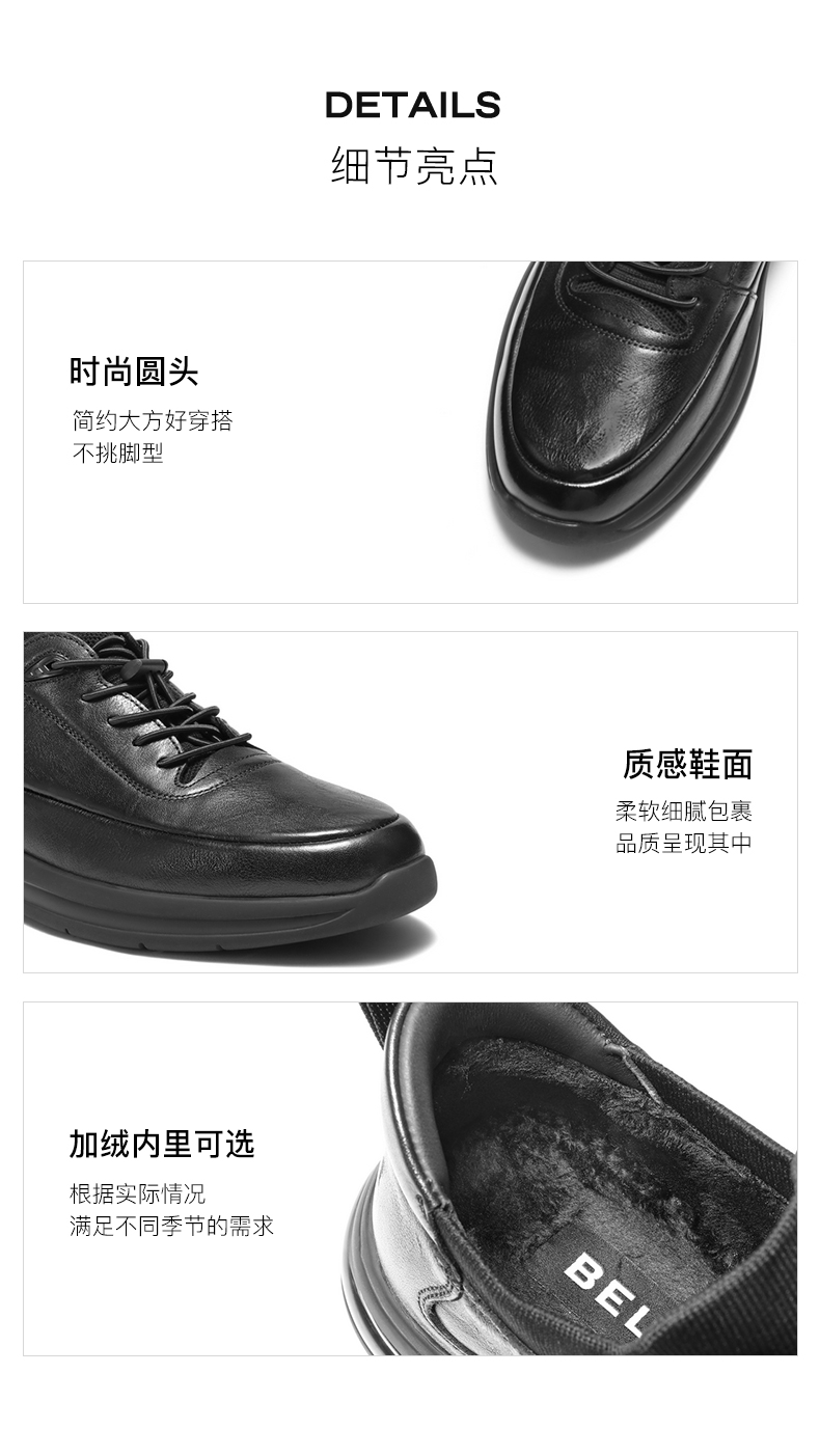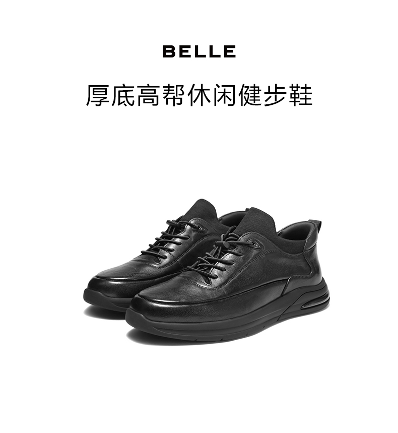 Belle Men's High-Top Casual Genuine Leather Shoes, Men's Winter 25 Mall Style Business Black Sneakers with Fleece Lining 8Vx01Dm5