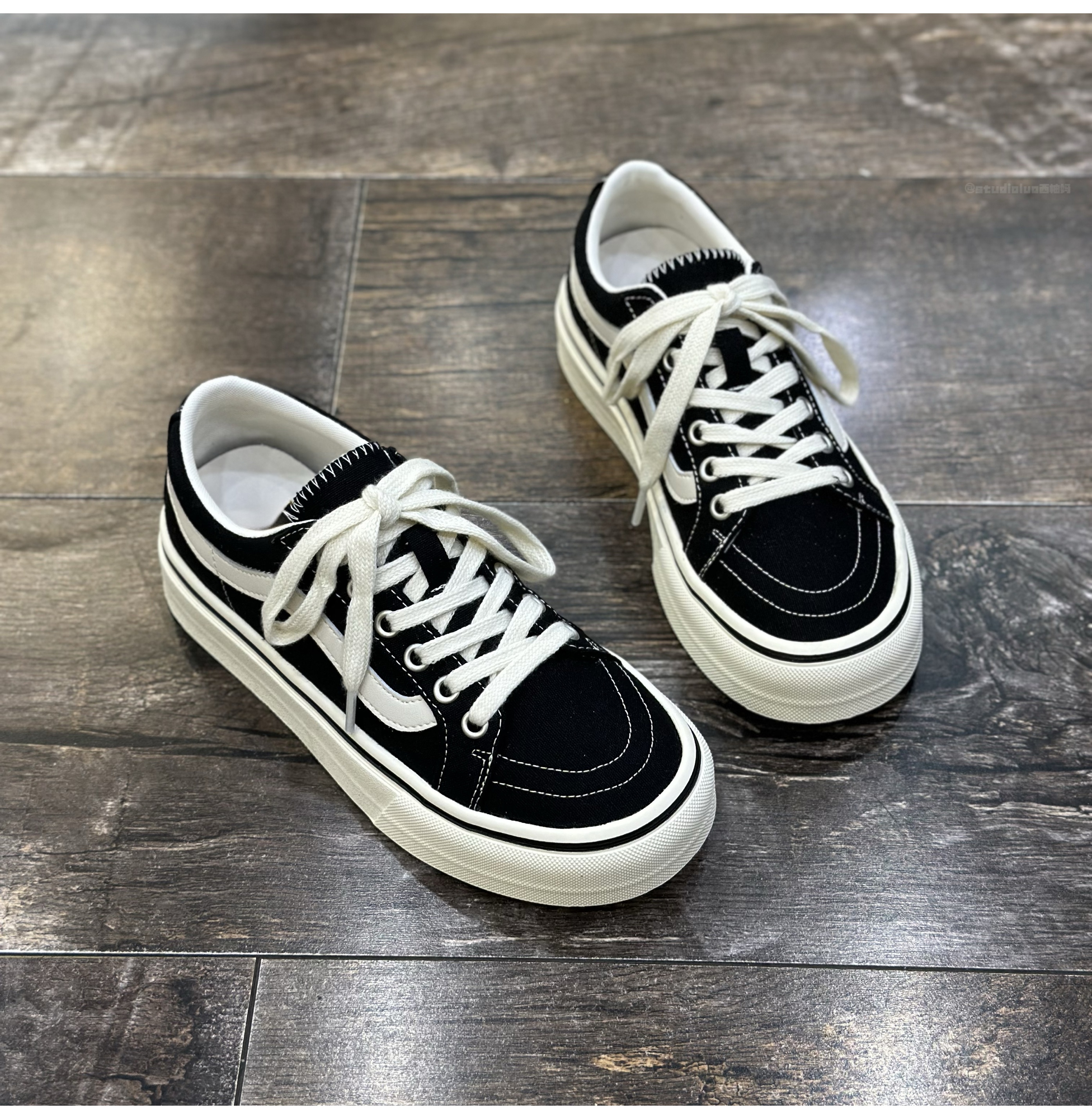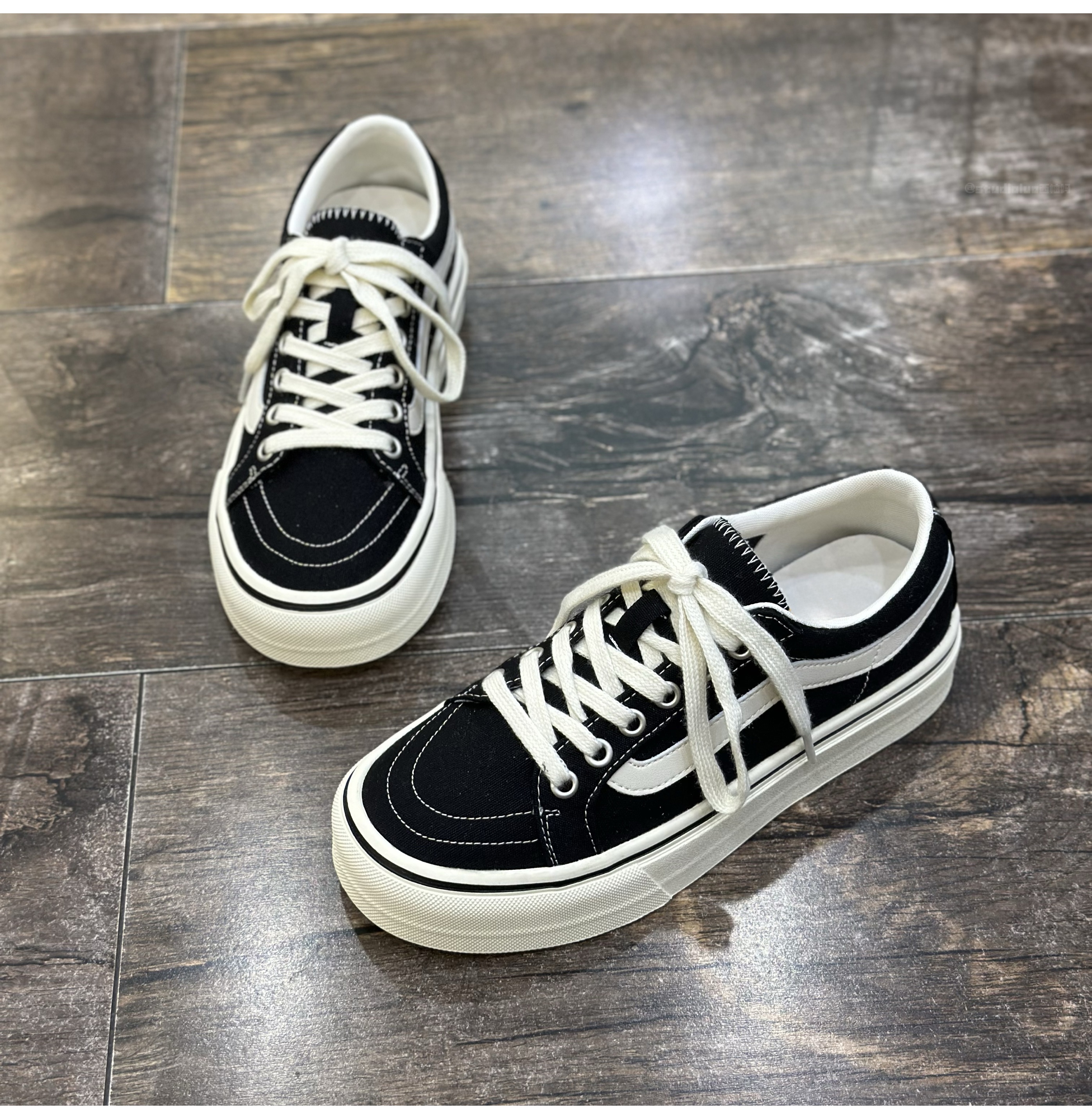 Hong Kong Thick-Soled Soft Casual Sports Sneakers for Women, 2025 Autumn New Versatile Lace-Up Canvas Shoes to Match Skirts