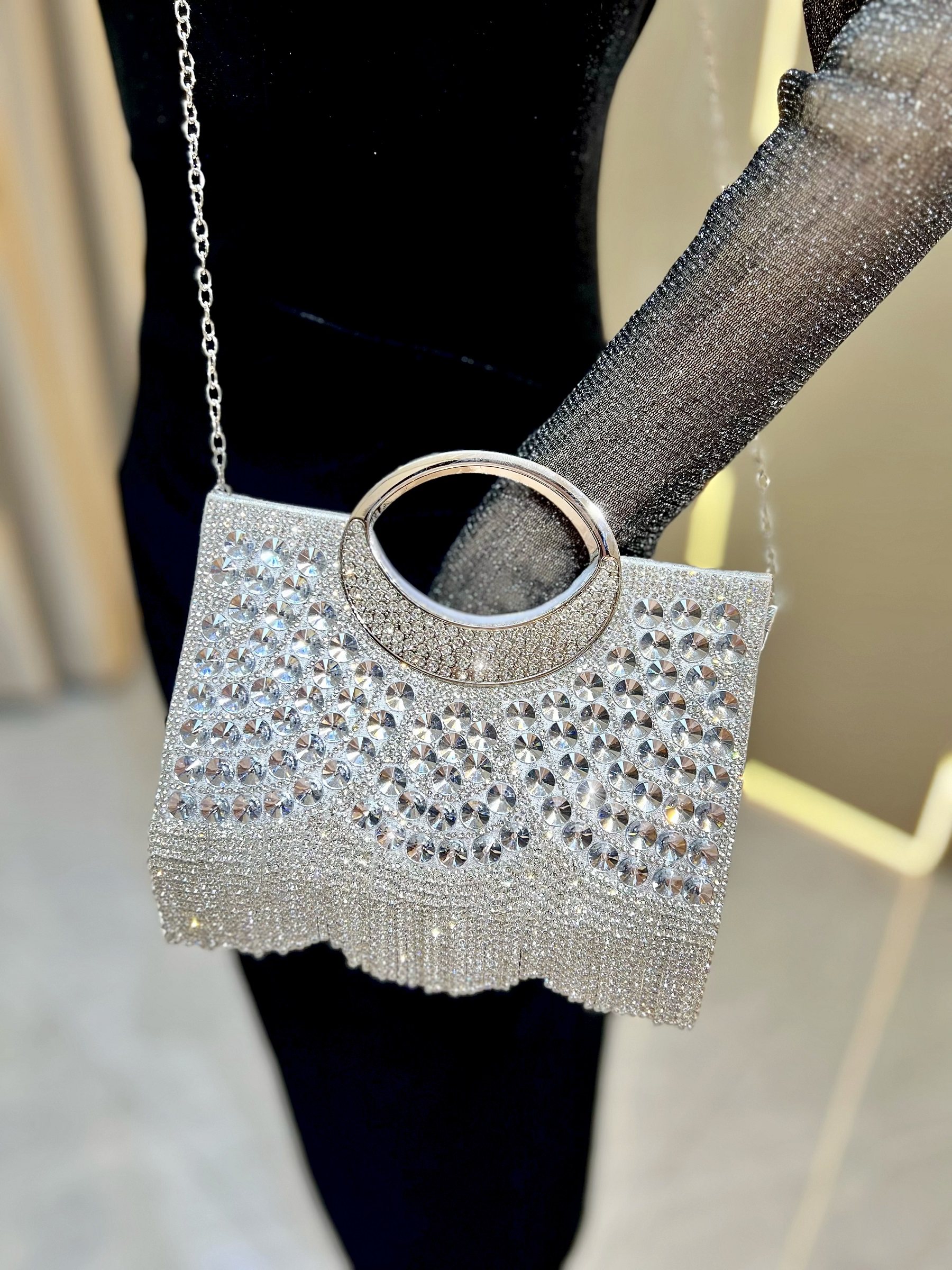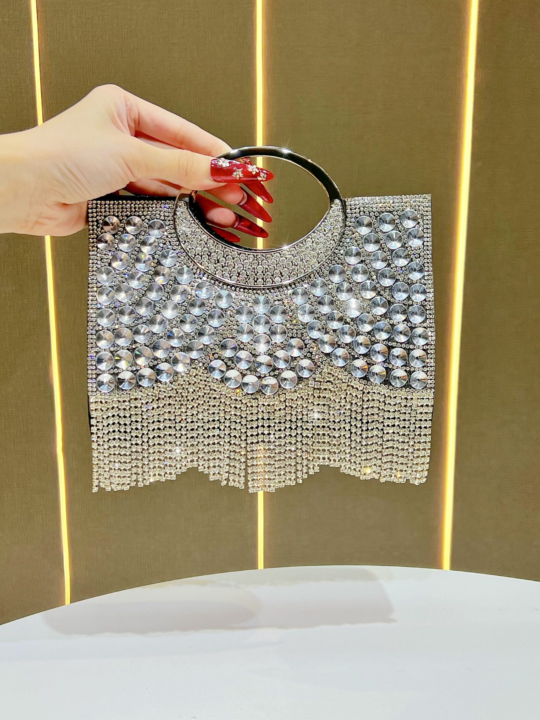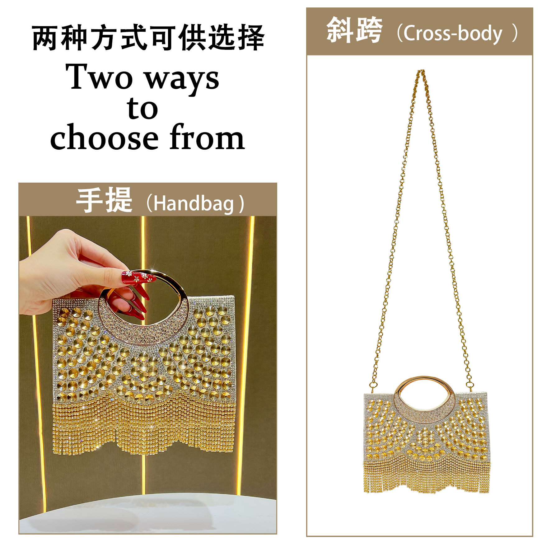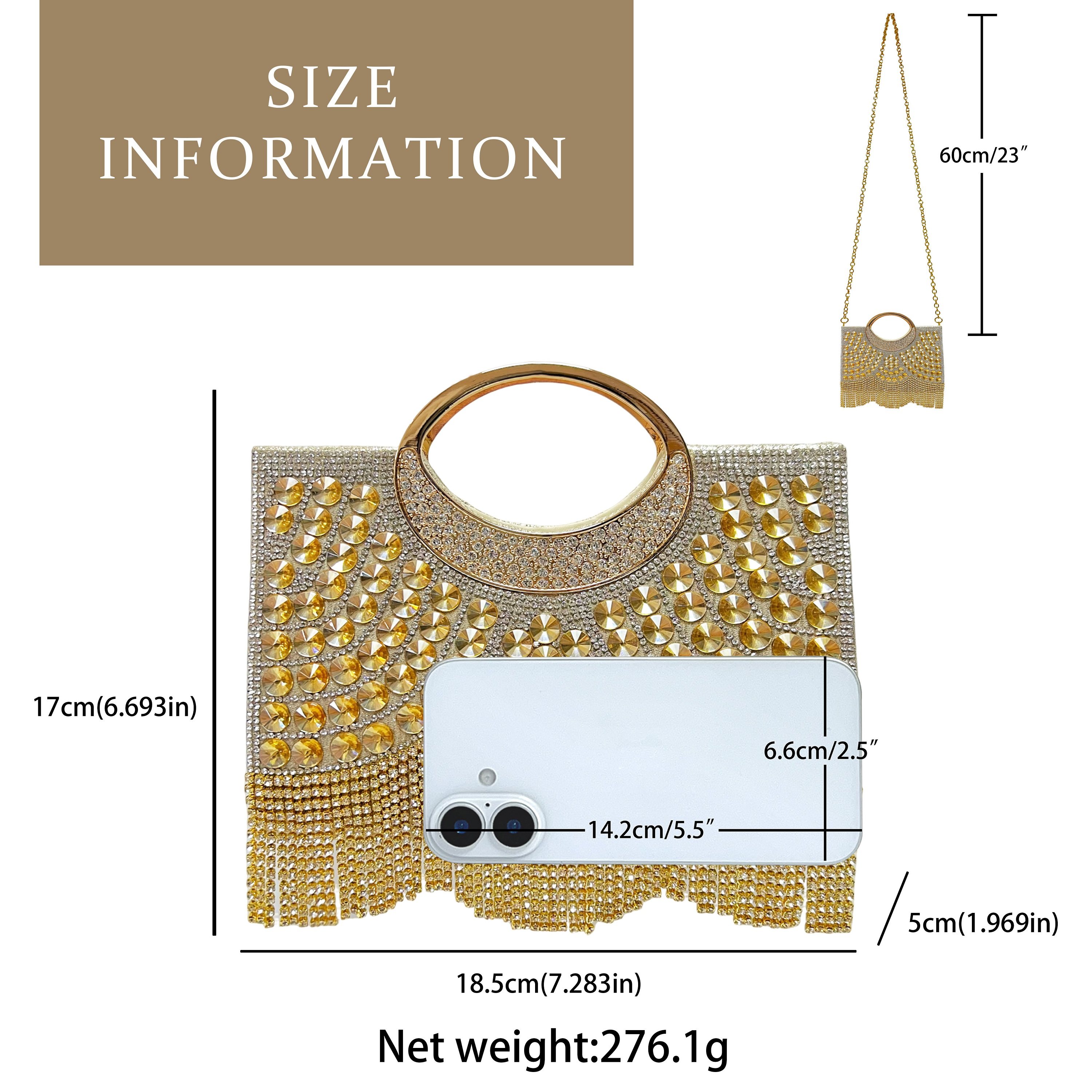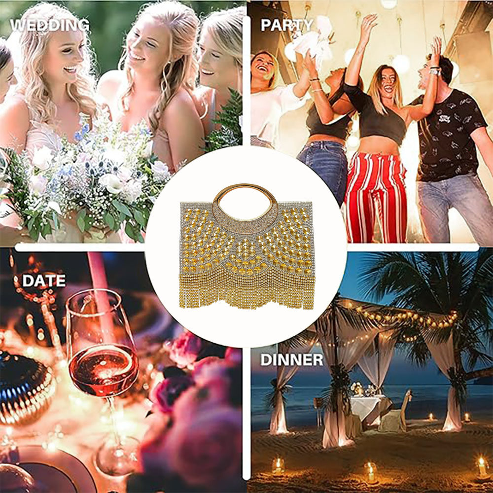 Missingyou Fashion Tassel Handbag Socialite Banquet Dress Bag Shiny Rhinestone Handbag Single Shoulder Crossbody Bag