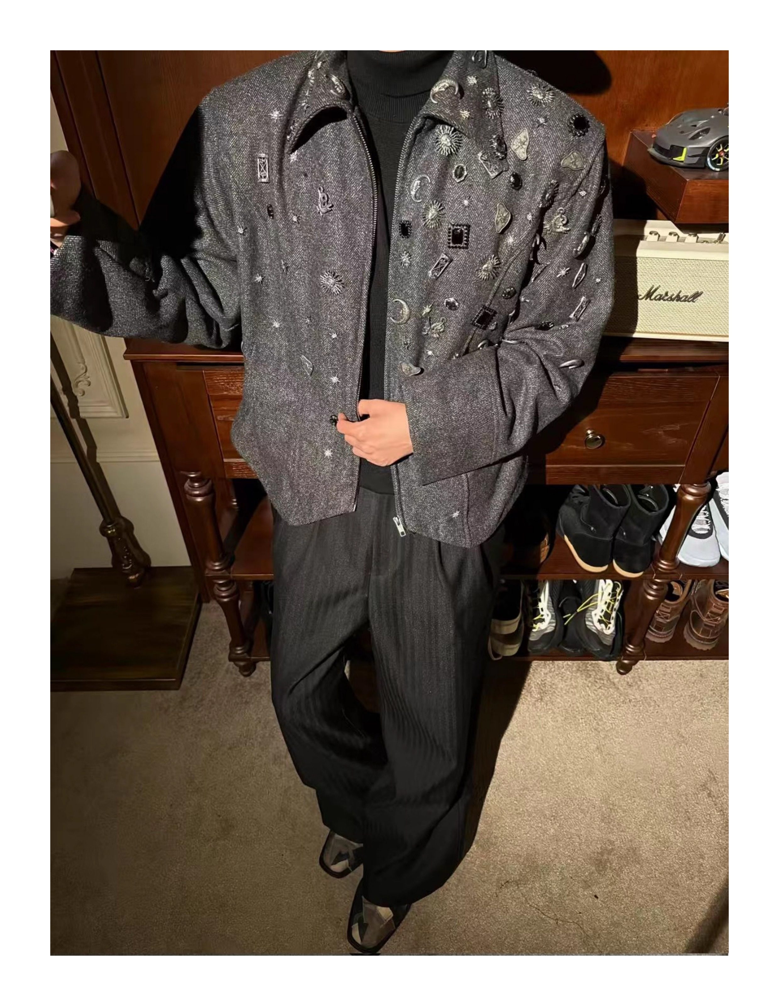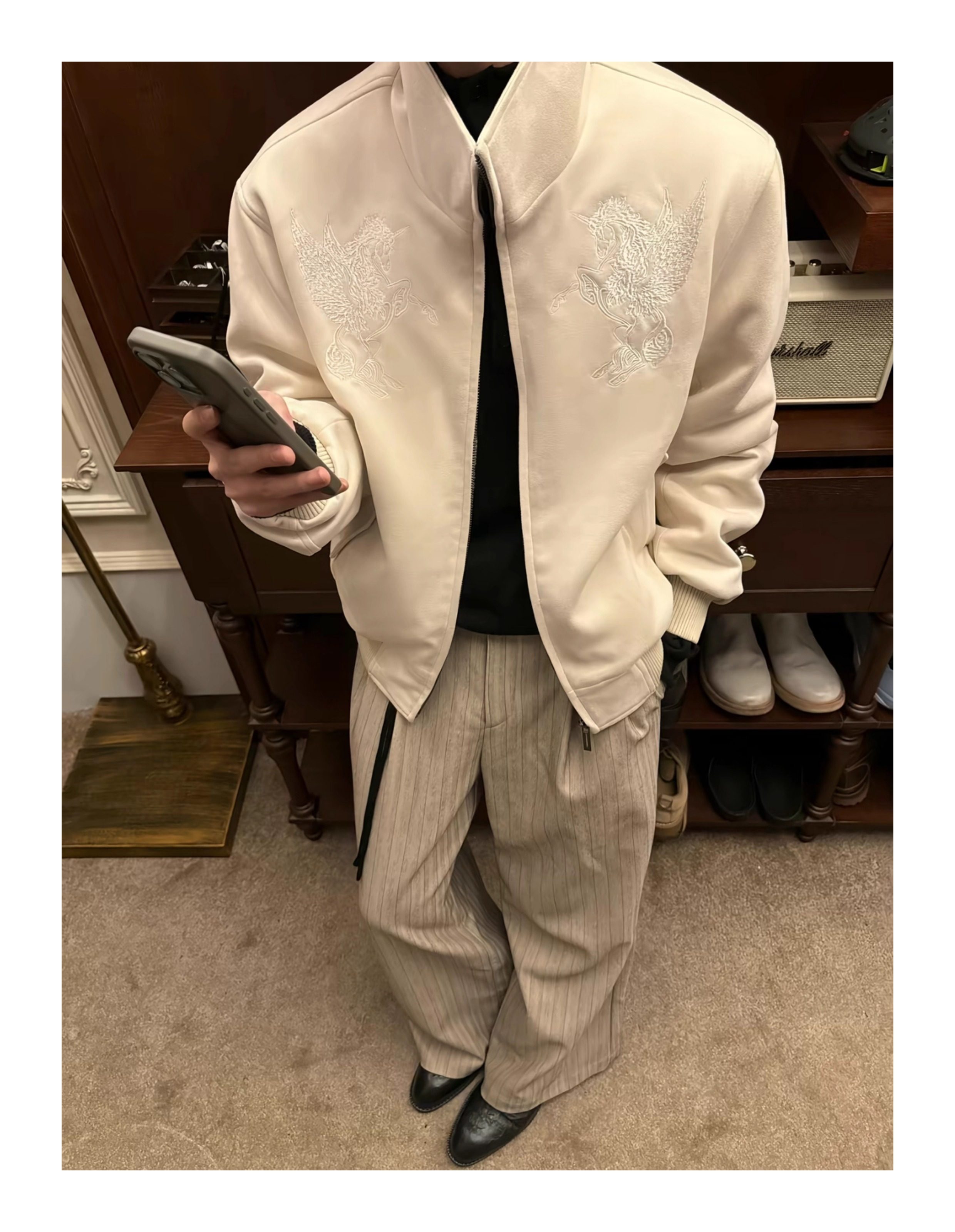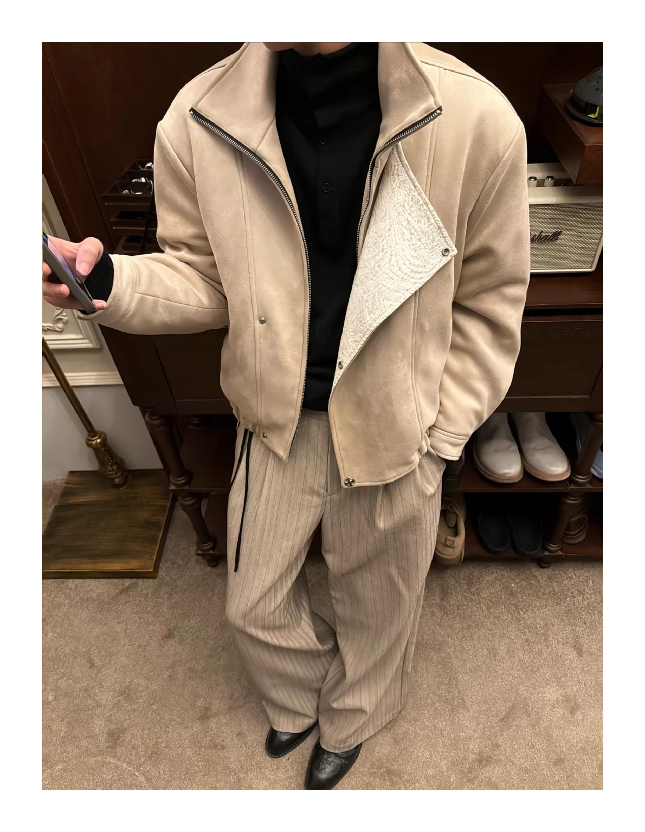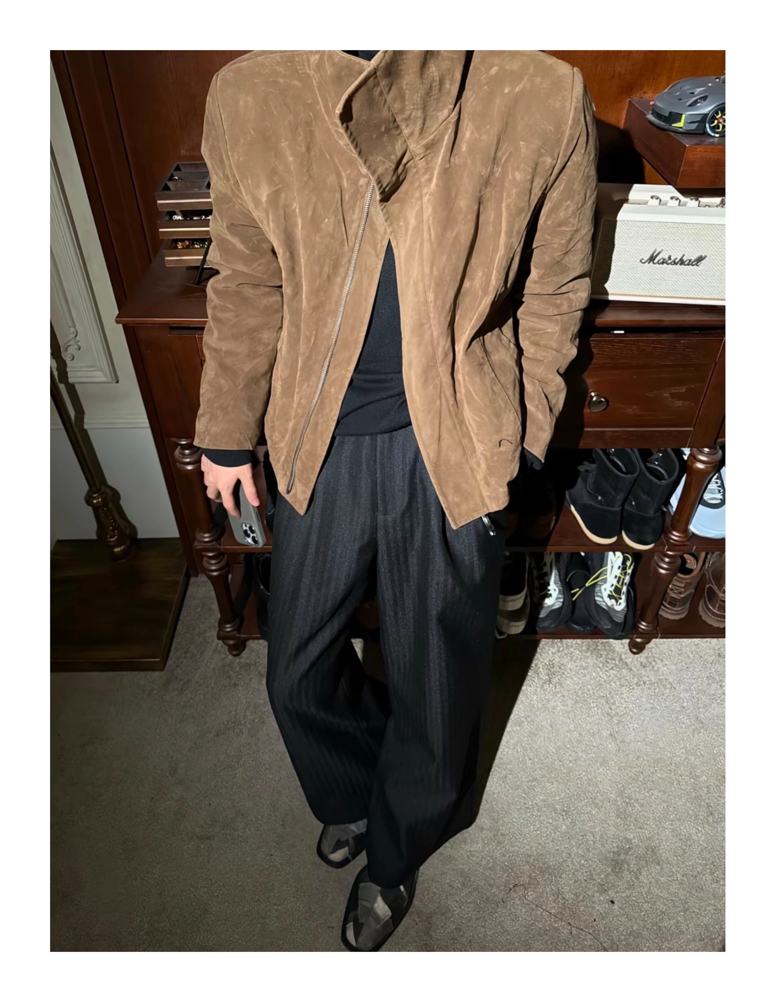 Mukhina Striped A-Line Wide-Leg Pleated Silhouette Drape Tr Blend Casual Commuter Trousers Unisex