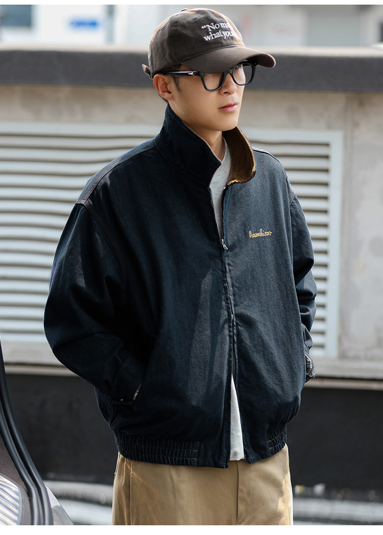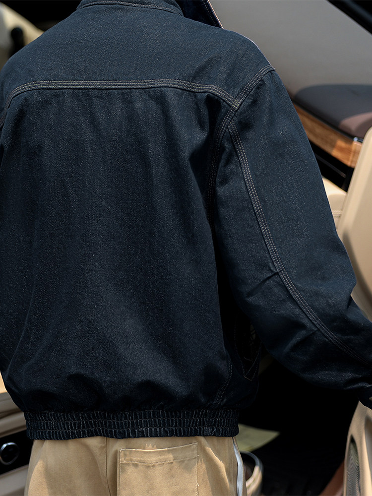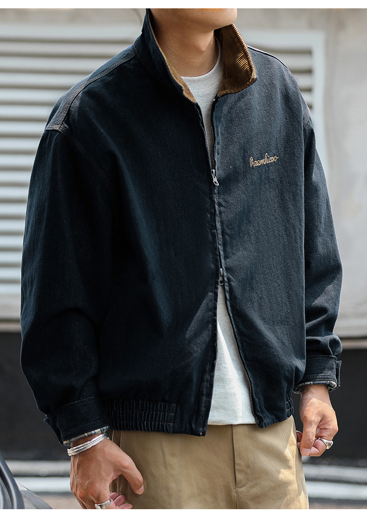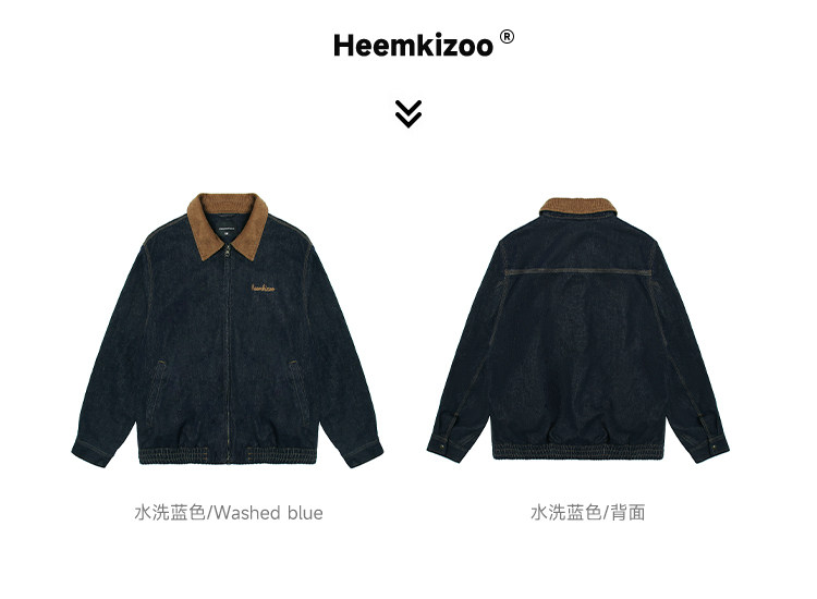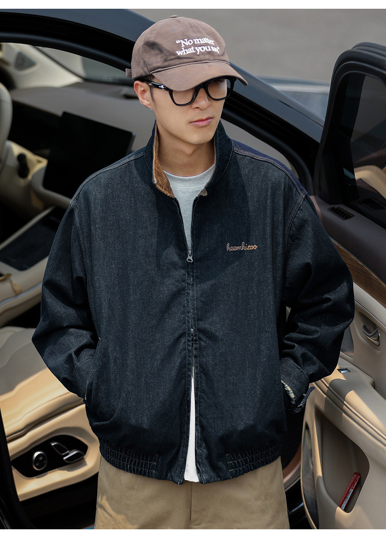 Heyma Qizuo American Retro Autumn Men's Denim Loose Casual Jacket Embroidered Lapel Workwear Jacket Trendy Brand