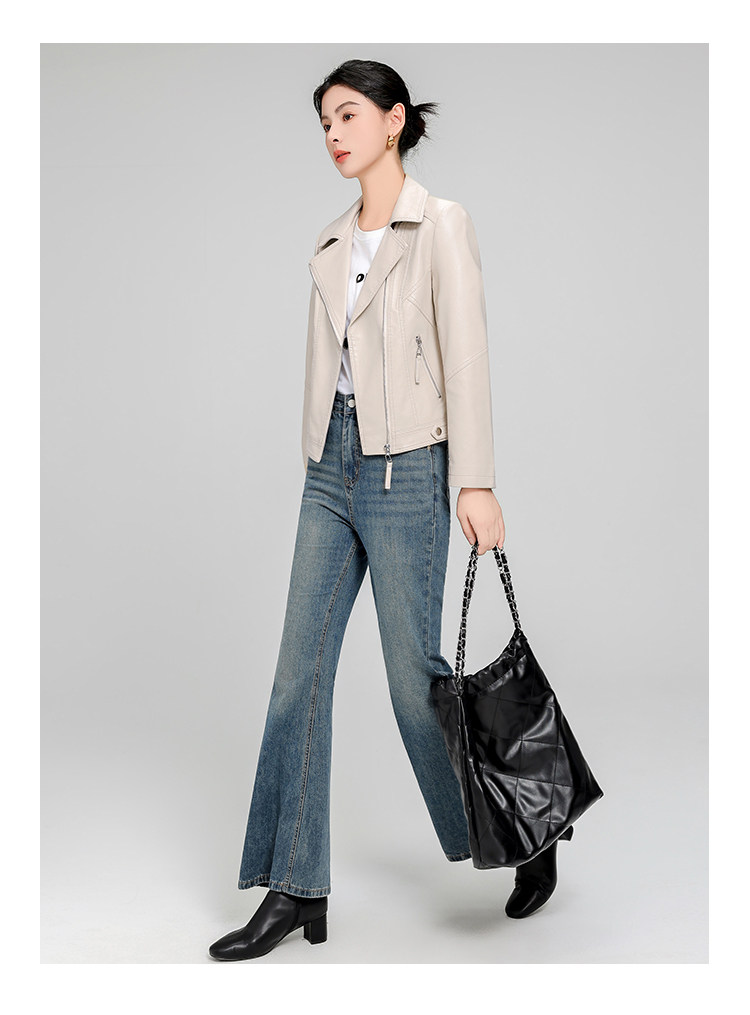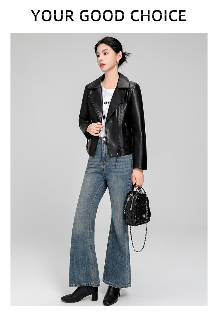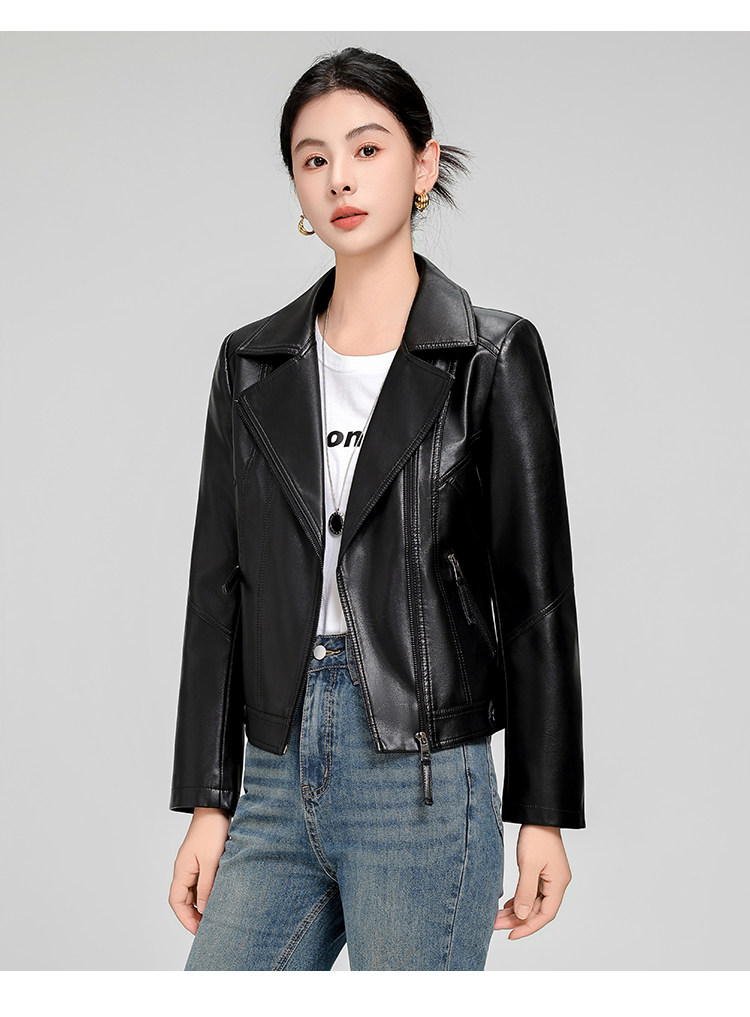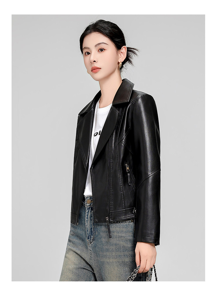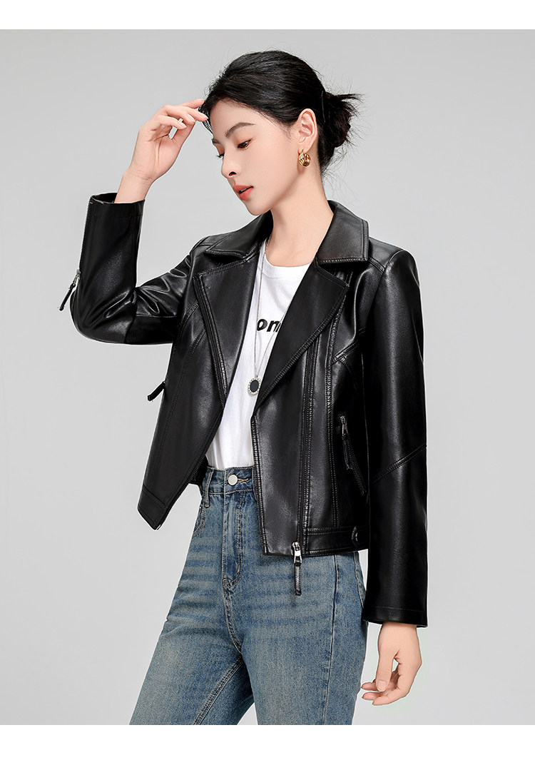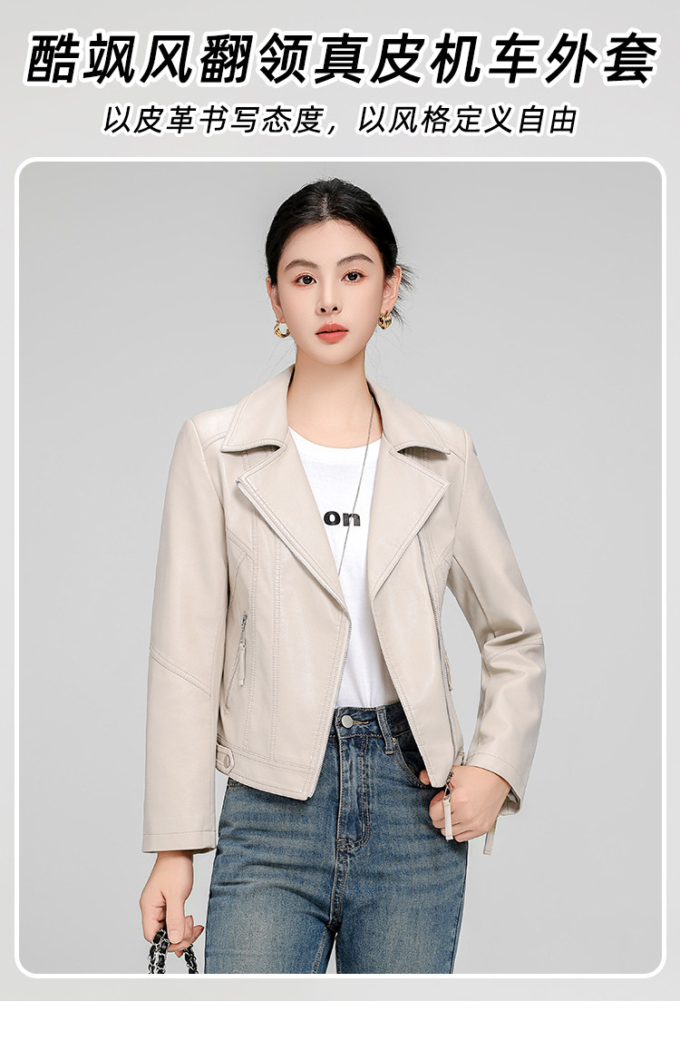 Haining Sheepskin Slim-Fit Short Leather Jacket for Women, Spring and Autumn Korean Style, Slimming and Elegant Genuine Leather Coat, Popular Style