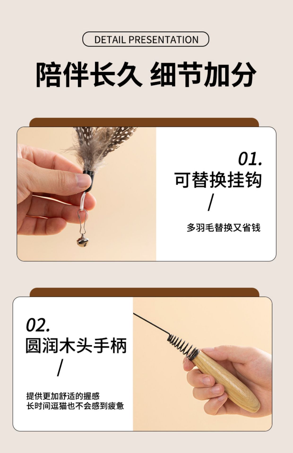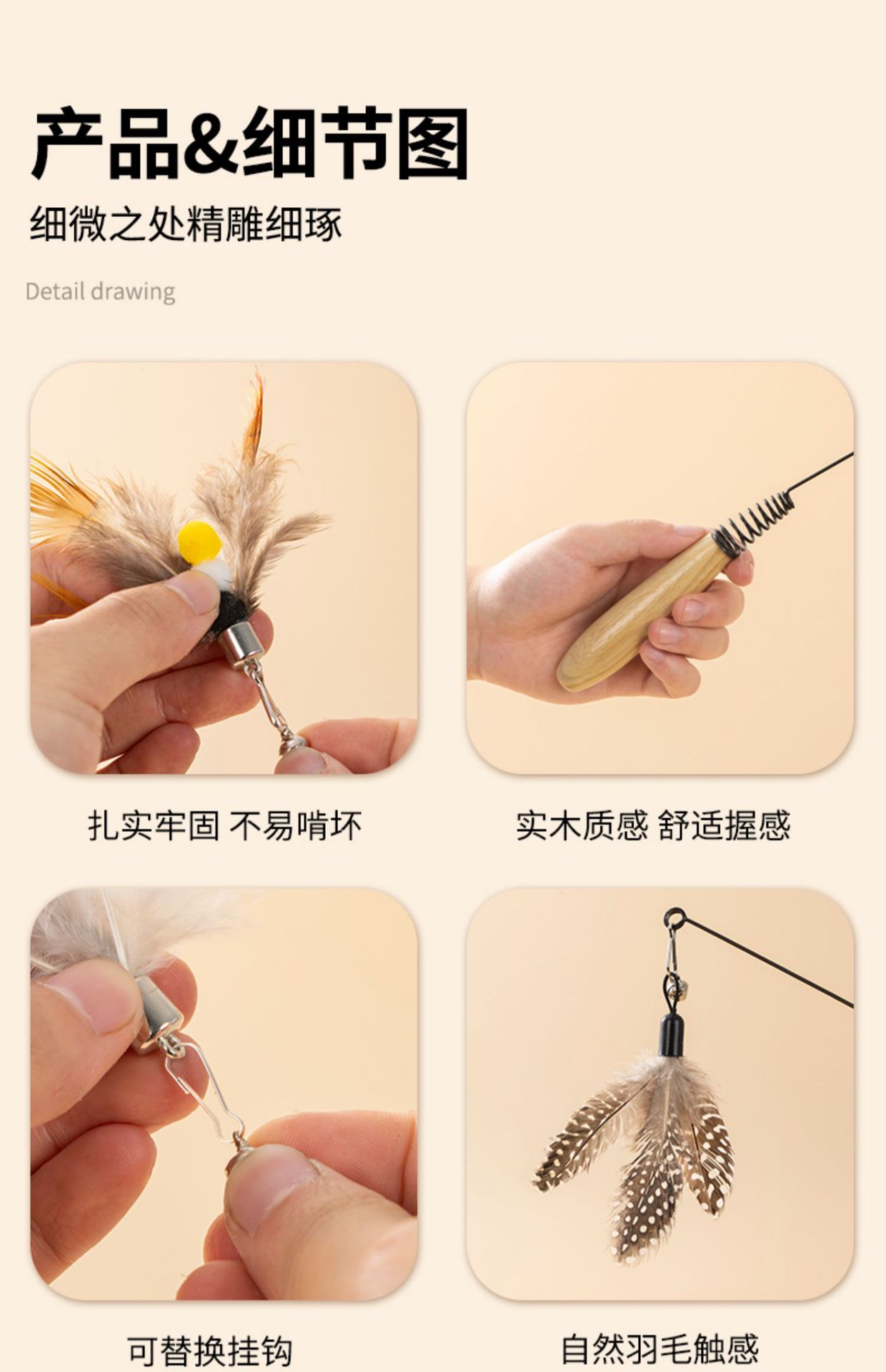 CFA Class Cat Fun Stick Small Flying Insect Feather Replacement Head Scratch-resistant Kitten Supplies Self-relief Cat Toys