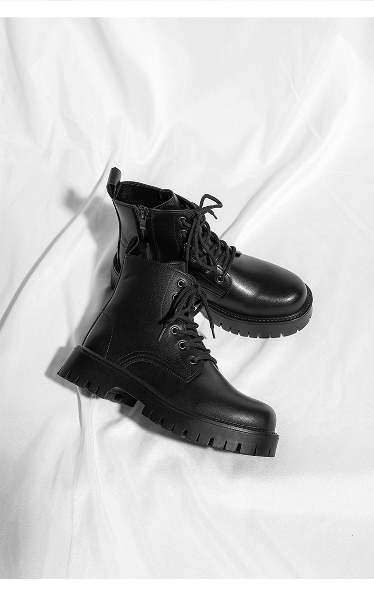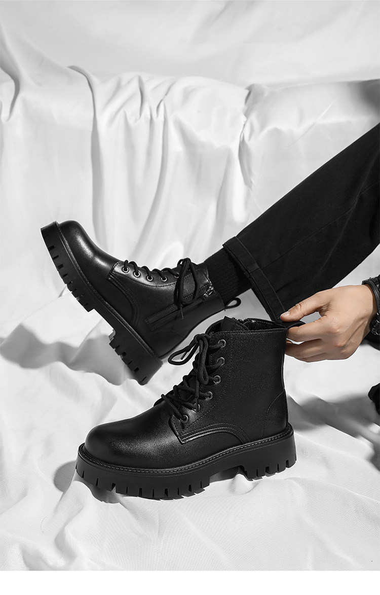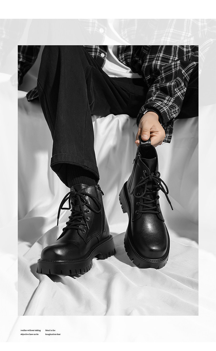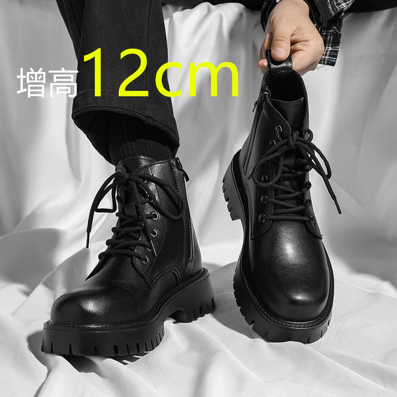 Martin Boots 2025 New Winter British Style High-Top Genuine Leather Black Workwear Motorcycle Boots for Men with 12cm Internal Height Increase
