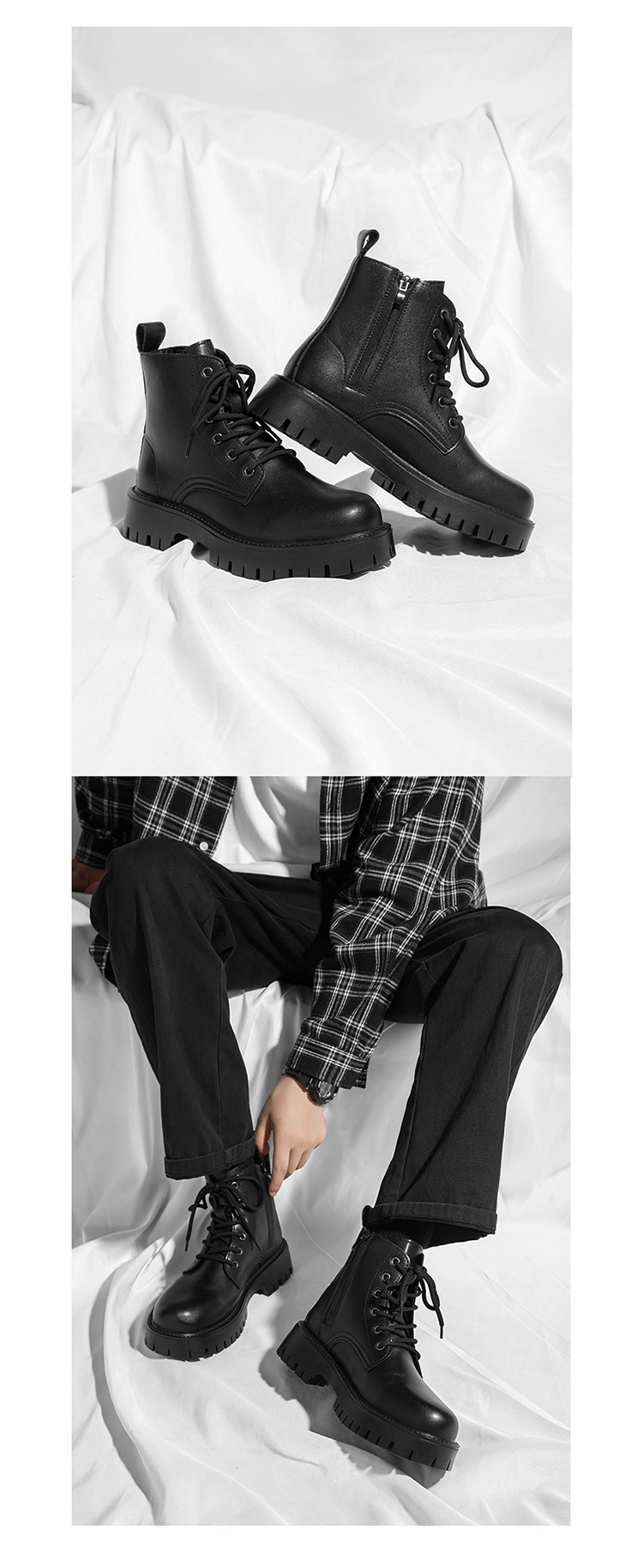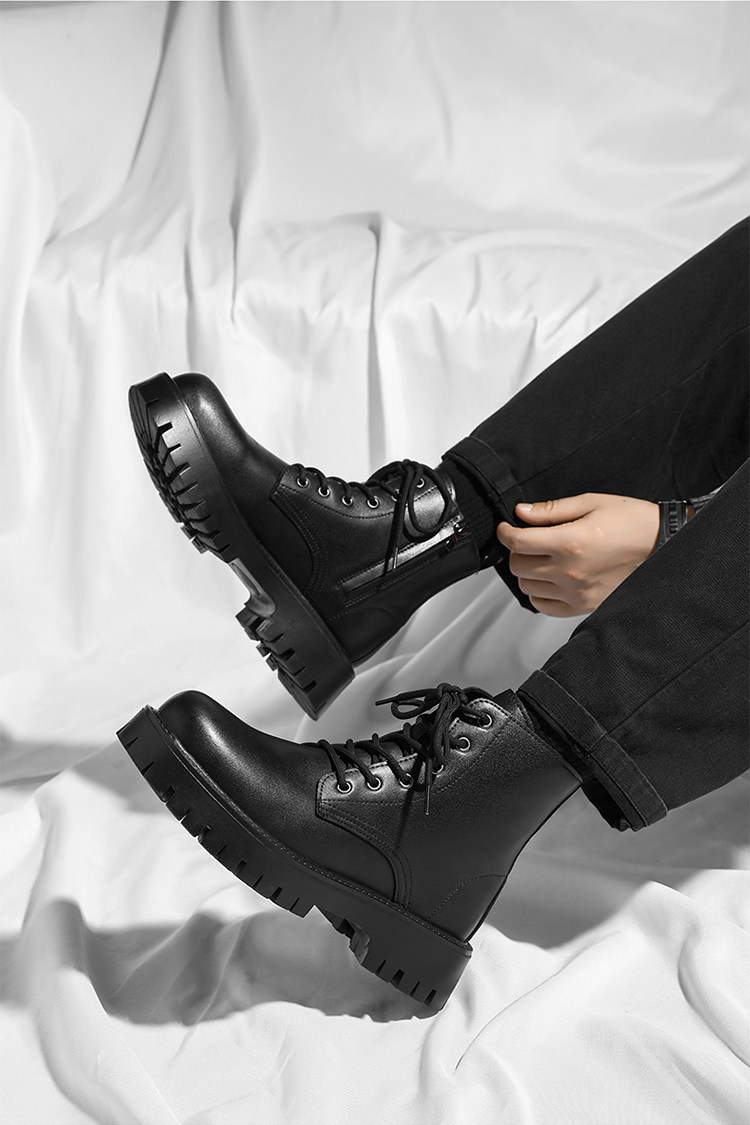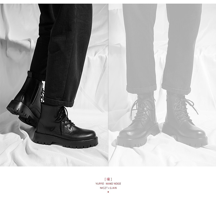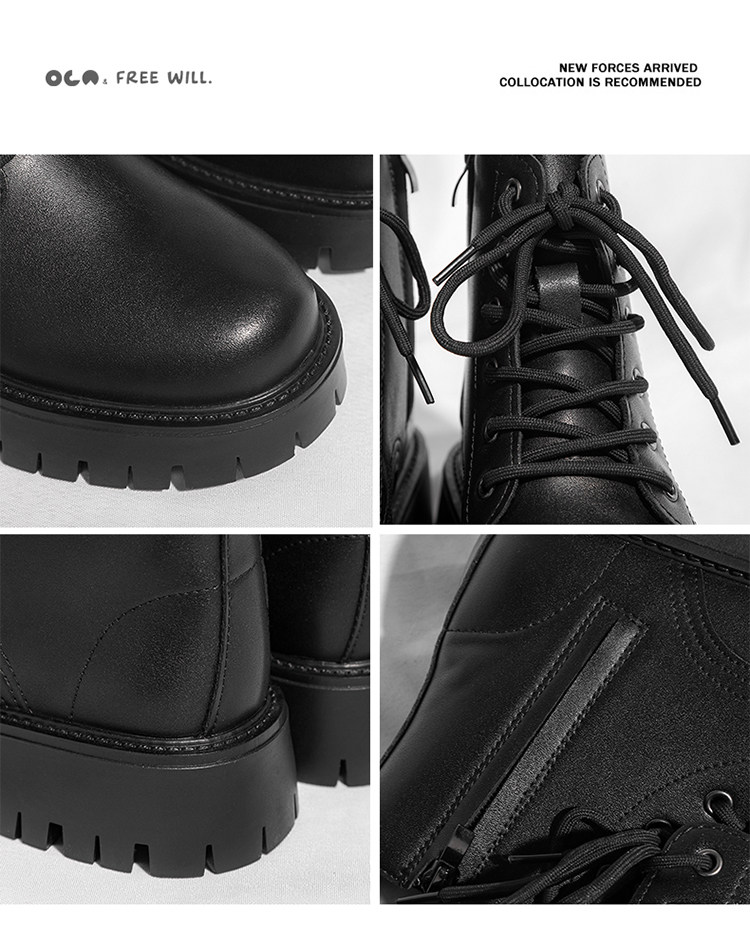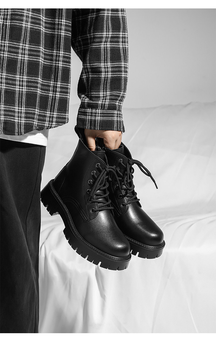 Martin Boots 2025 New Winter British Style High-Top Genuine Leather Black Workwear Motorcycle Boots for Men with 12cm Internal Height Increase