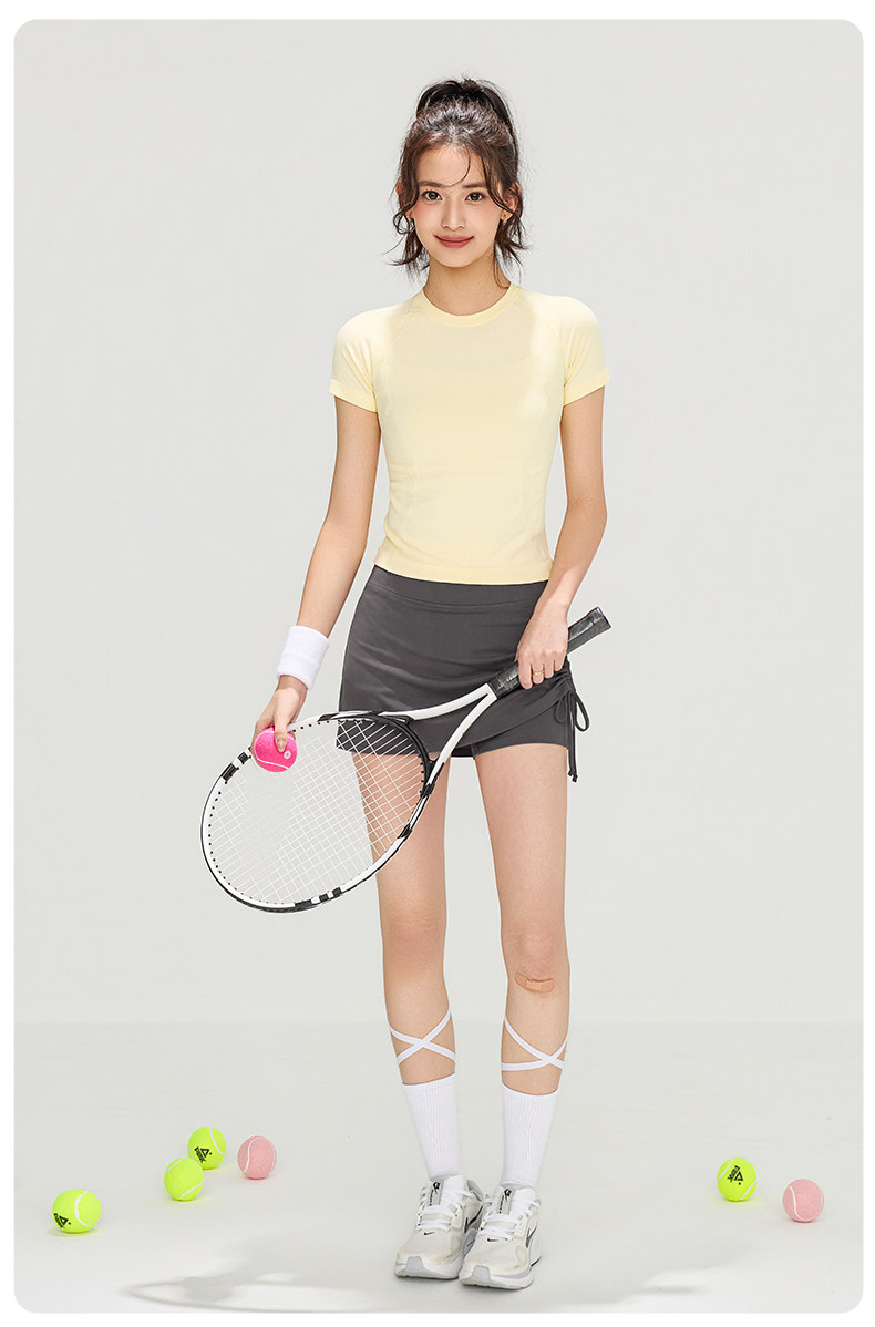 Aziztas Fake Two-Piece Sports Shorts for Women, High-Waisted, Tummy Control, Butt-Lifting Yoga Pants, Running Training Three-Quarter Fitness Pants