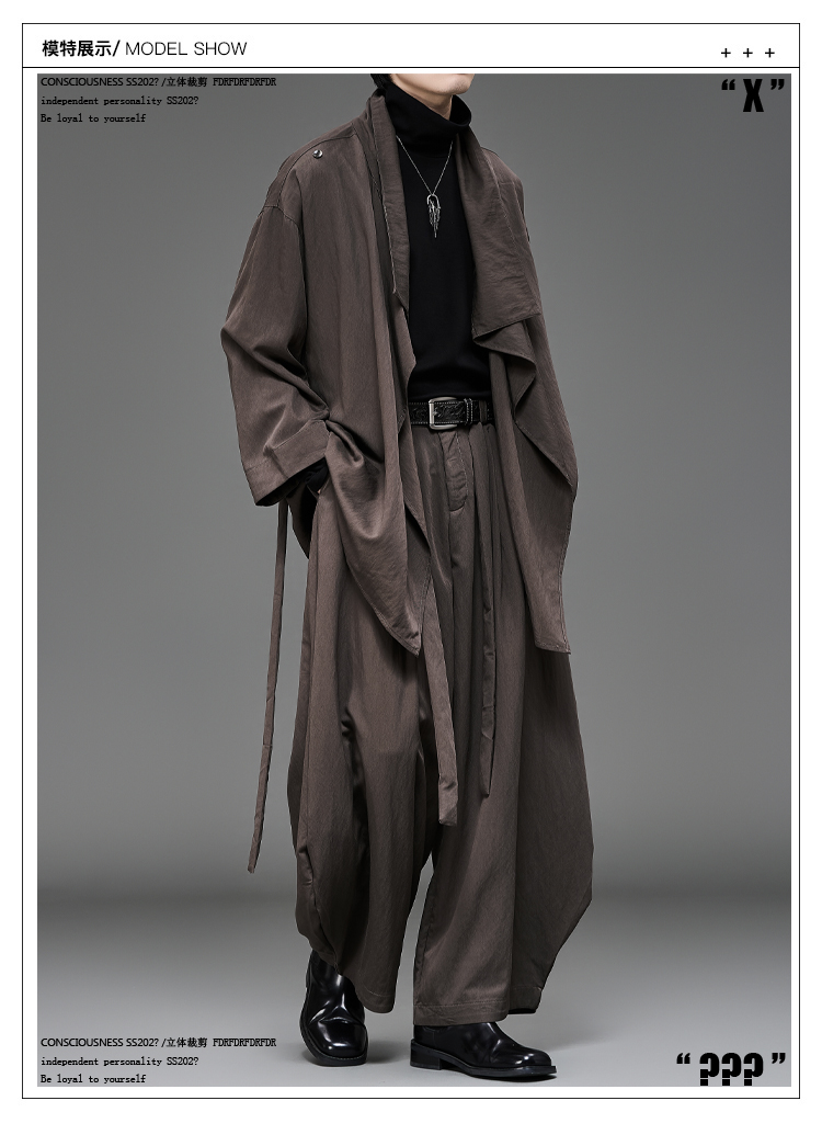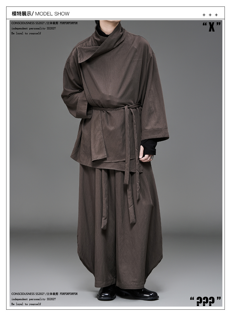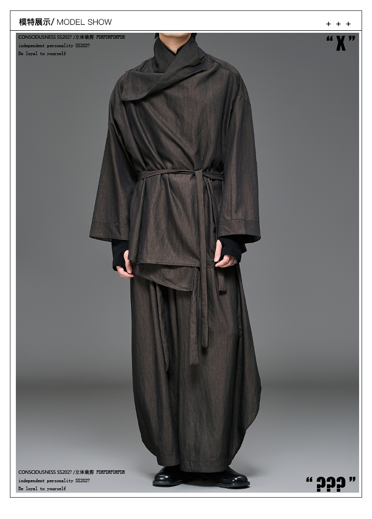 Rfdrfd New Chinese-Style Art Student Robe Jacket for Men and Women, Japanese Retro Yohji Yamamoto Style Black Cardigan Set