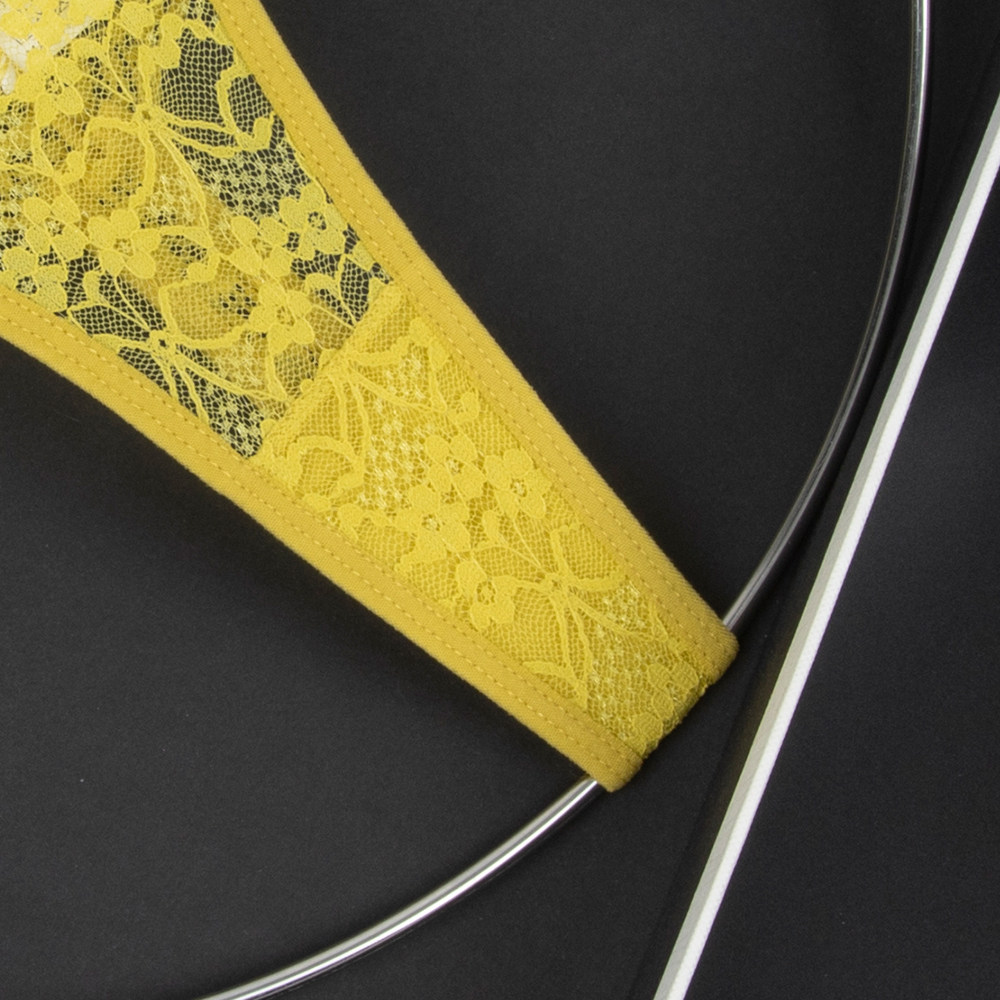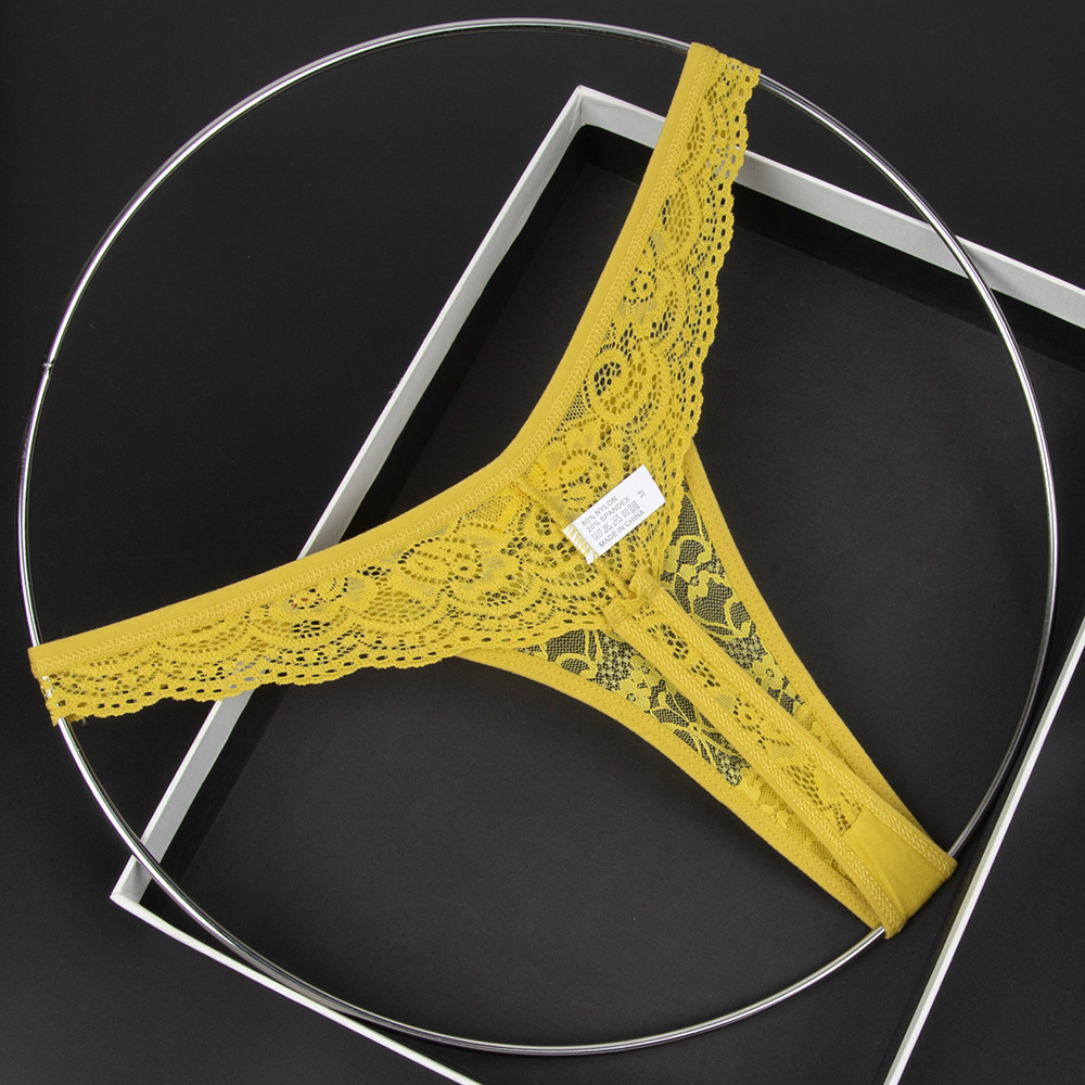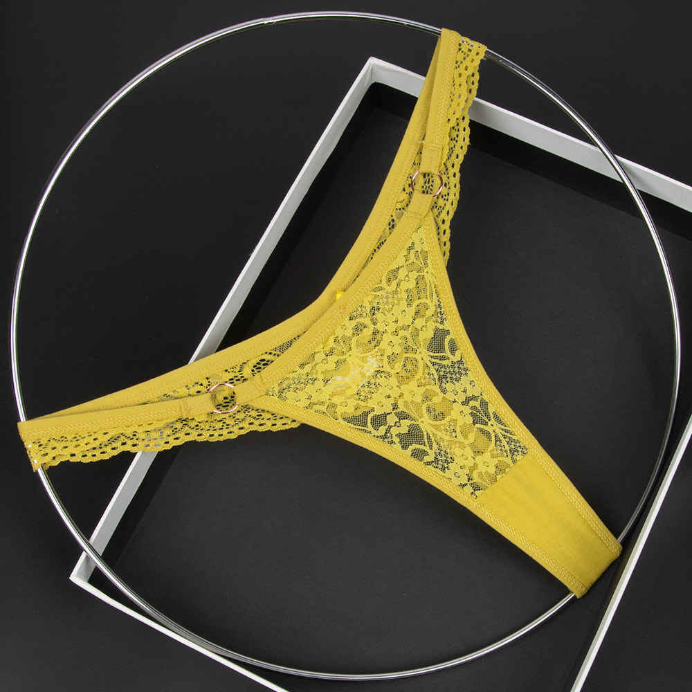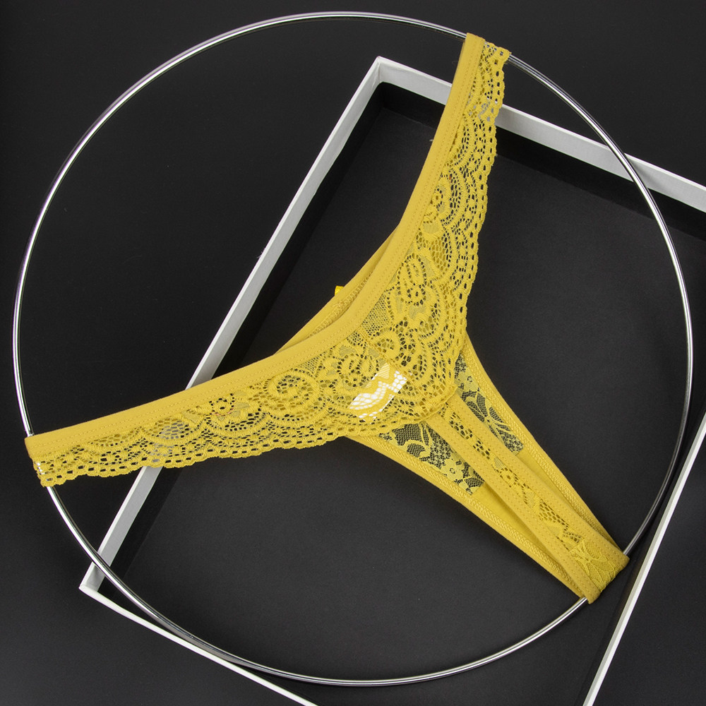 Olive Yellow Women's Low-Waist Underwear Lace See-Through Bow Decorated Thong