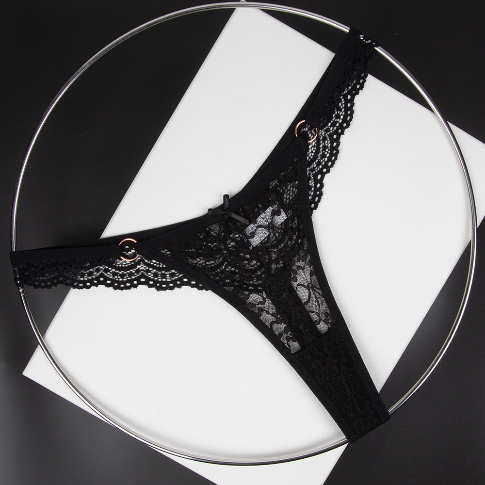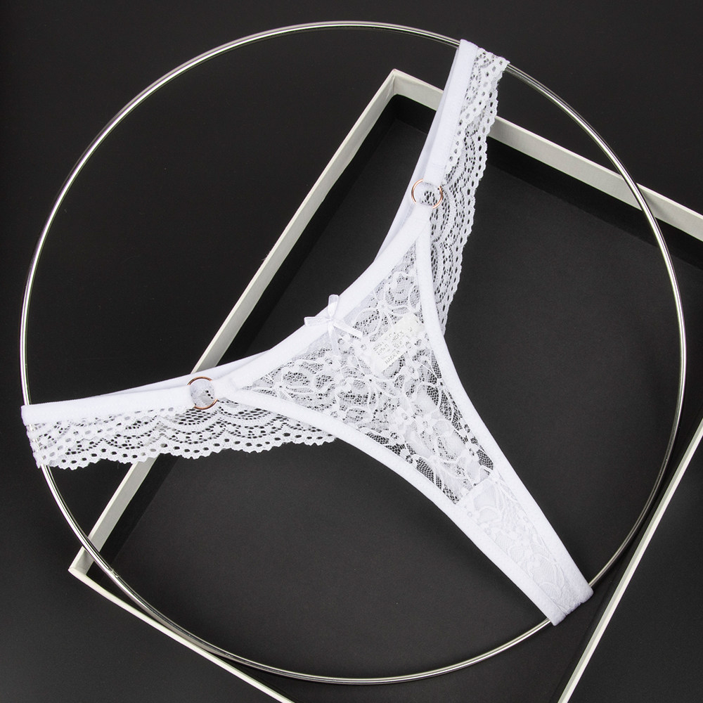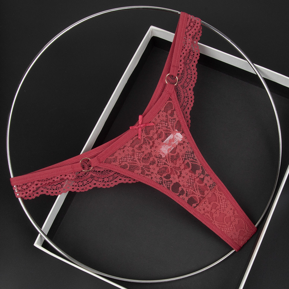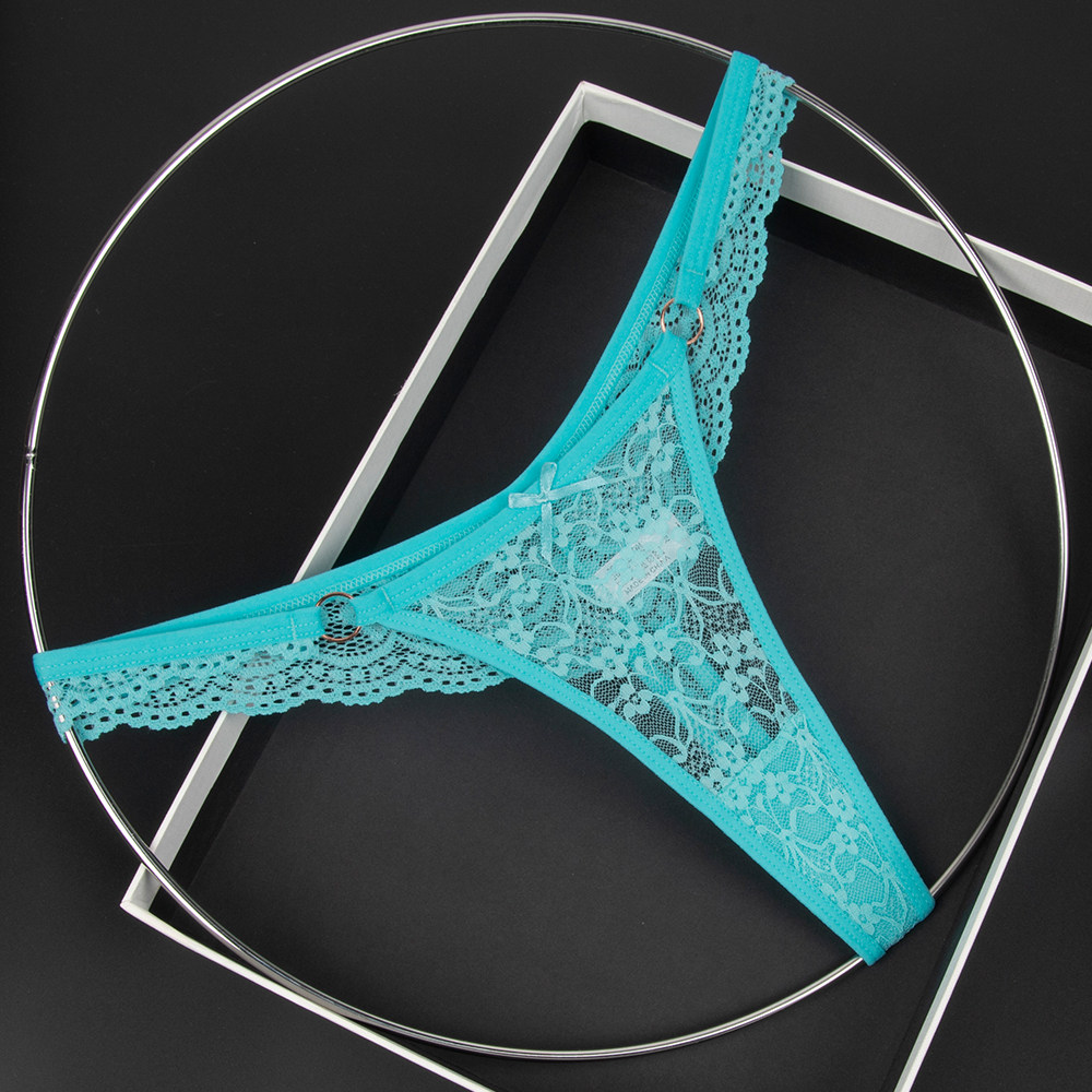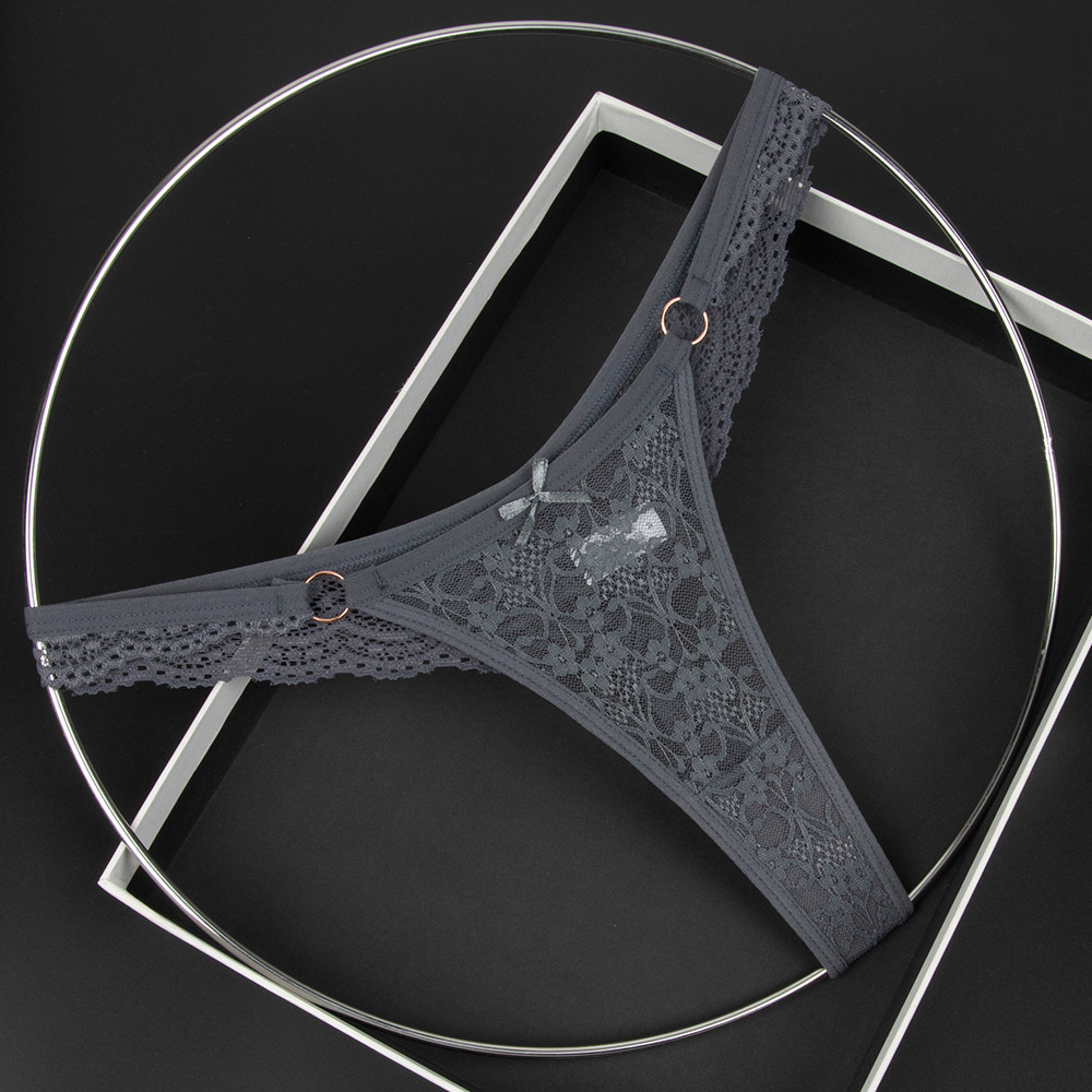 Olive Yellow Women's Low-Waist Underwear Lace See-Through Bow Decorated Thong