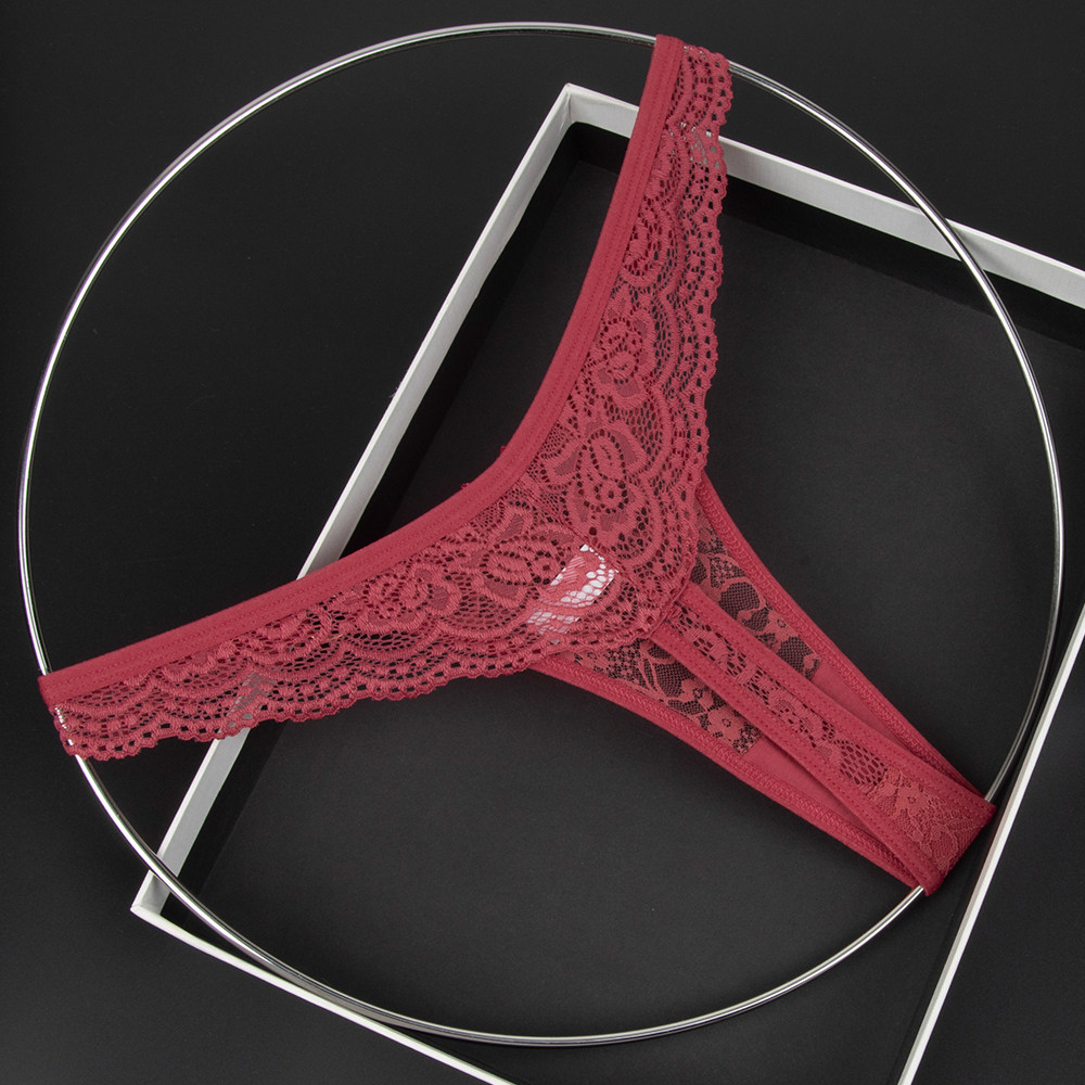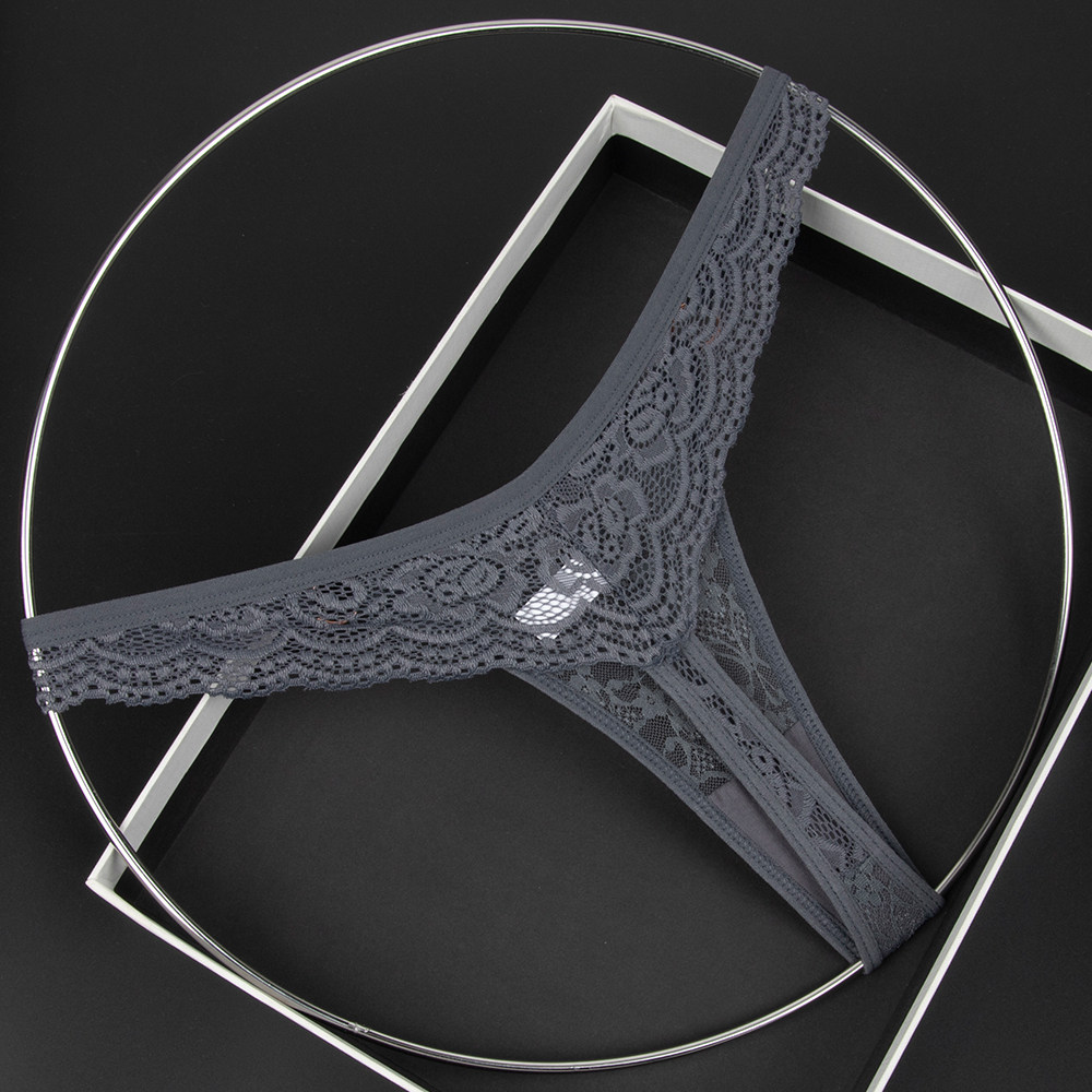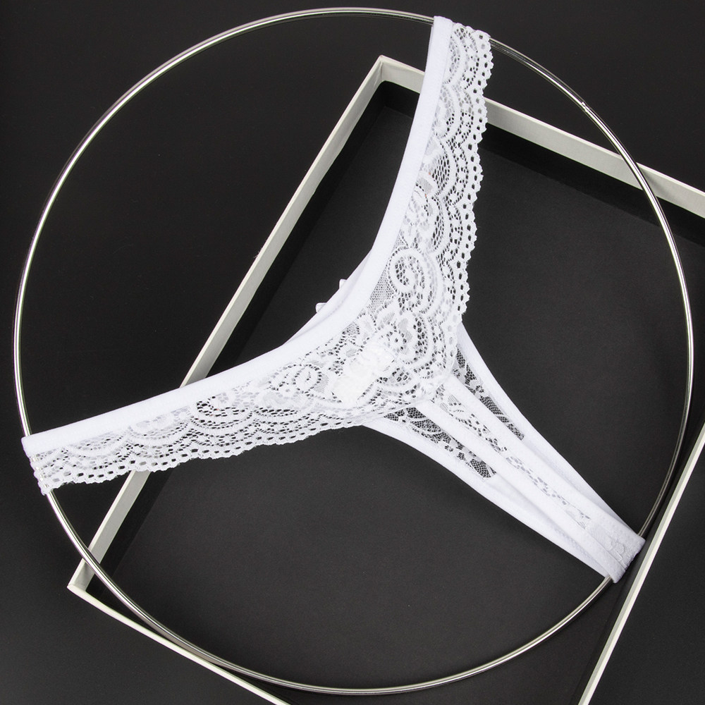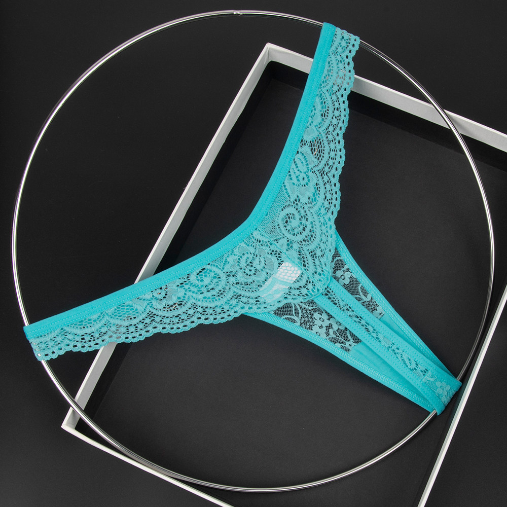 Olive Yellow Women's Low-Waist Underwear Lace See-Through Bow Decorated Thong
