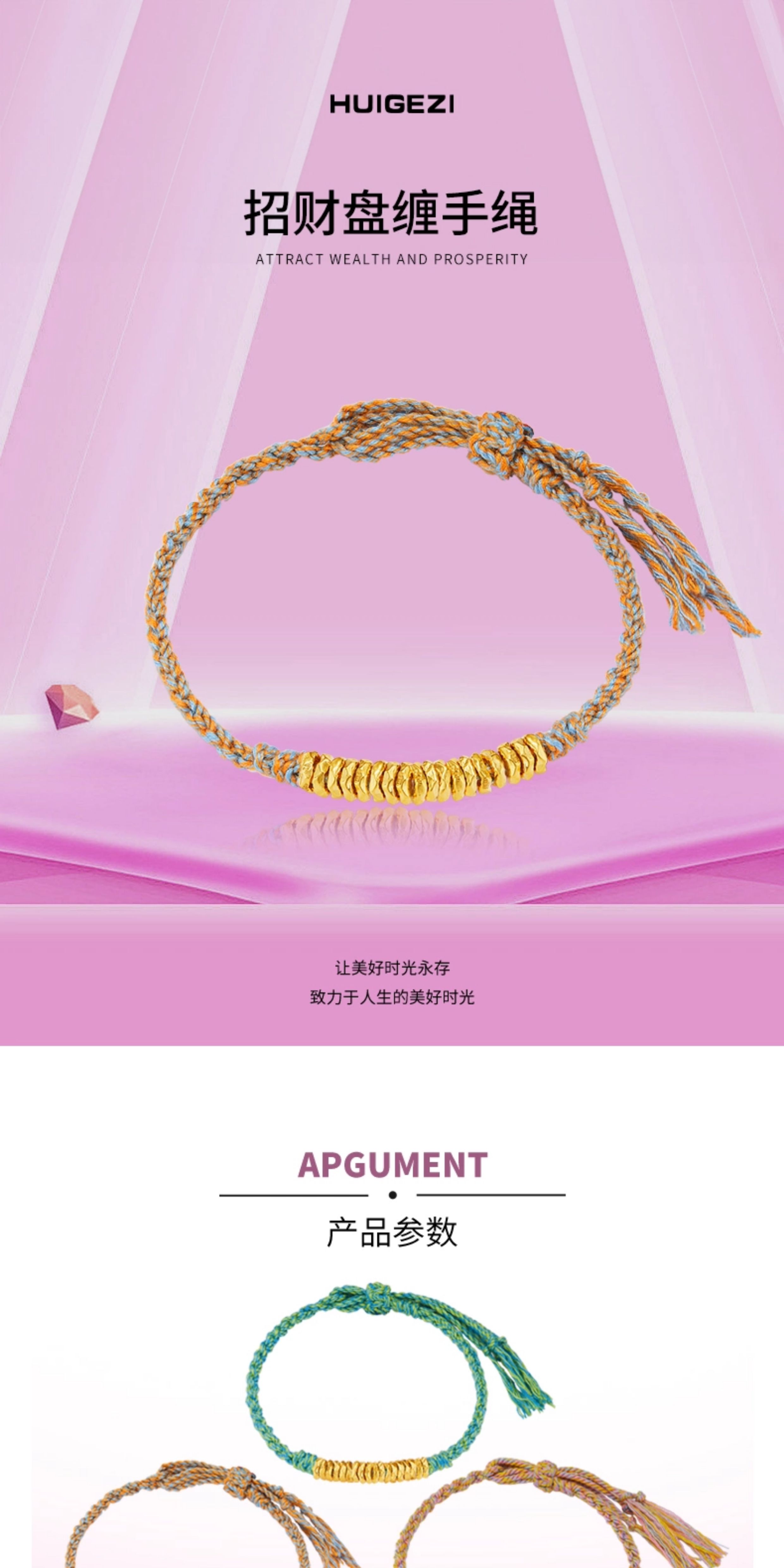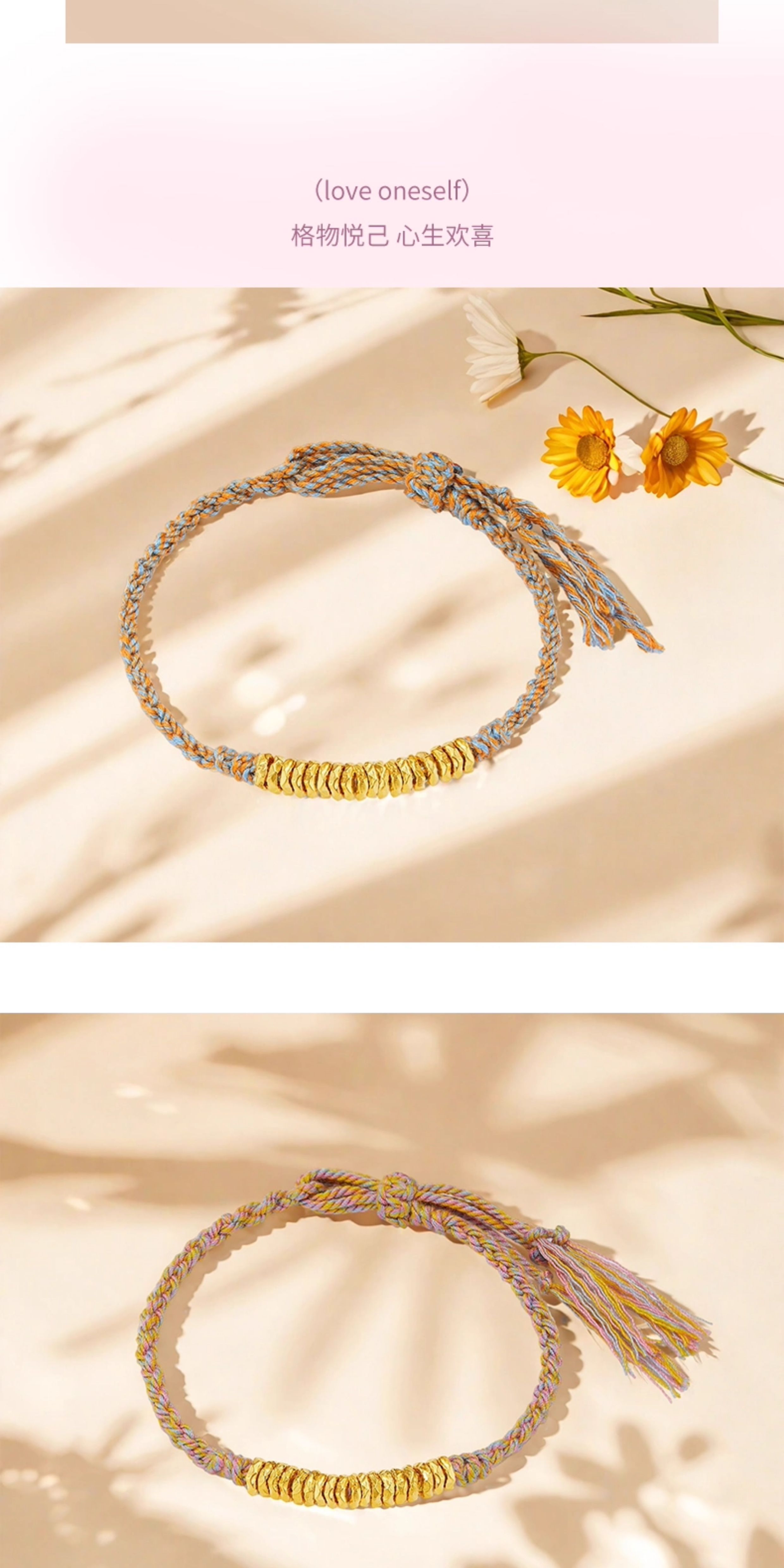 Huigezi Gold Coiled Bracelet, Hand-Woven Ethnic Style Pure Gold Bracelet, Good Luck and Wealth Gift