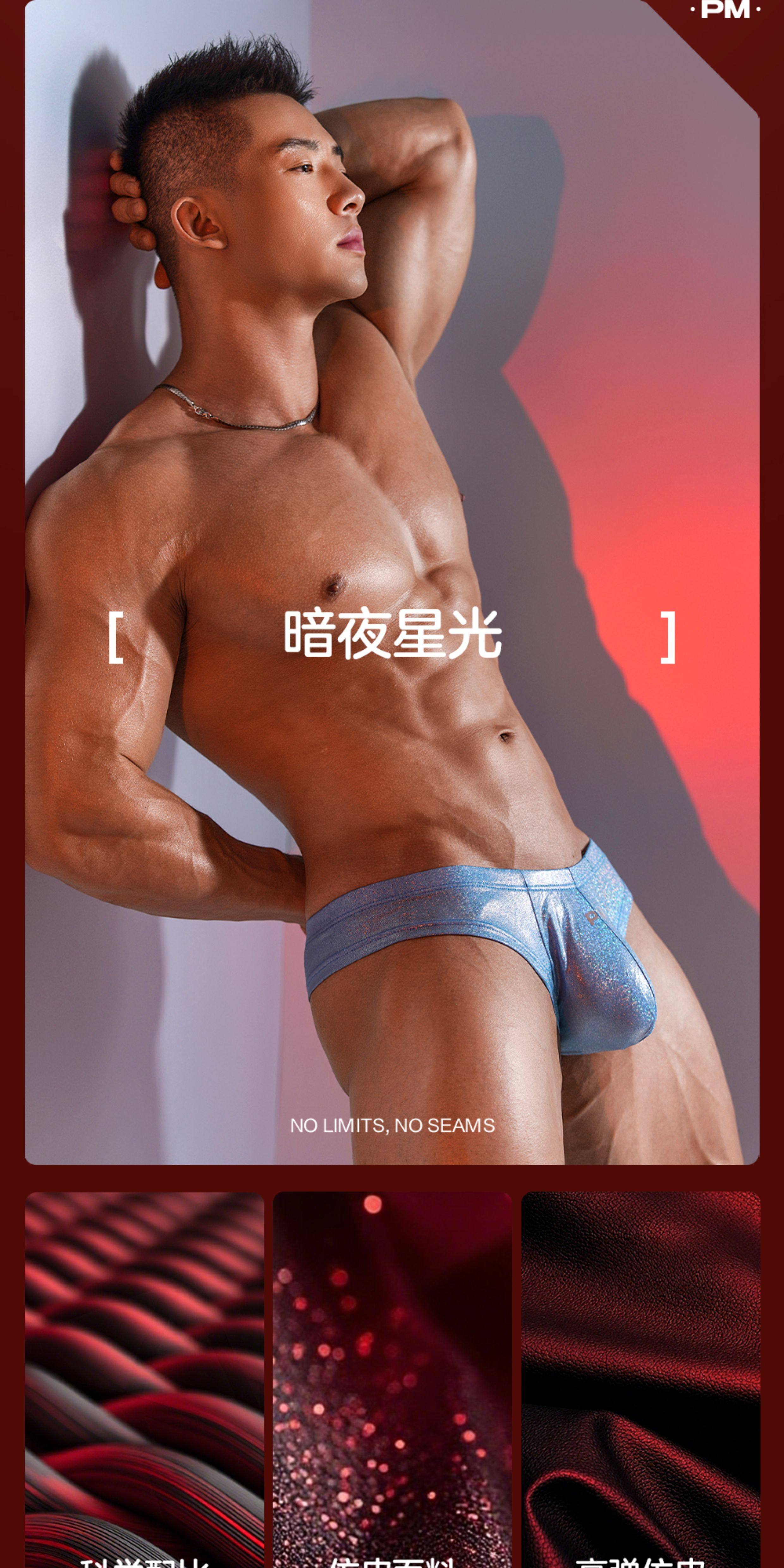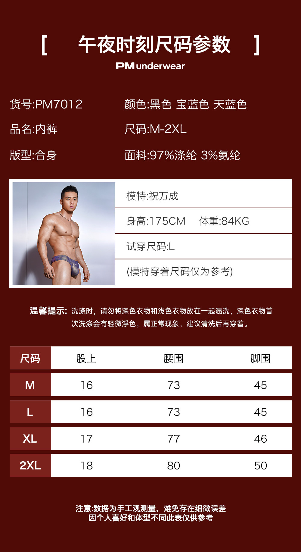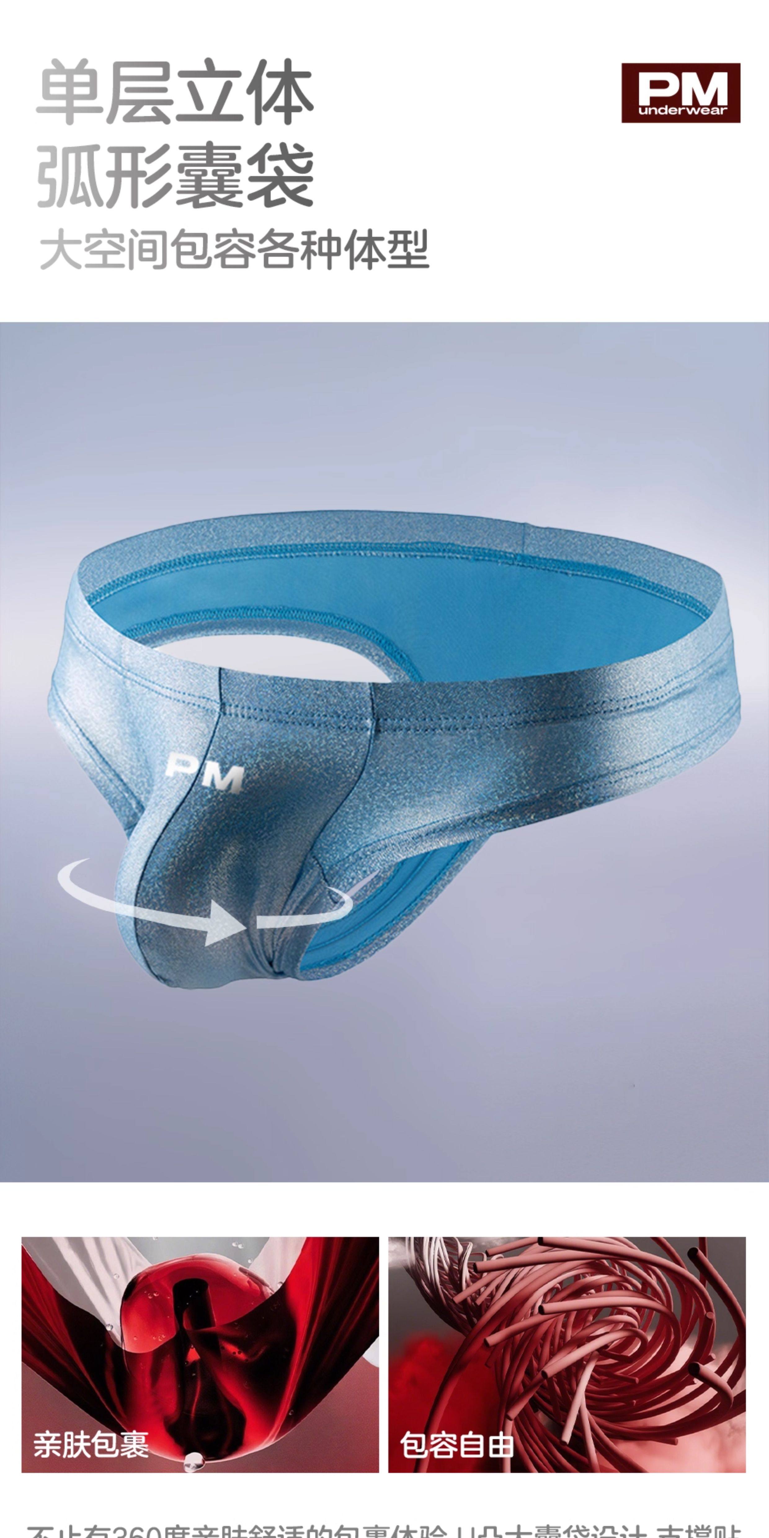 Pm Midnight Solid Color Glossy Bikini Men's Low Waist Sexy T-Pants U Convex Pouch Thong Triangle Underwear Trendy