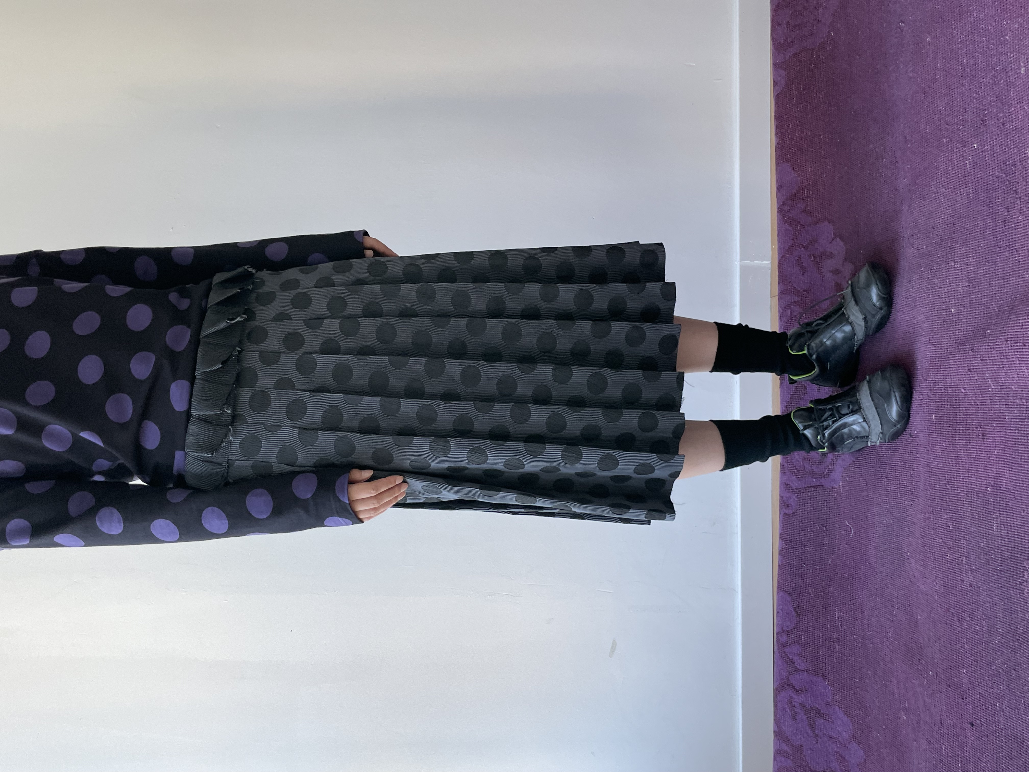 Naturay Original One-Piece Polka Dot Pleated Skirt, Half Skirt, Overlay Skirt for Women, Low-Waisted, Slimming, Retro, Layering, Two-Way Wear